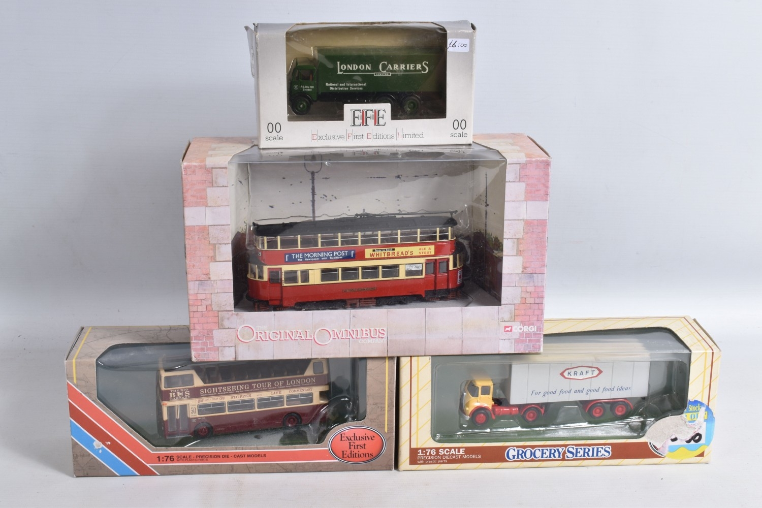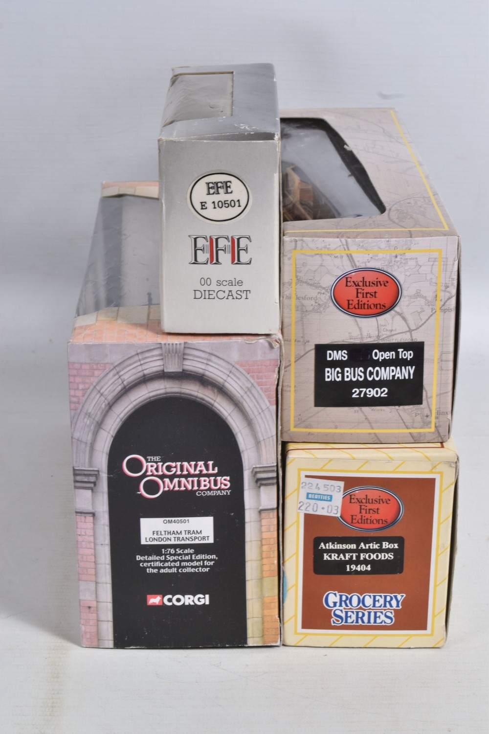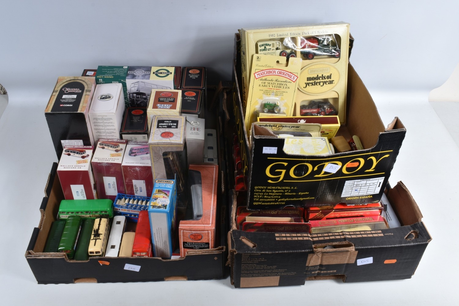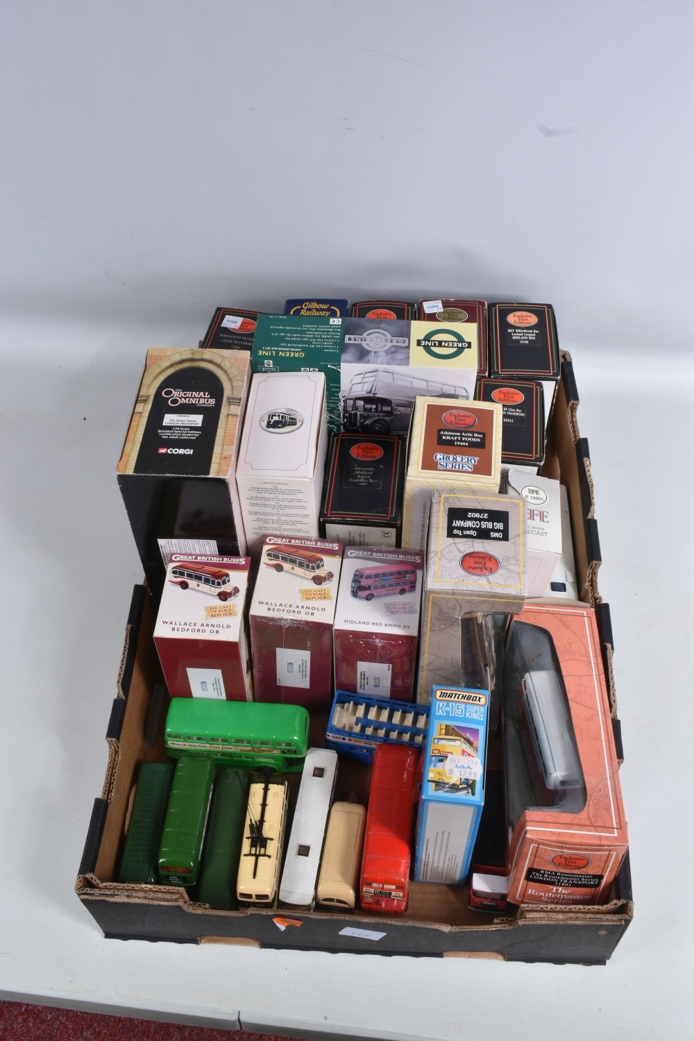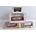 A QUANTITY OF BOXED AND LOOSE DIECAST TRAMS, BUSES, COACHES, AND TRANSPORT MODELS, included is a large number of Matchbox Models of Yesteryear boxed, loose and boxed sets with a Matchbox Berlin Bus no. K-15, there are EFE boxed models and sets such as a DMS Open Top Big Bus Company no. 27902, a RMA Routemaster Series 'London Transport' no. 31801, a Limited Edition Bus Set of 5 'London Transport Museum' Greenline to name a few of the boxed models along with a few loose models, an Atlas Editions 1931 Feltham Tram no. 4648102 along with three Great British Buses no. 4655126 and two no. 4655103 and similar along with a few loose models, a Corgi Original Omnibus Feltham Tram 'London Transport' no. OM40501 and similar along with loose models, the boxed models appear in good condition, the outer packaging showing slight wear on corners and edges, the loose models range from good to playworn, some showing paint loss on edges, contents unchecked for completeness (3 boxes)