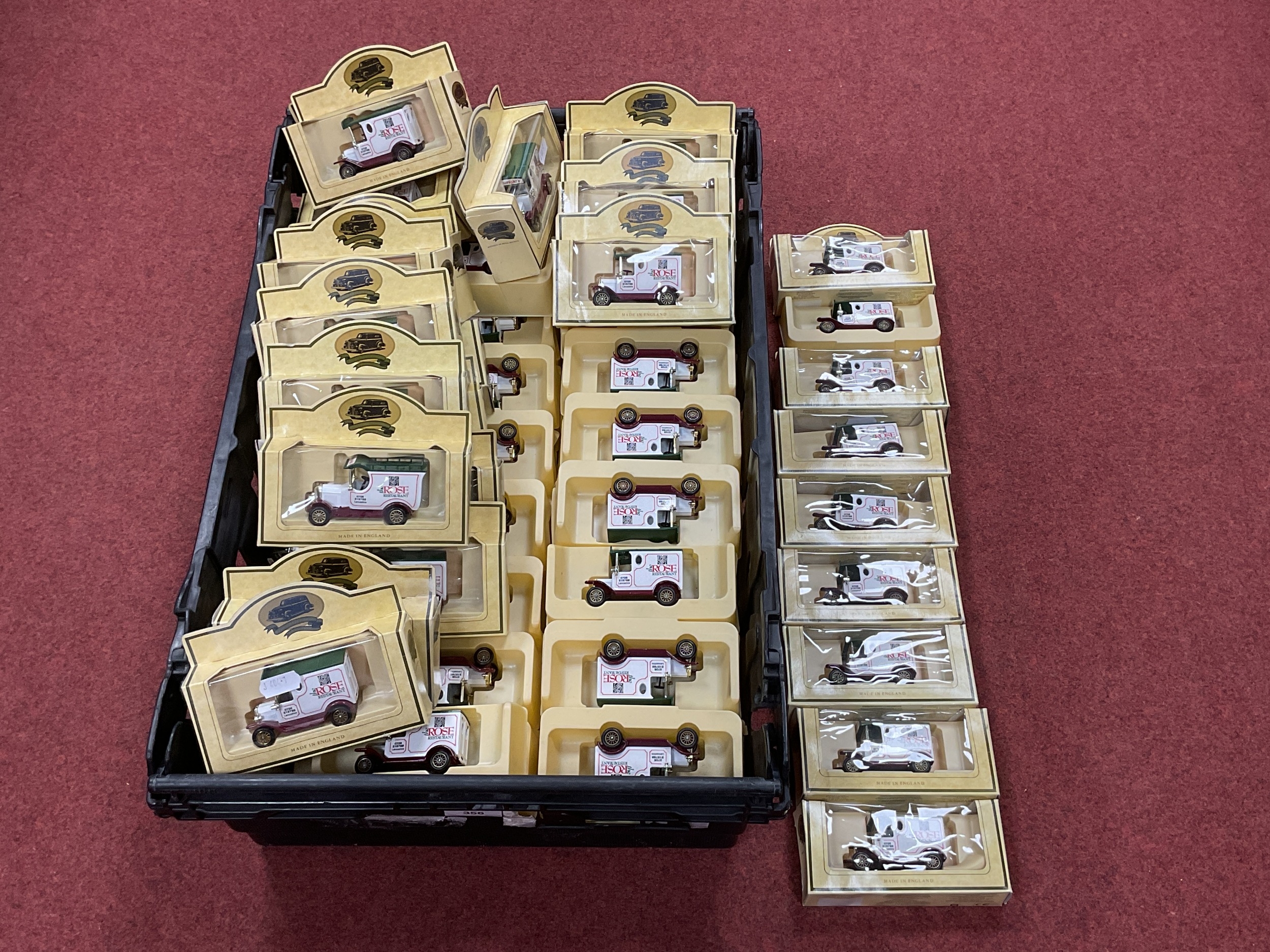 Approximately Eighty Diecast Model Vehicles, by Lledo. All promotional models with Arkwright's The Rose Restaurant livery. Mostly missing boxes and presented within original plastic tray.