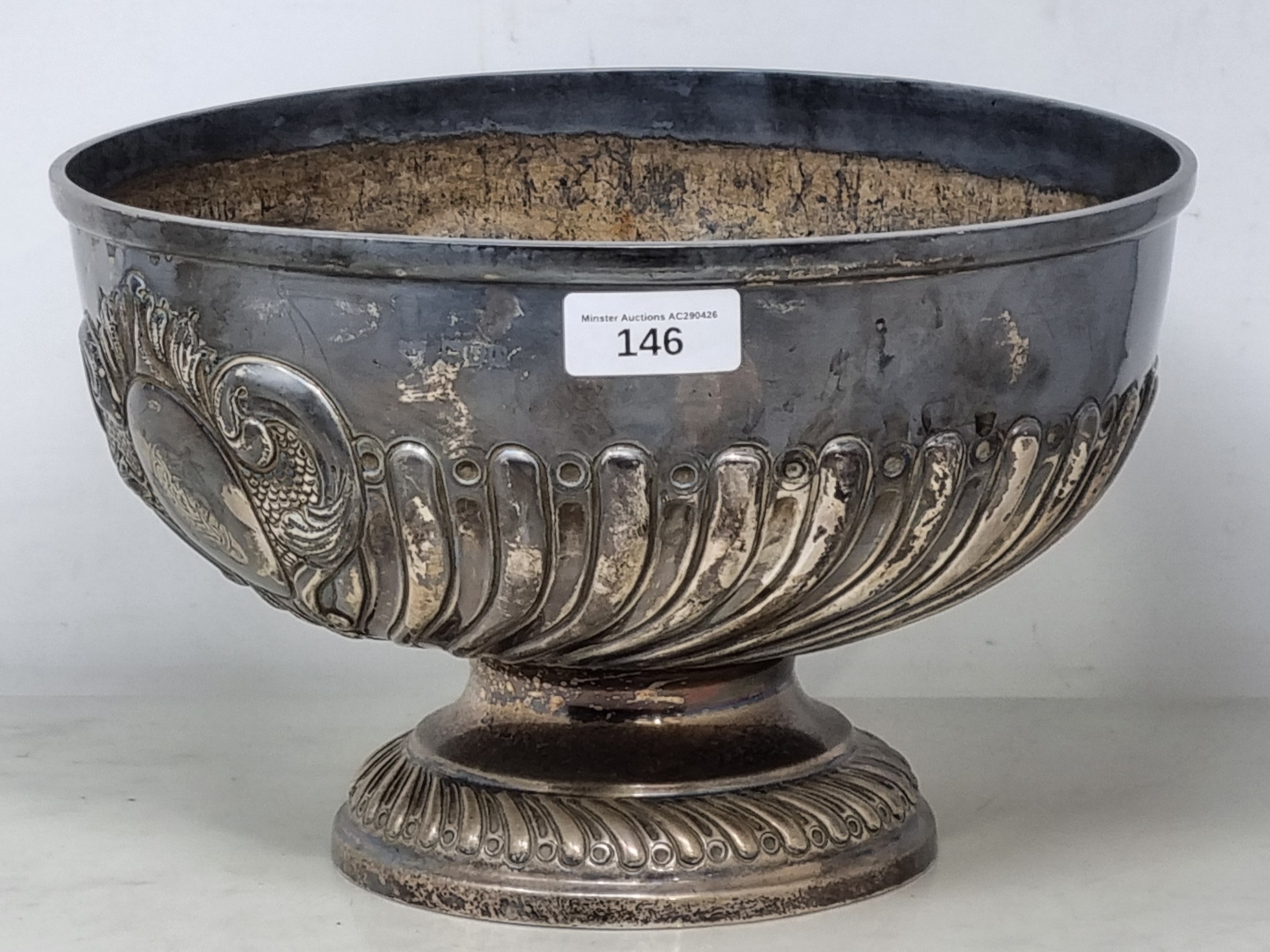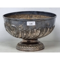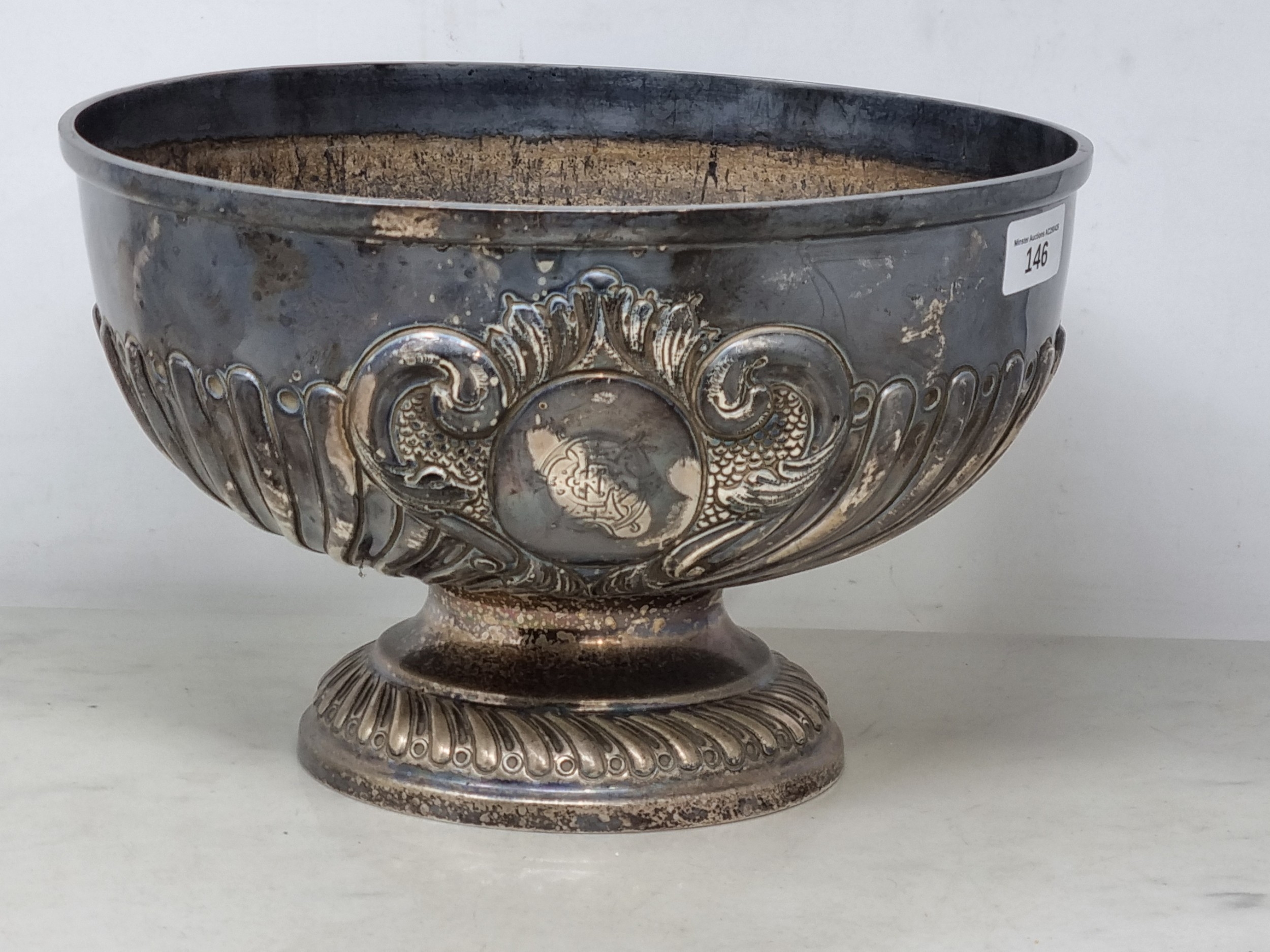 A Victorian silver Rose Bowl with gadroon embossing, engraved initials within a rococo cartouche, London 1900, 9 1/2in diam, maker: Goldsmiths & Silversmiths Co, Ltd, 915gms