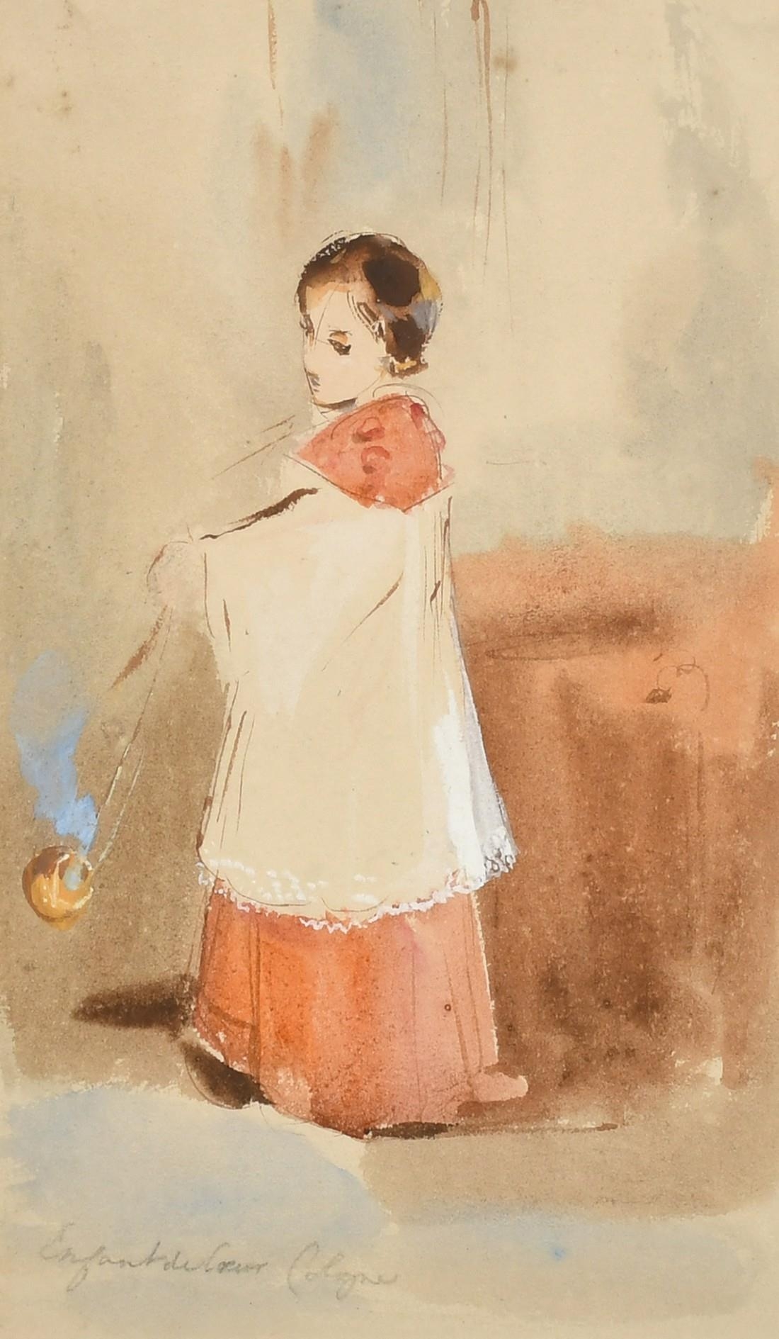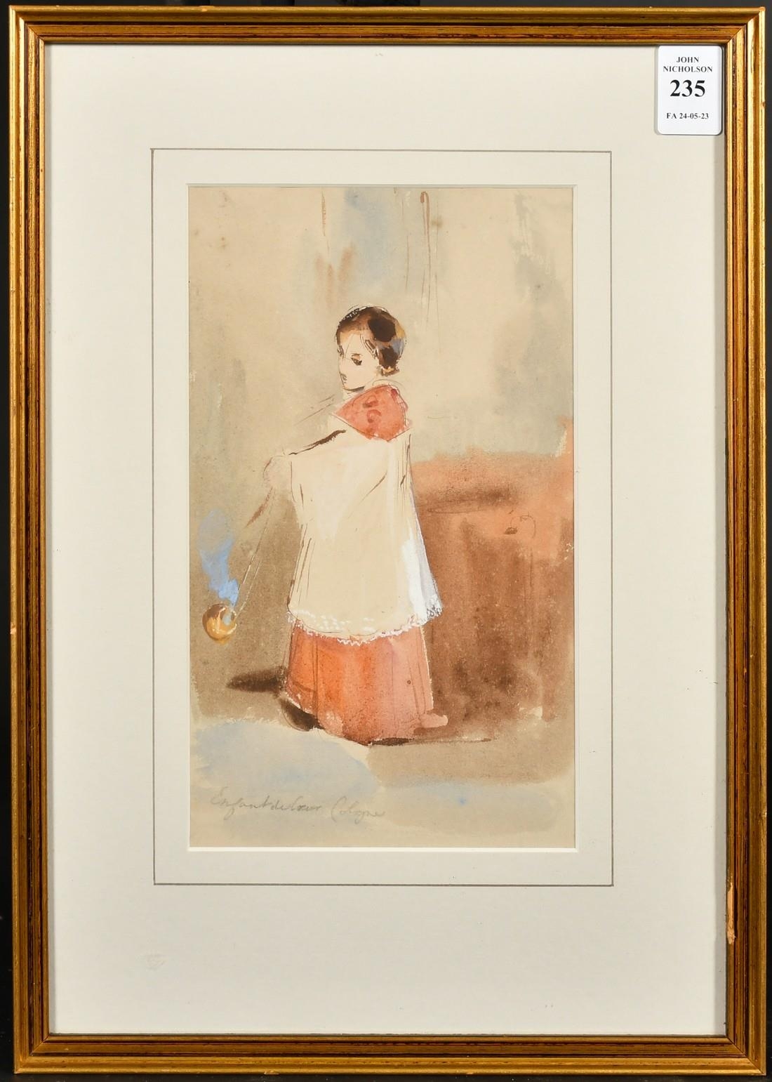 Circle of R.P. Bonnington, 'Enfant de coeur Cologne', watercolour, inscribed in pencil, 9" x 5", (23x13cm).