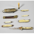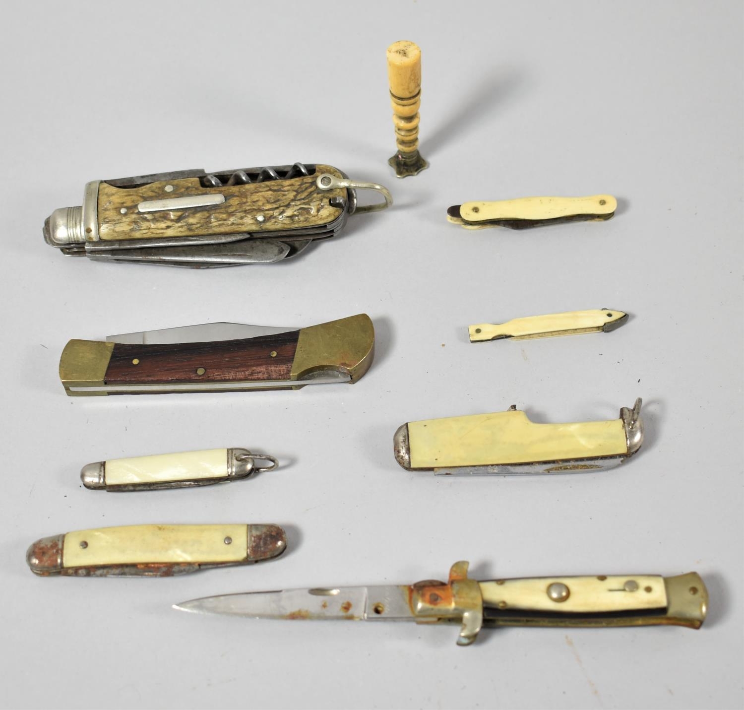 A Collection of Eight Vintage Fruit and Pocket Knives Together with a Small Seal