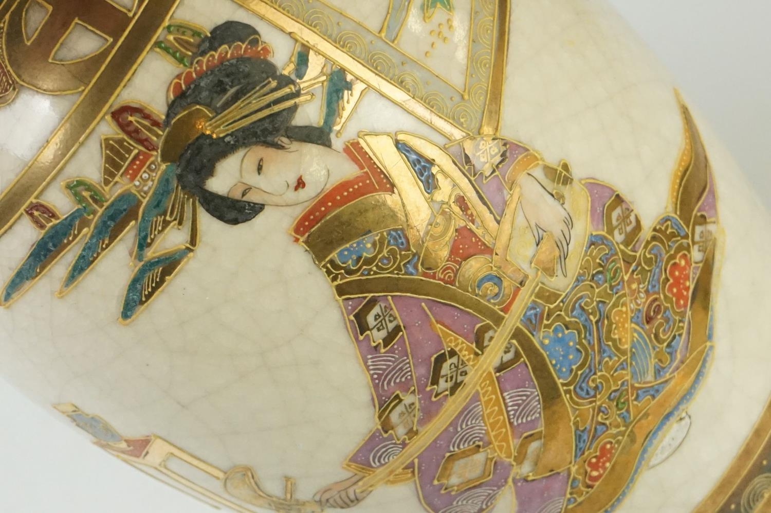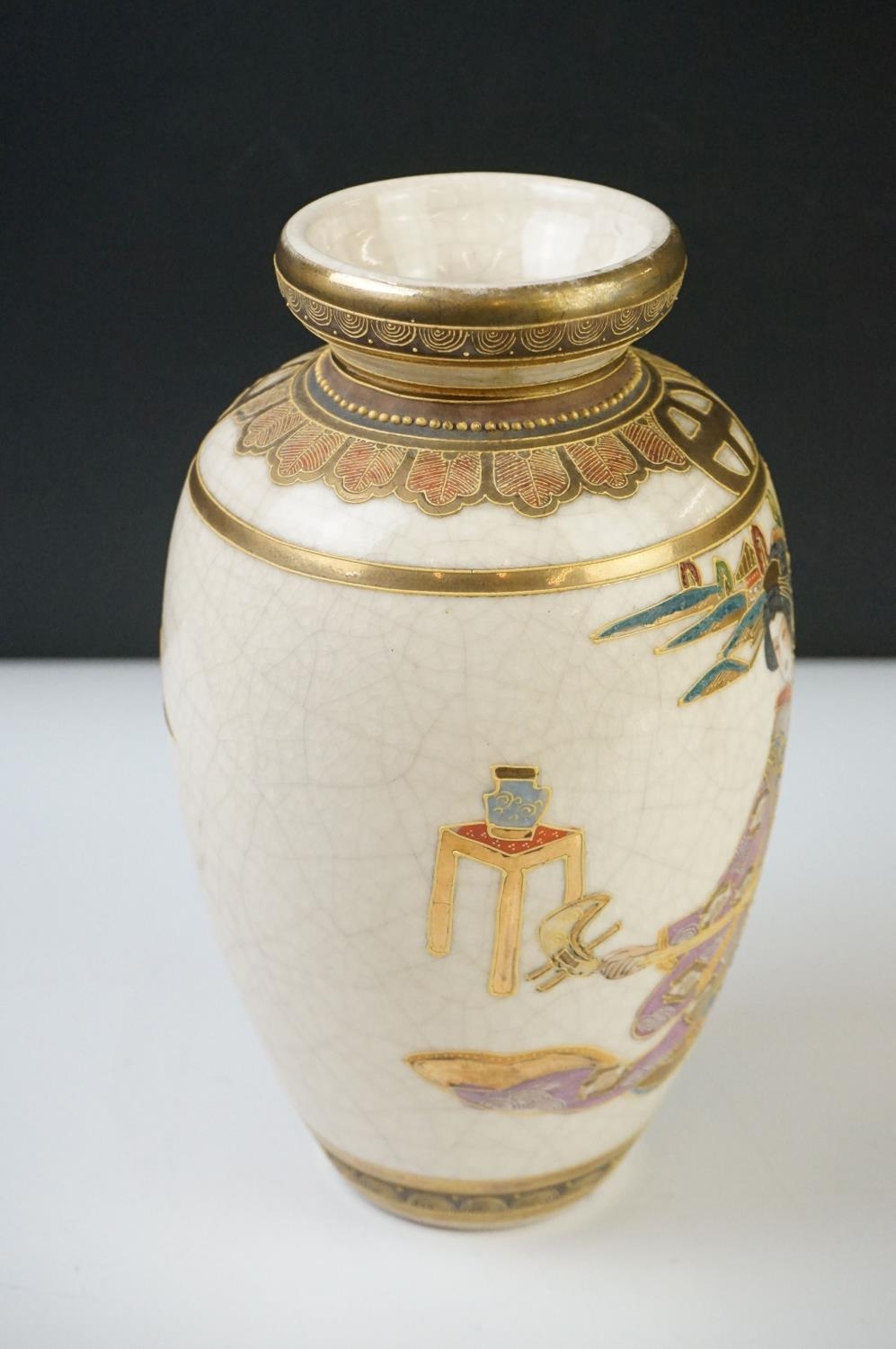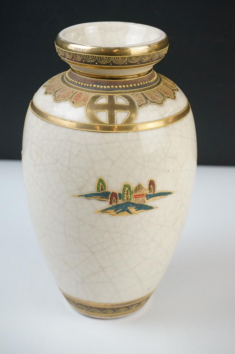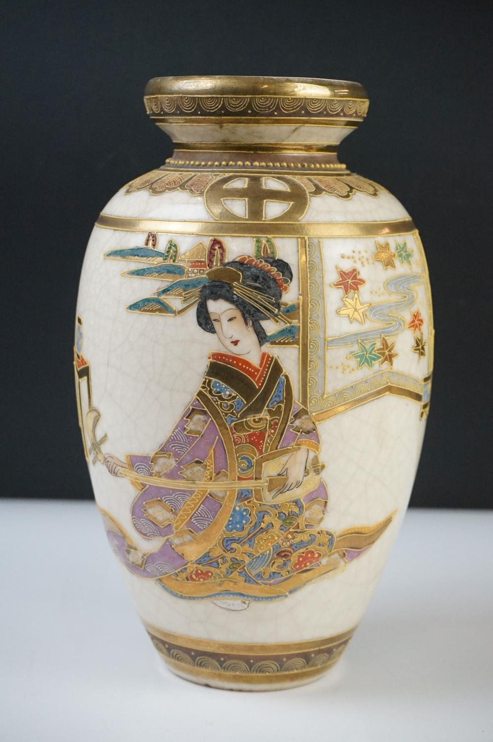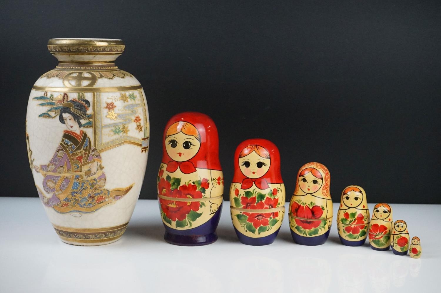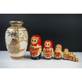 Japanese Satsuma style Vase, 23cm high together with a Stack of Wooden Russian style Dolls