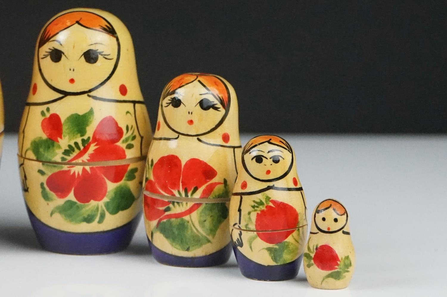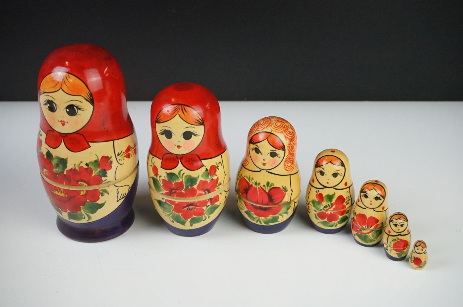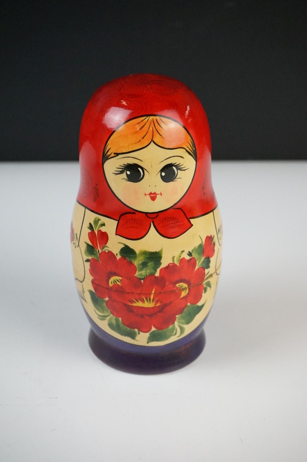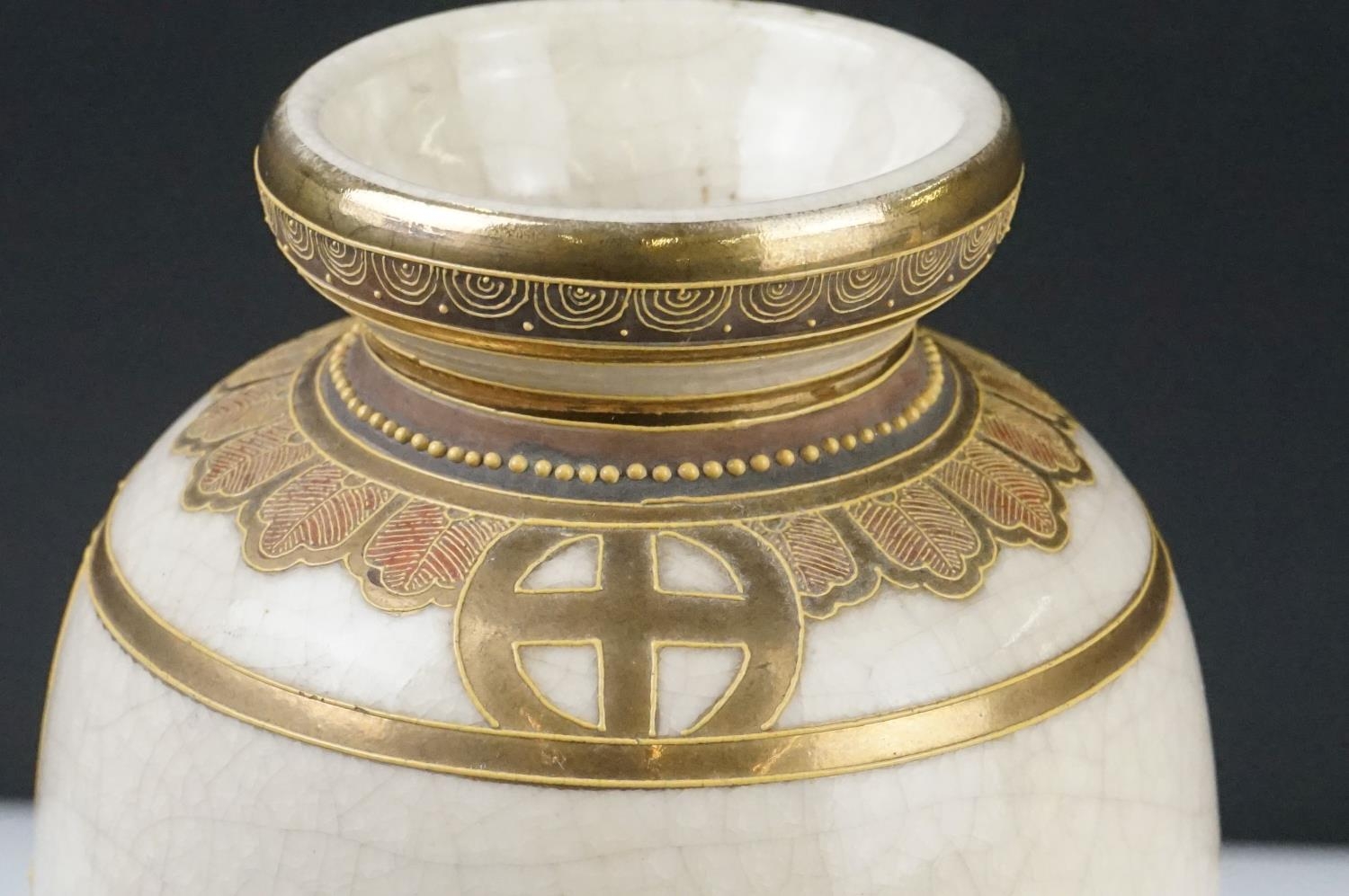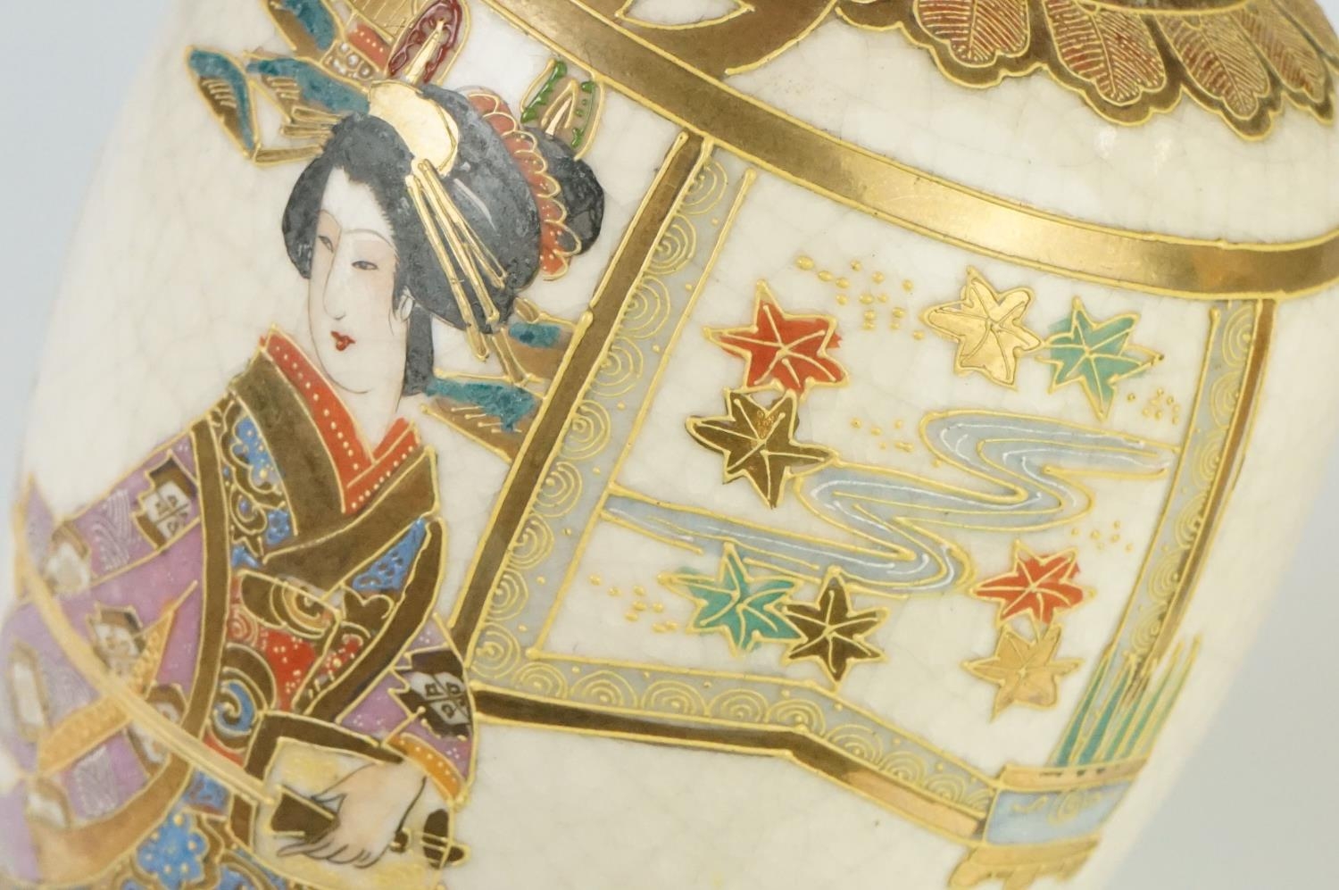 Japanese Satsuma style Vase, 23cm high together with a Stack of Wooden Russian style Dolls