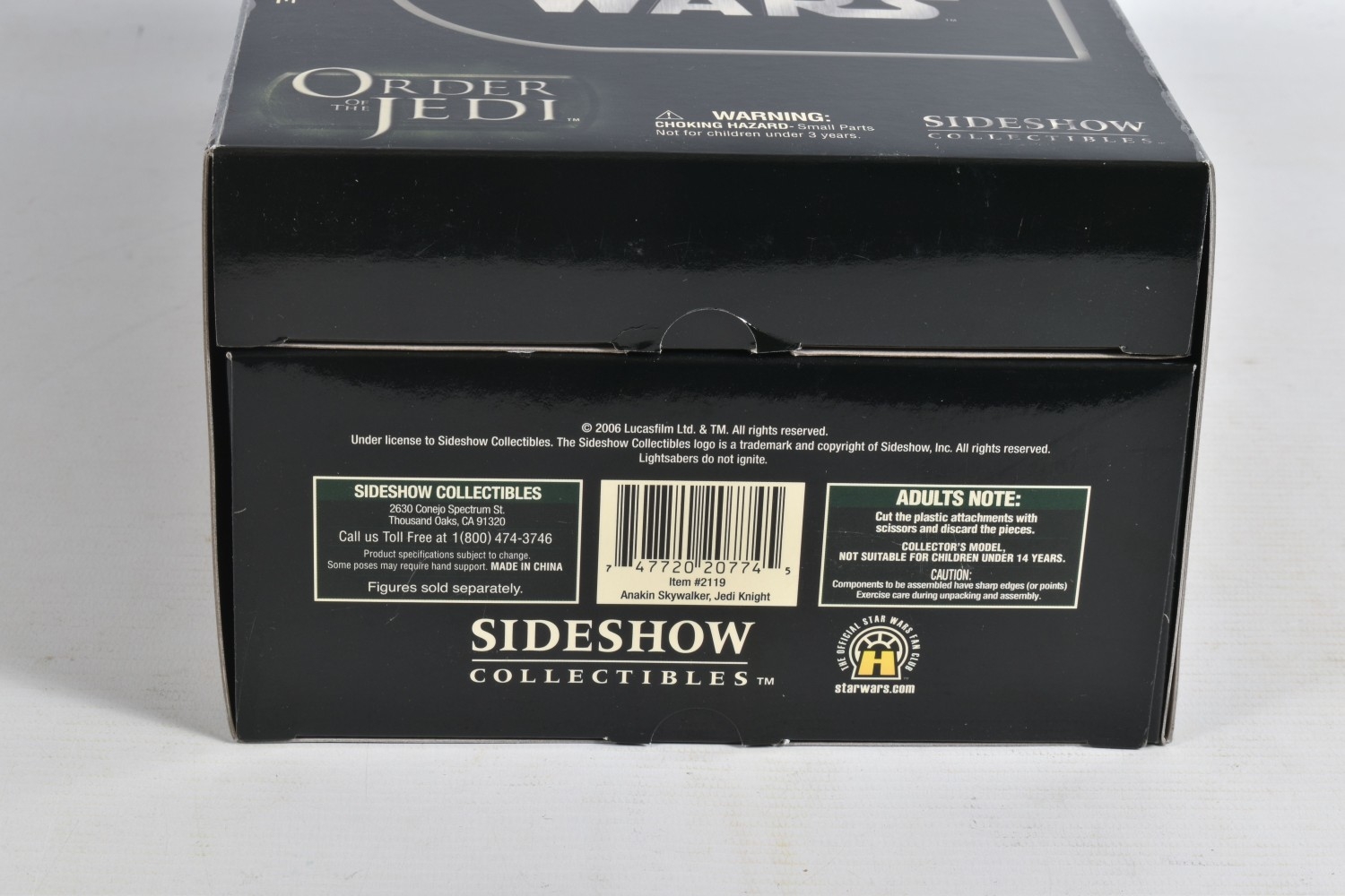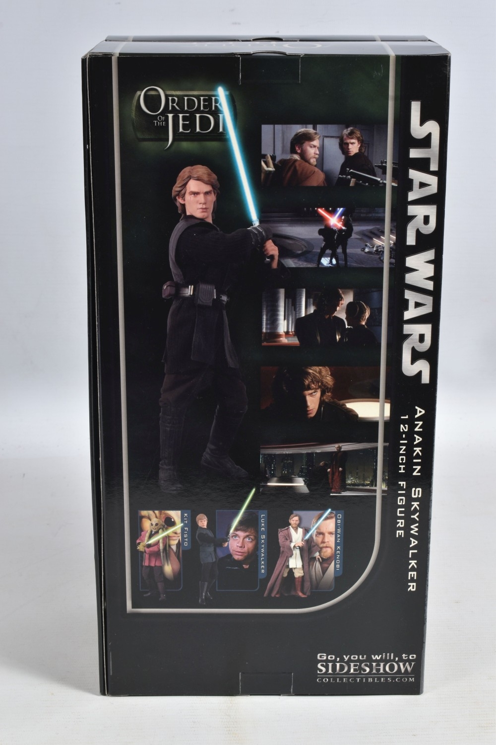 A BOXED SIDESHOW COLLECTIBLES 12 INCH STAR WARS ORDER OF THE JEDI ANAKIN SKYWALKER FIGURE, no. 2119, model appears new with figure and accessories presented in cardboard packaging, very little wear other than some of the top corners