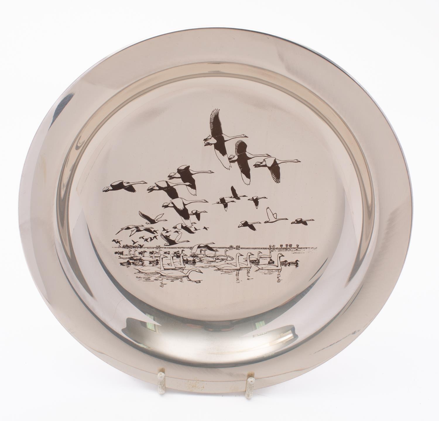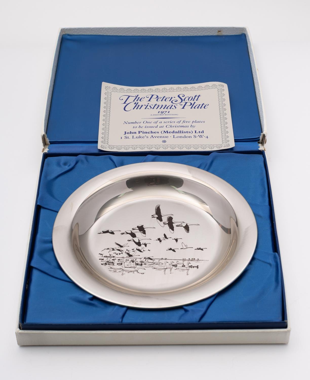 An Elizabeth II silver Peter Scott Christmas Plate by John Pinches (Medallist) Ltd, London, 1971, 20.2cm., (7.9ins.) diameter, 189.gms. (6ozs.), boxed with certificate and outer box