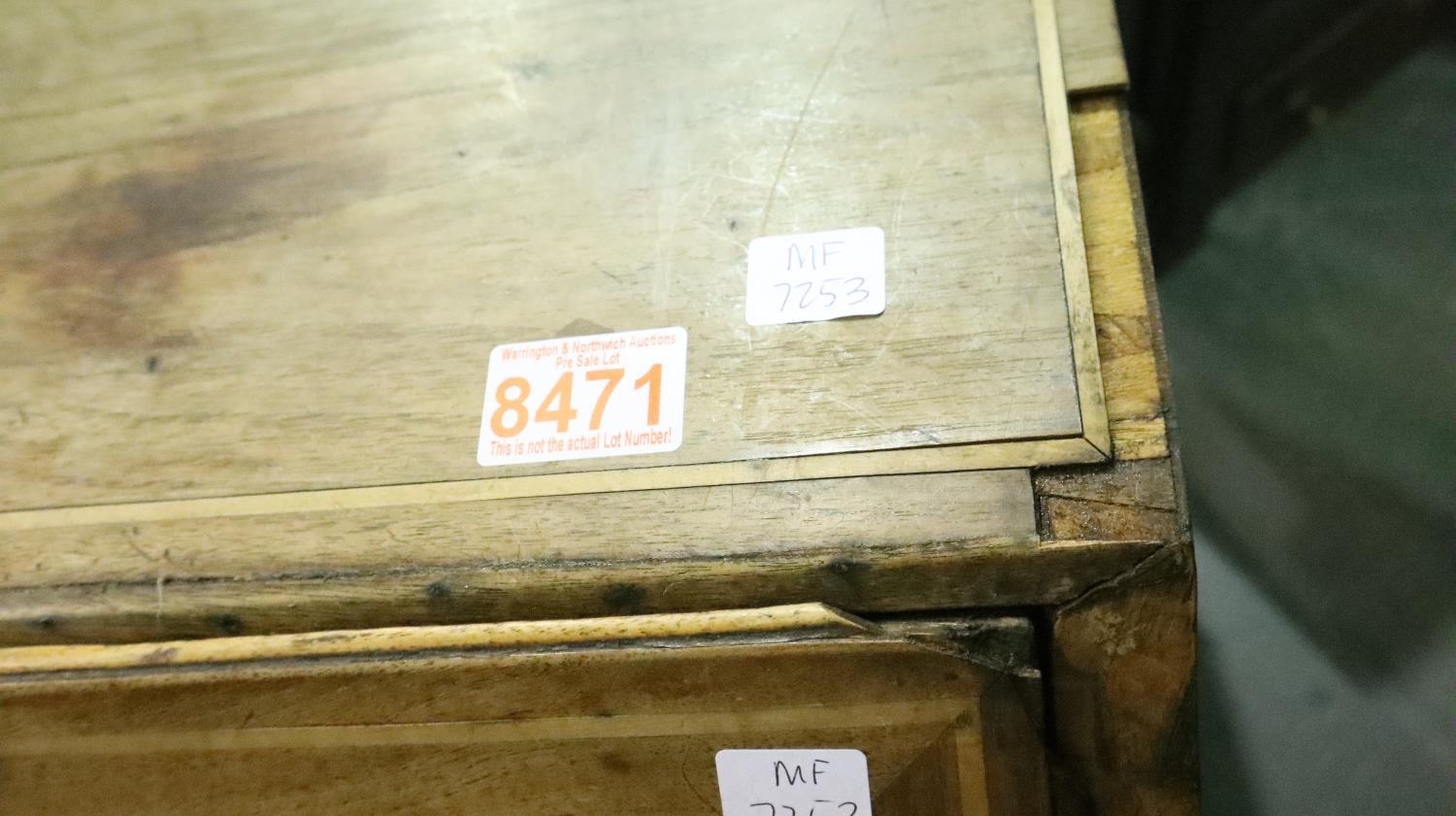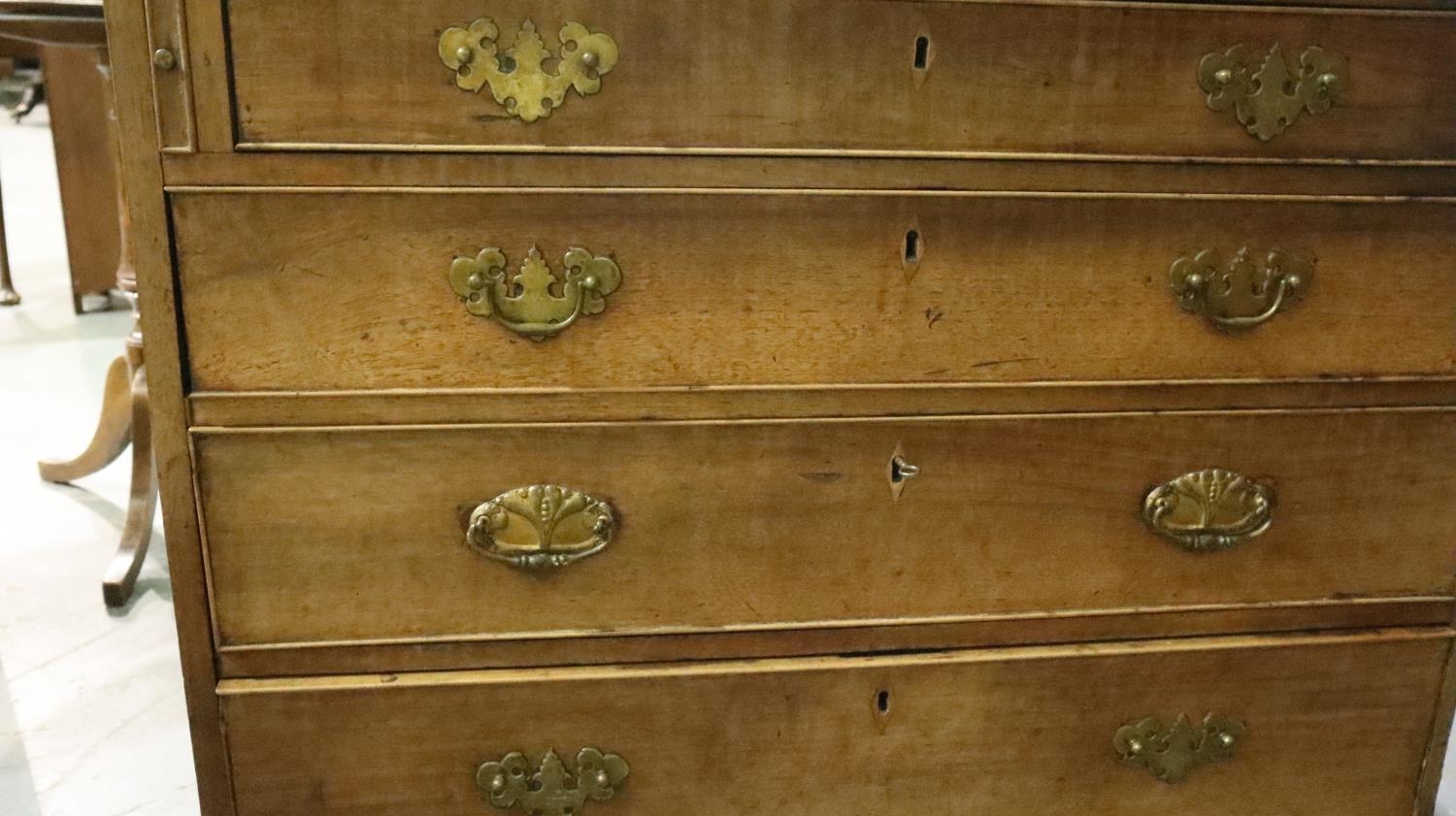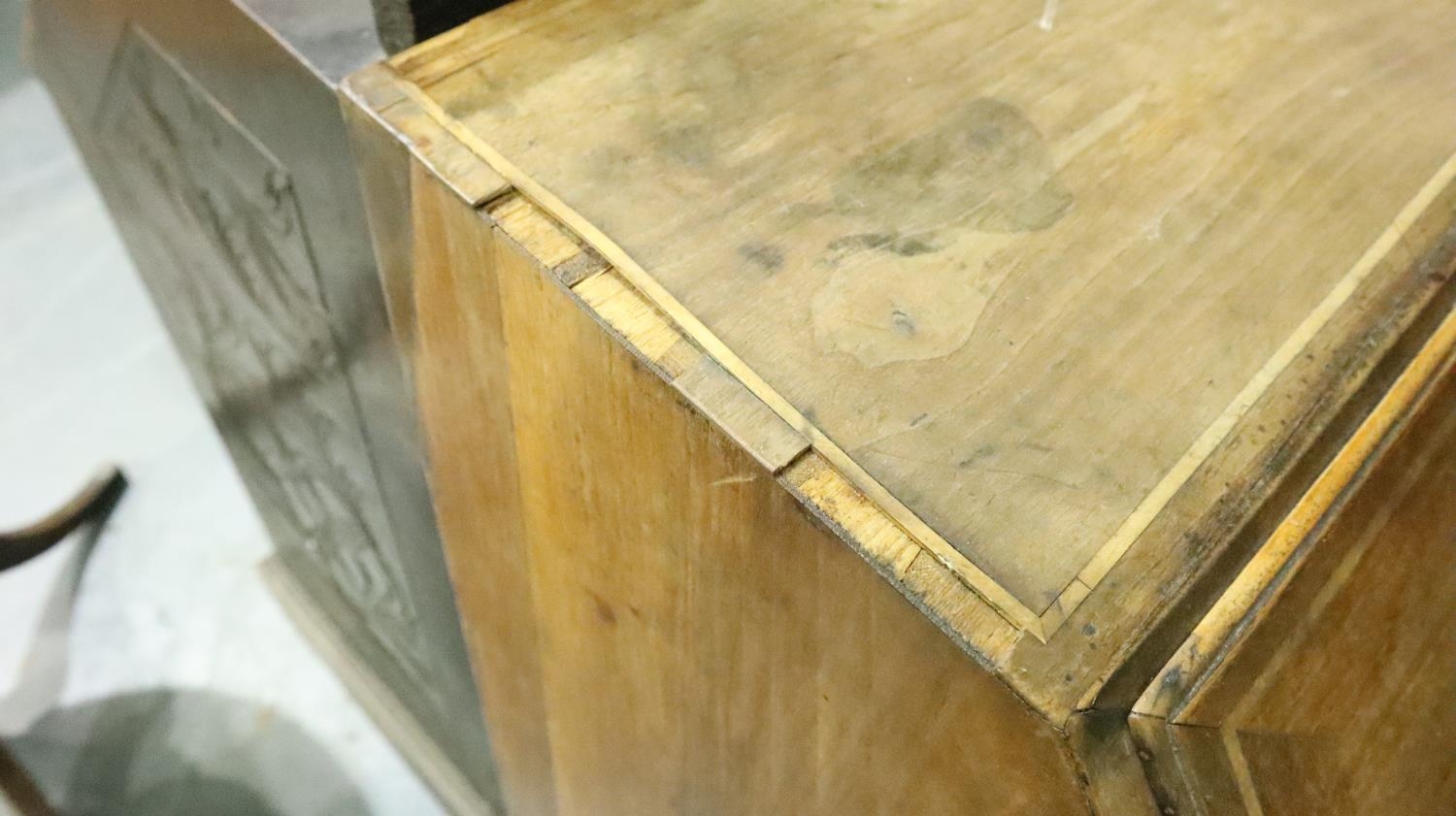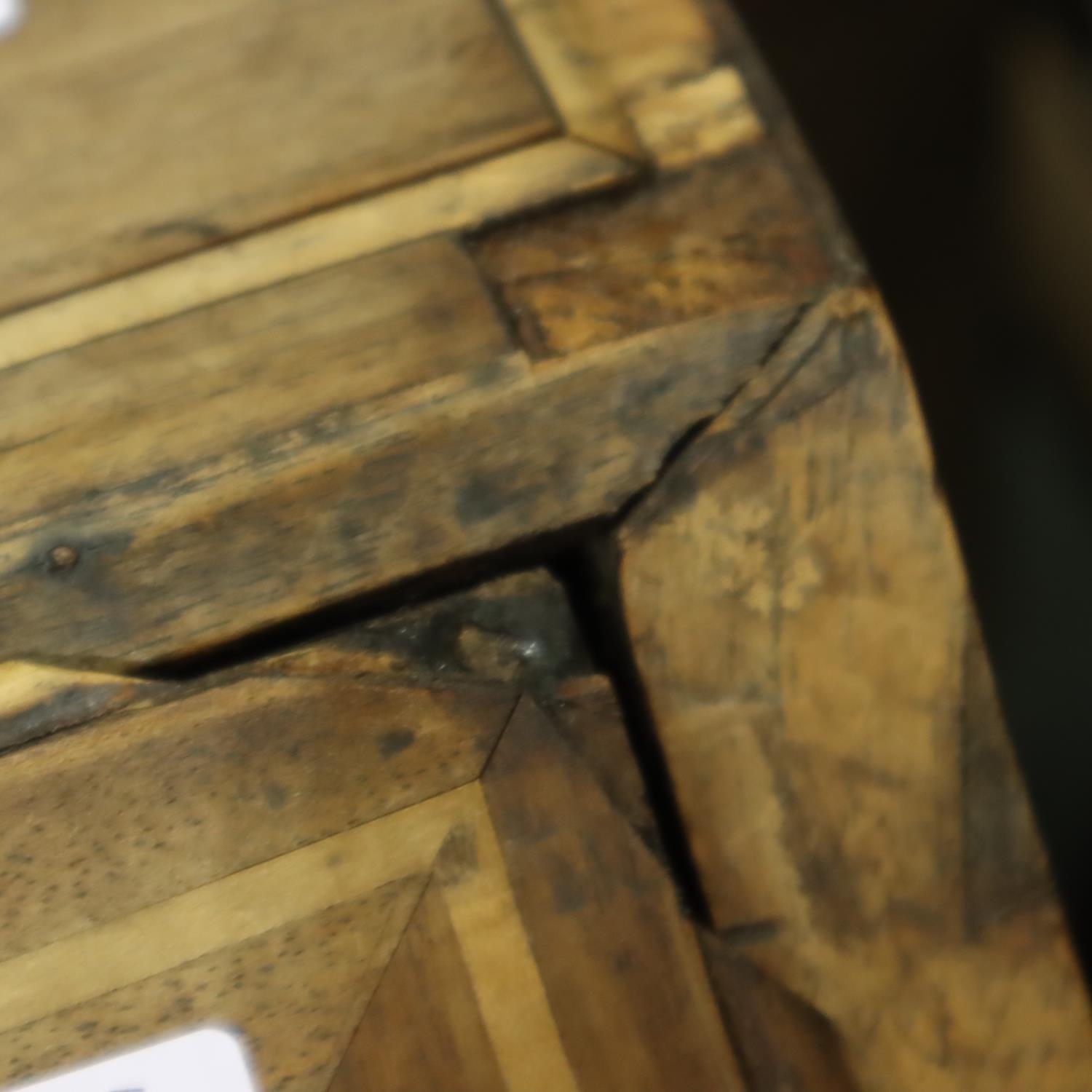 George III inlaid mahogany bureau, for restoration, 95 x 92 x 50 cm H. Not available for in-house P&P, contact Paul O'Hea at Mailboxes on 01925 659133