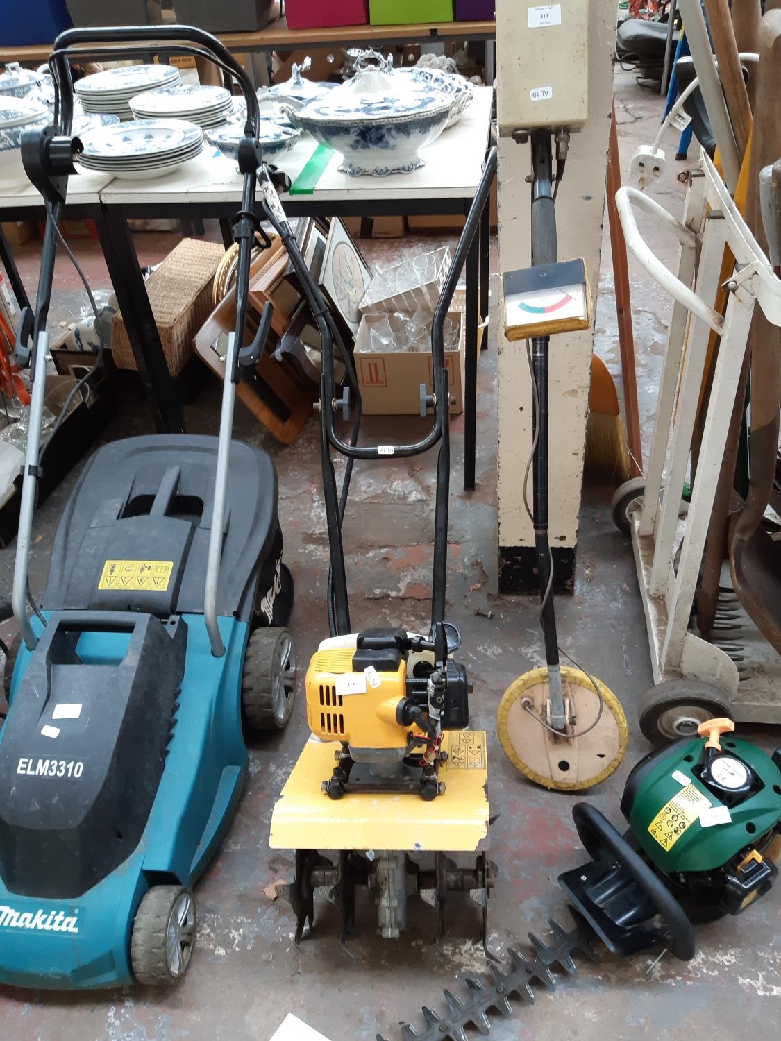 A BLACK AND YELLOW PETROL ROTAVATOR