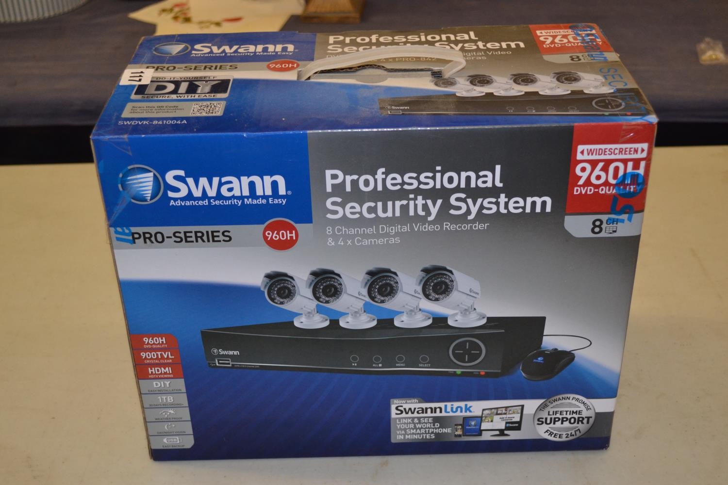 SWANN PROFESSIONAL SECURITY SYSTEM 8 CHANNEL DIGITAL VIDEO RECORDER AND 4 CAMERAS (NEW)