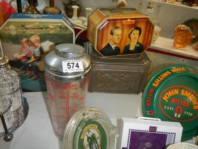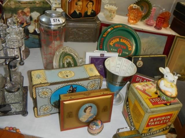 A mixed lot of vintage tins etc.,