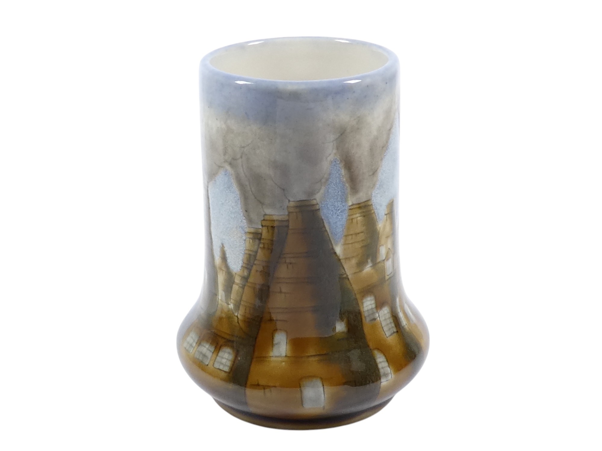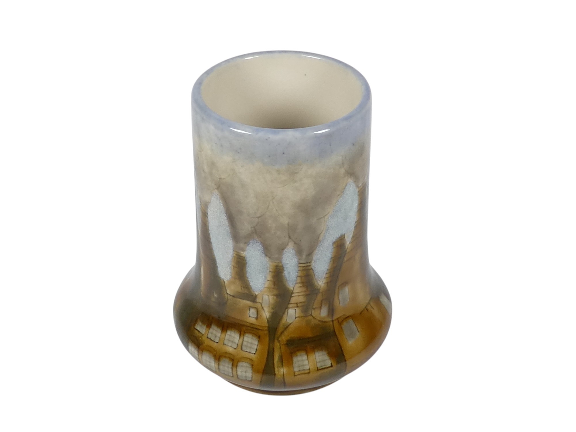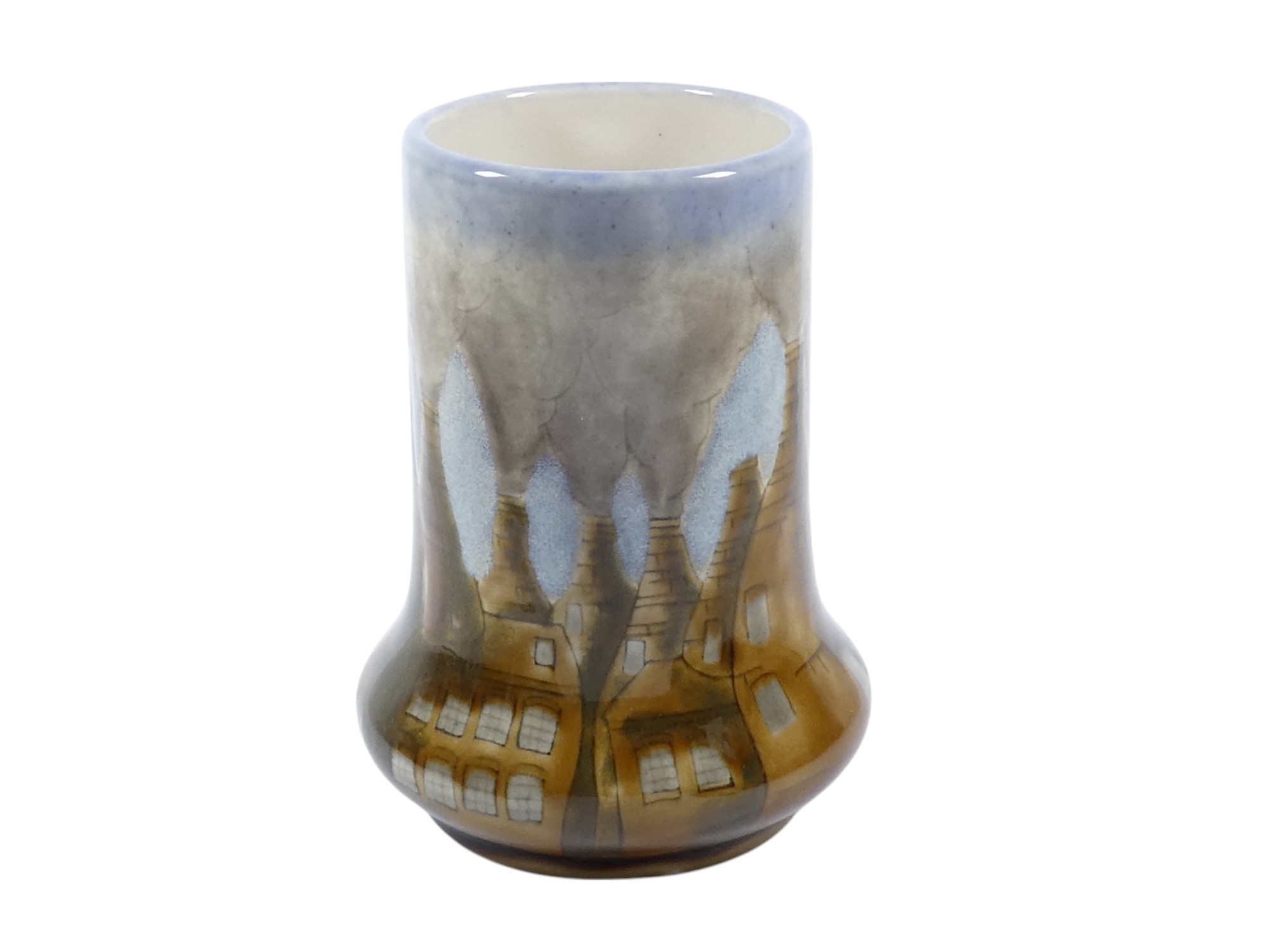 A Cobridge Pottery (Moorcroft) vase - decorated with a scene of bottle kilns, dated 1999, 17cm high.