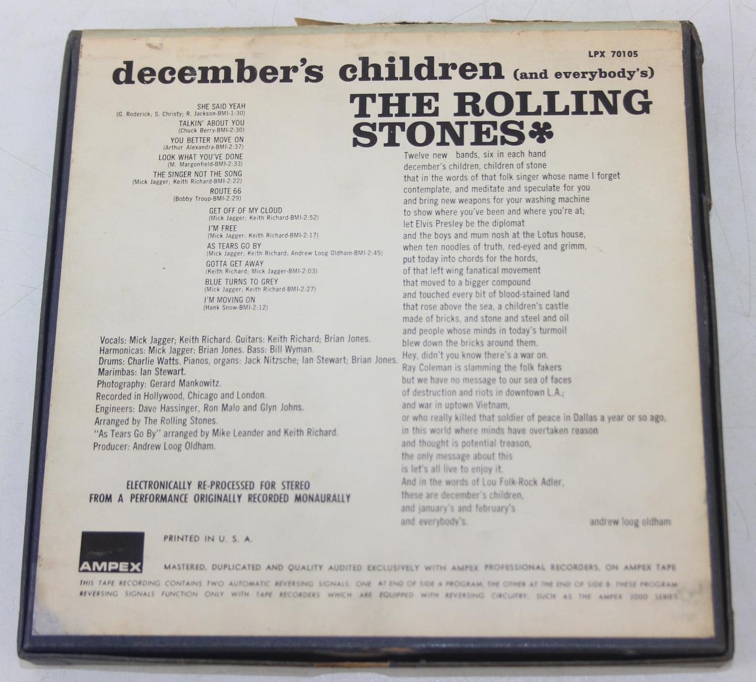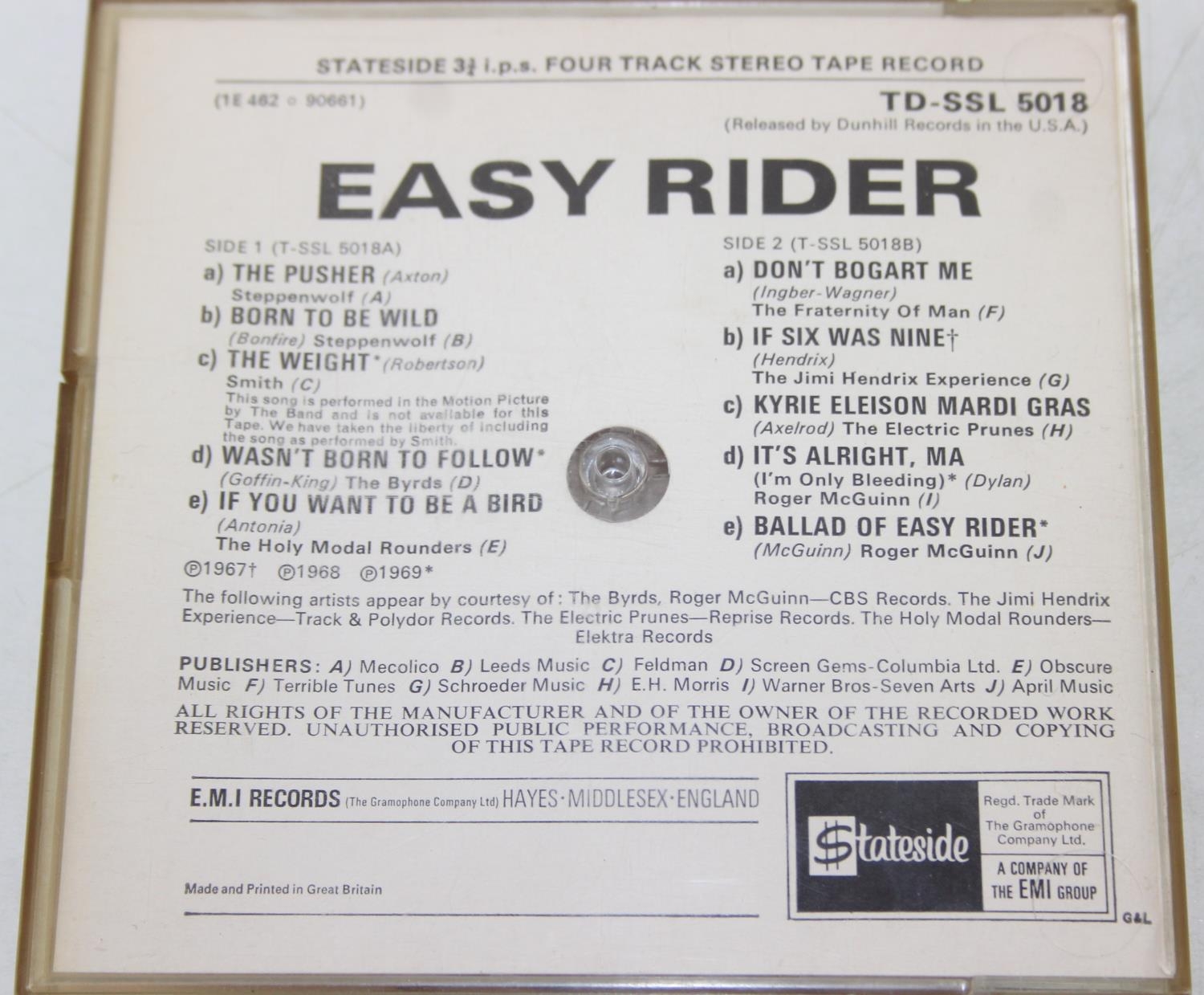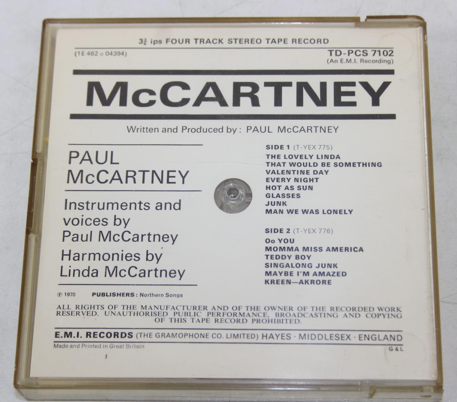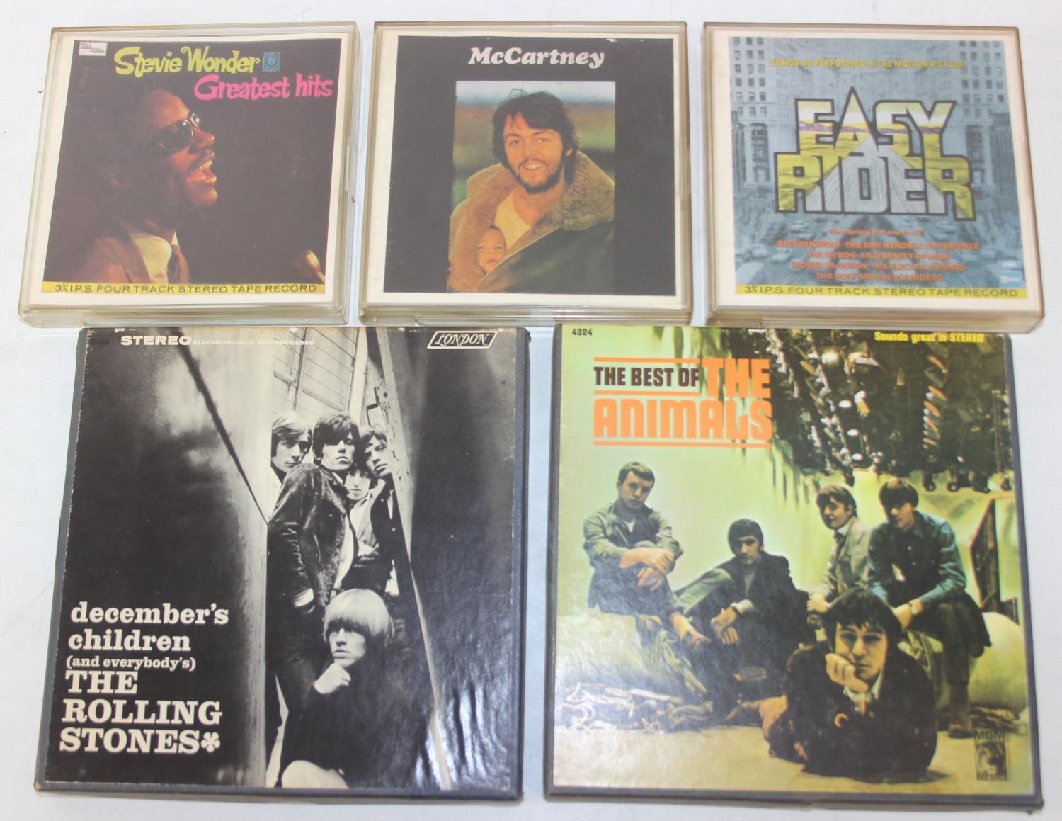 Qty of interesting Four-Track and other tapes to inc McCartney TD-PCS-7102, Easy Rider TD-SSL 5018 & Stevie Wonder TD-STML 11075, and two other stereo tapes, to inc The Animals STX 4324 & The Rolling Stones LPX 70105 [5]