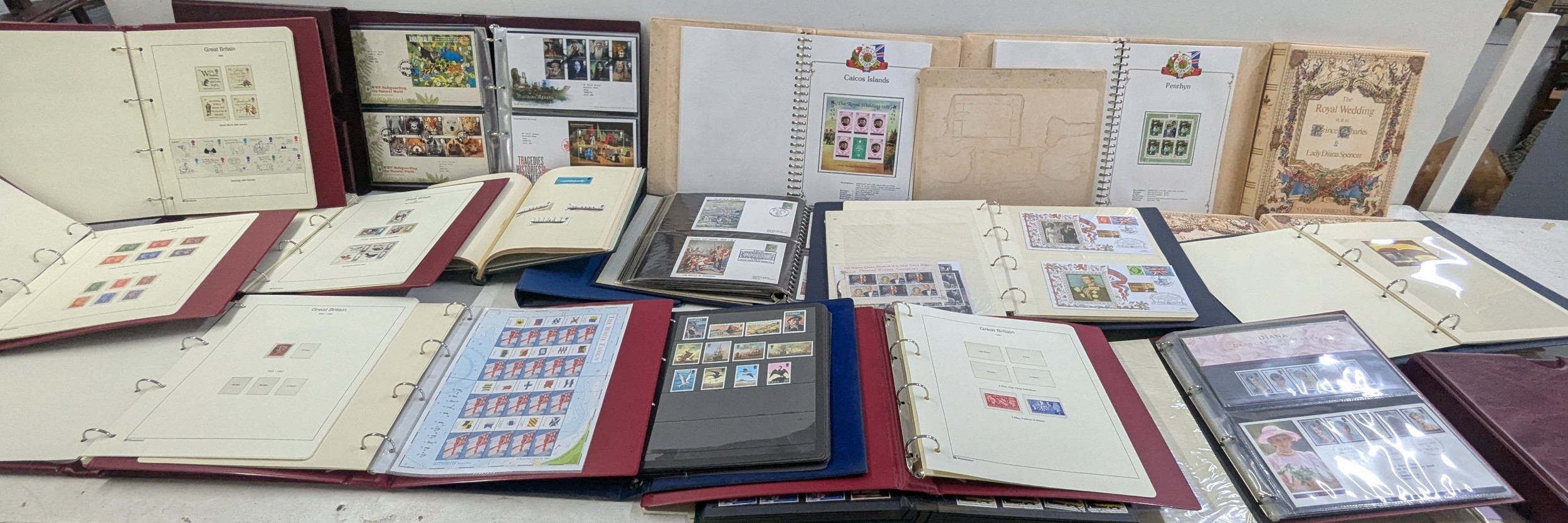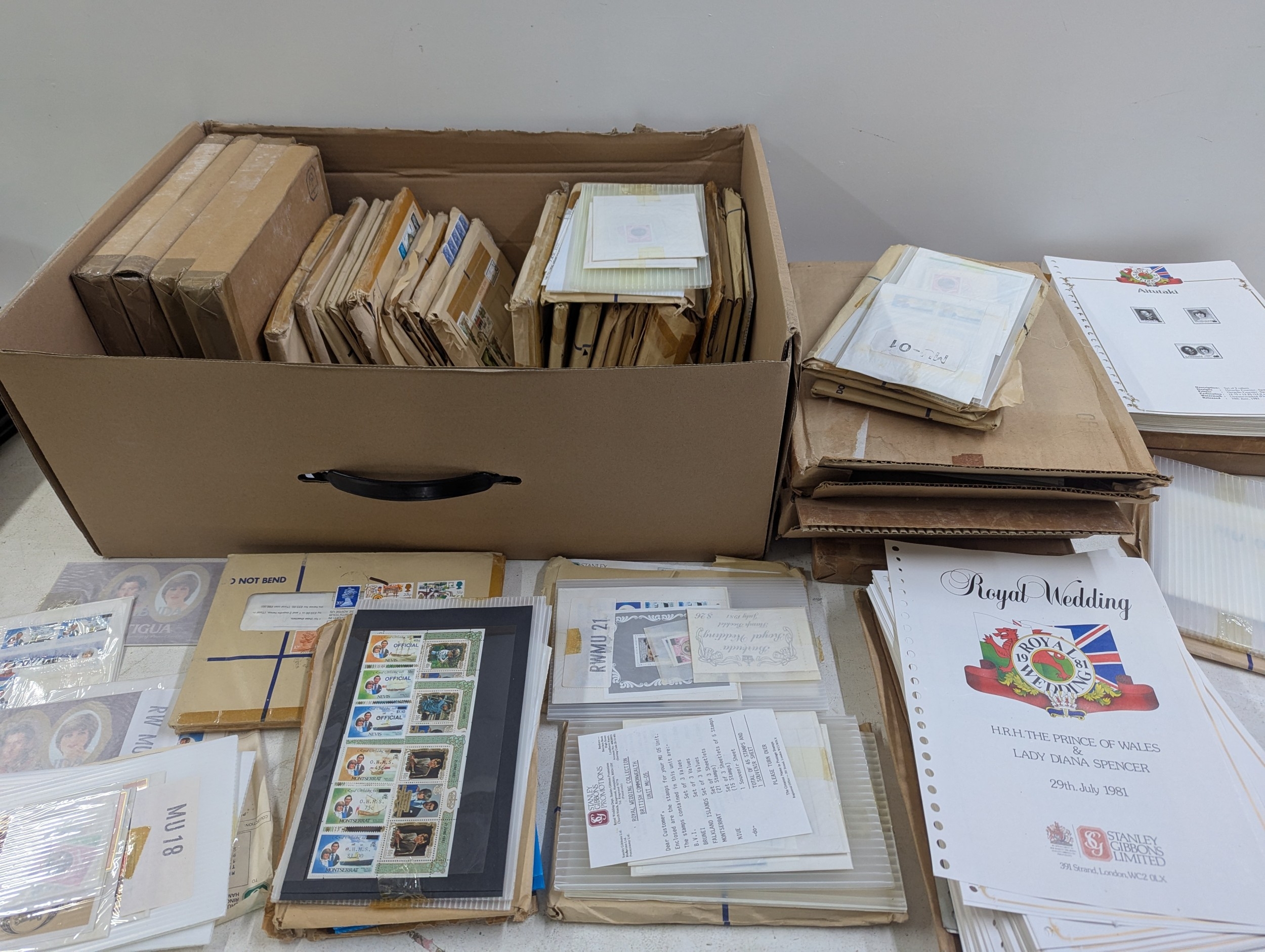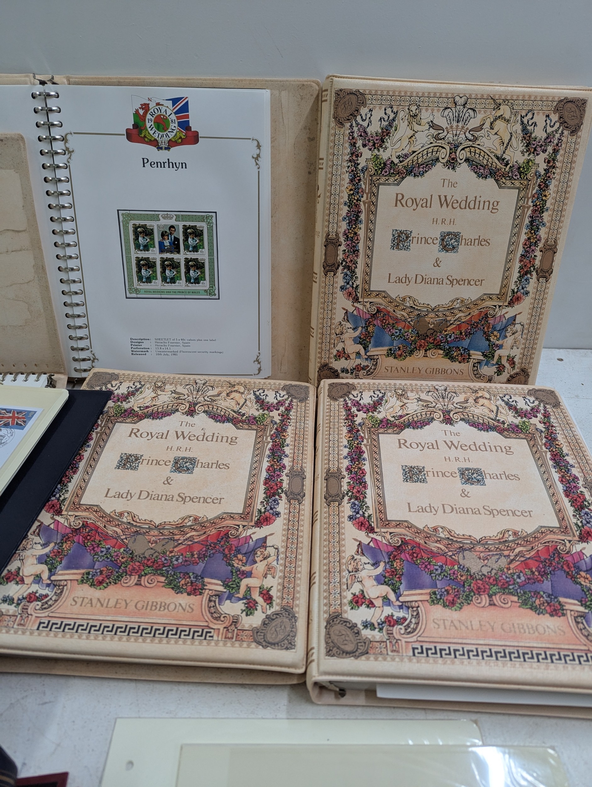 A quantity of Royal Wedding stamps, a collection of 1st class Royal Mail postage stamps, commemorative First Day covers and others, together with empty unused album covers and postage stamps from around the world Location: LWB