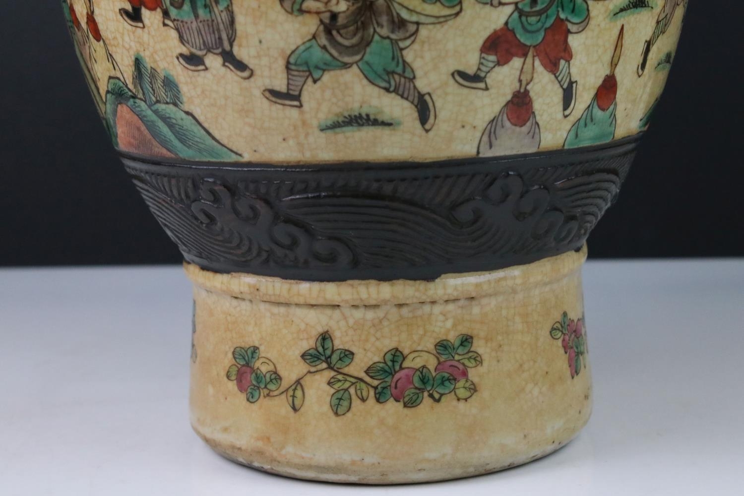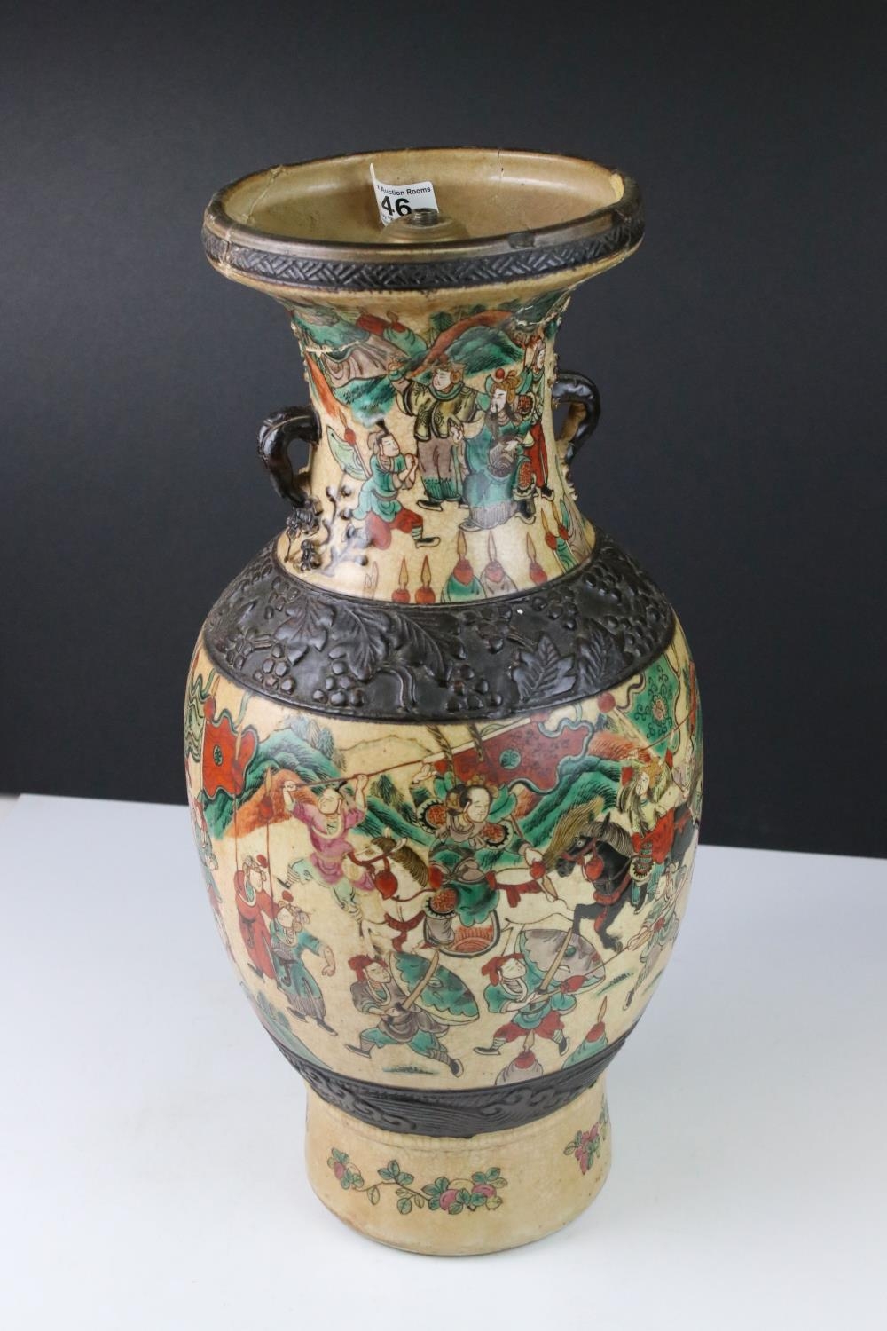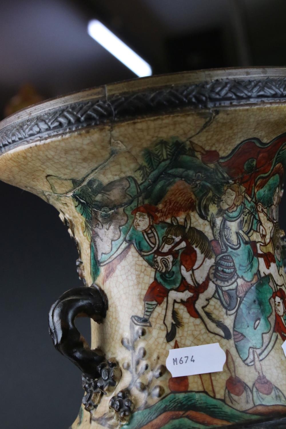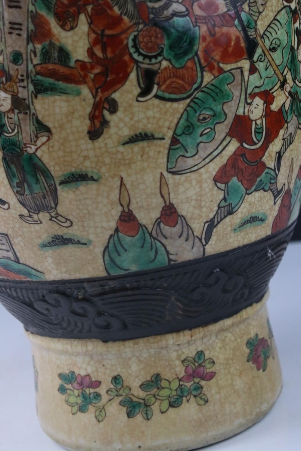 Chinese Crackle Glazed Nankin style Vase (converted to a lamp) decorated with a battle scene, 46cms high