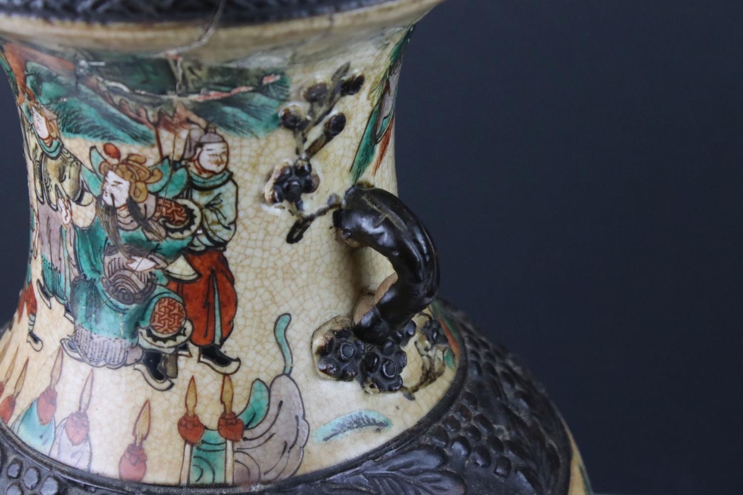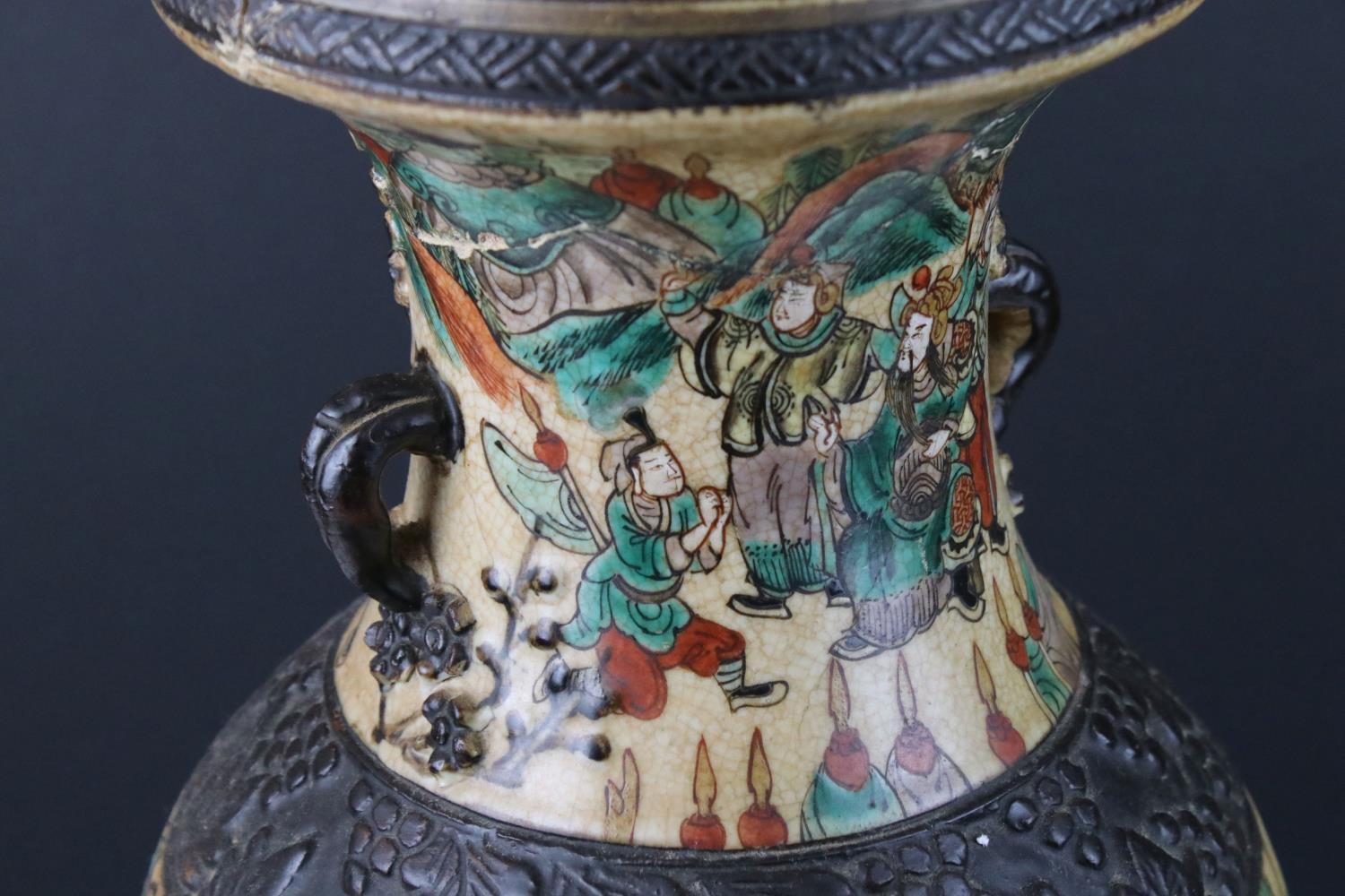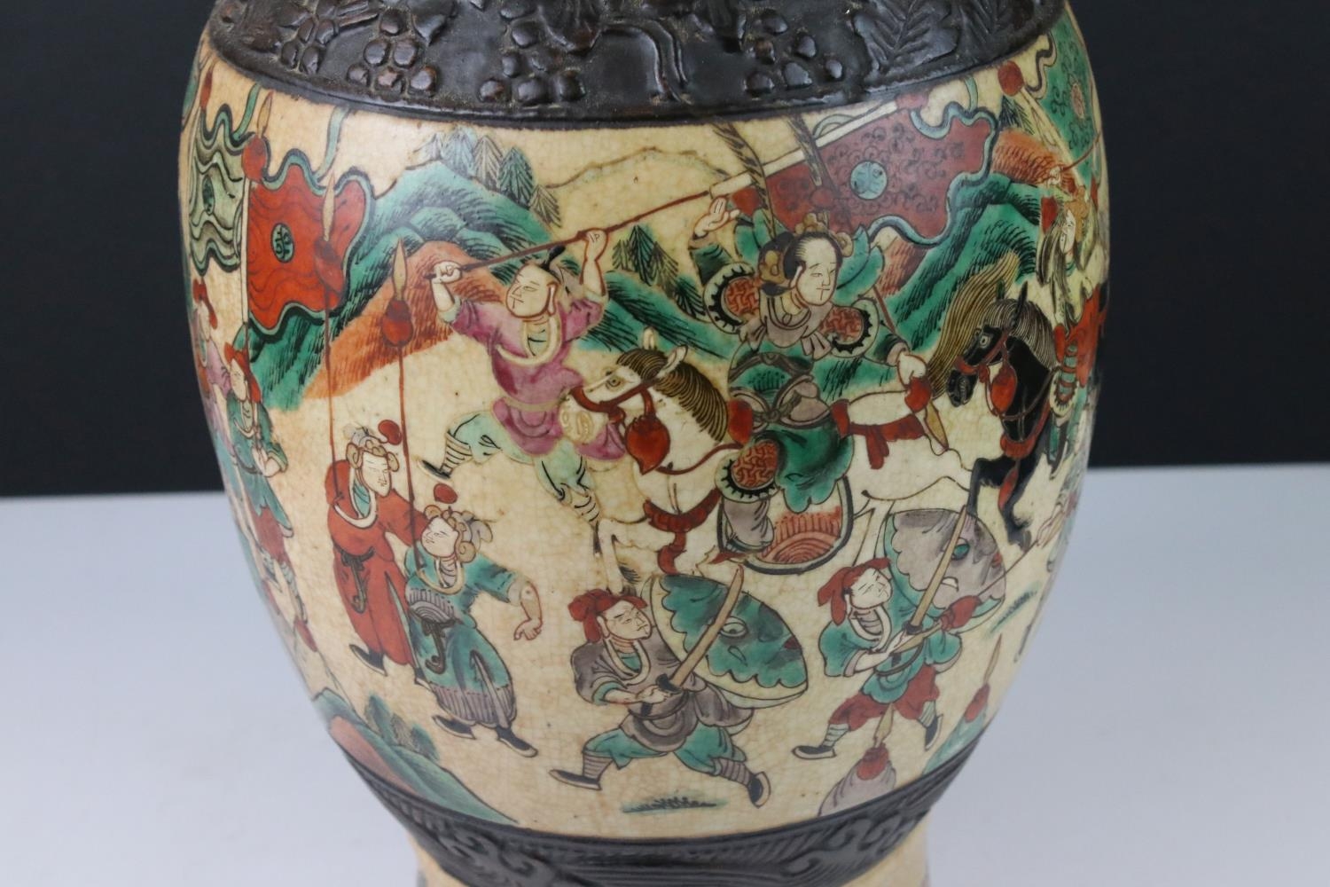 Chinese Crackle Glazed Nankin style Vase (converted to a lamp) decorated with a battle scene, 46cms high