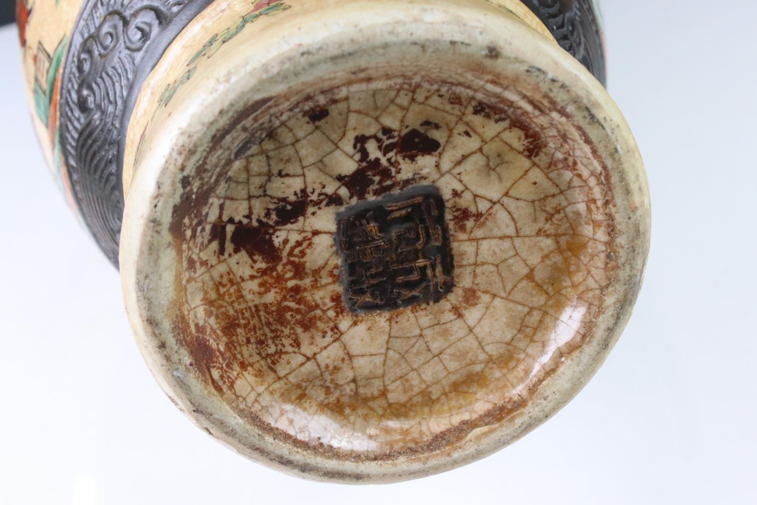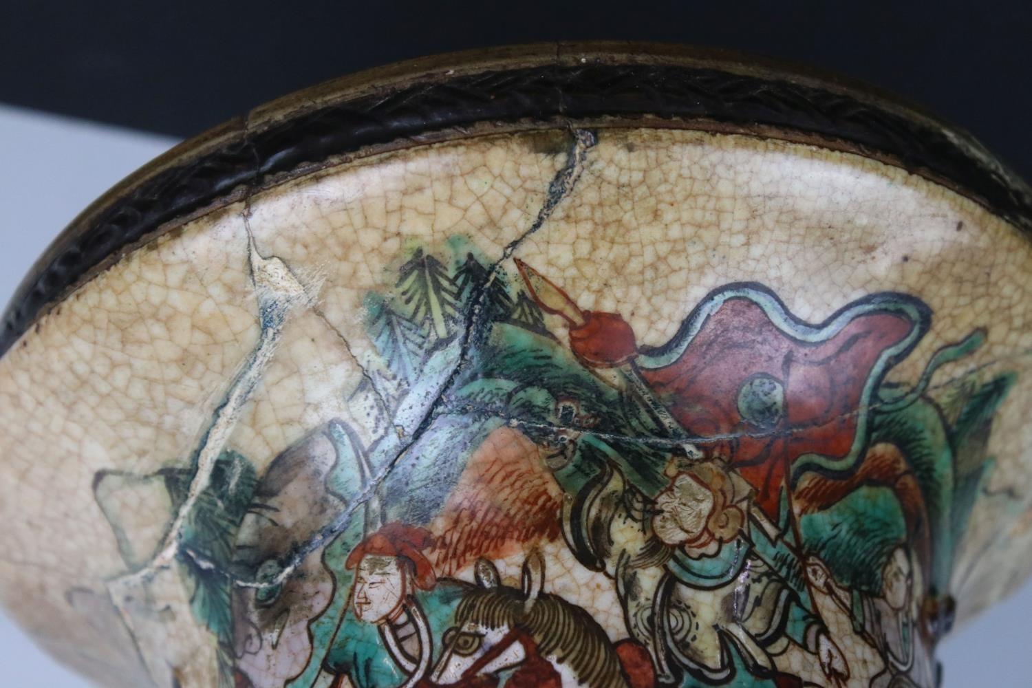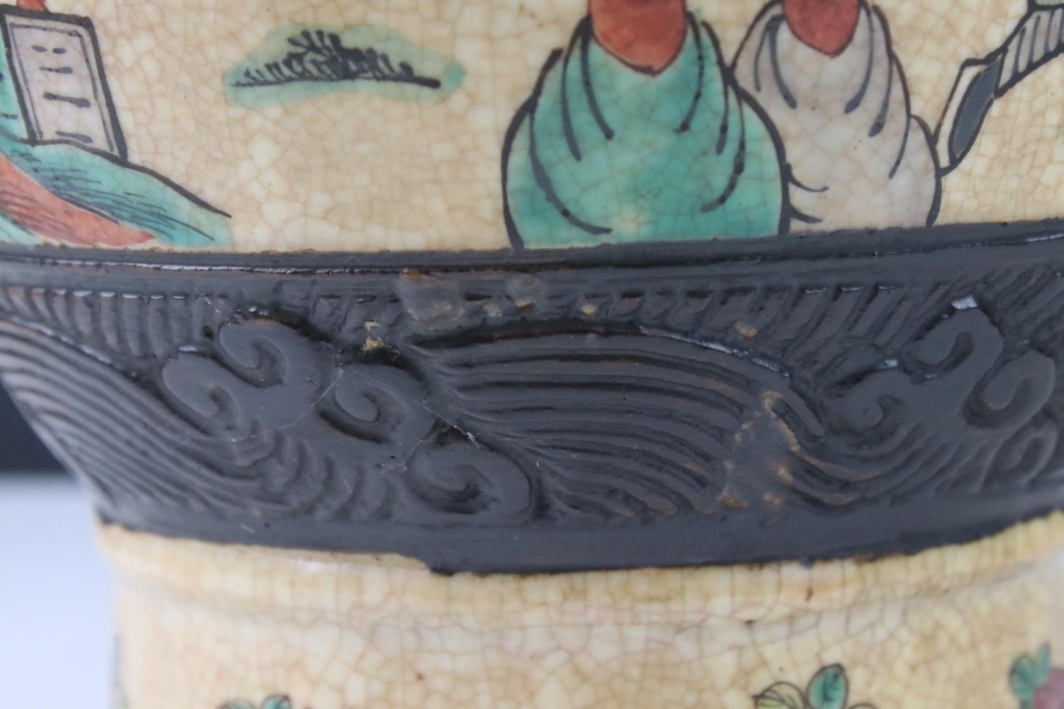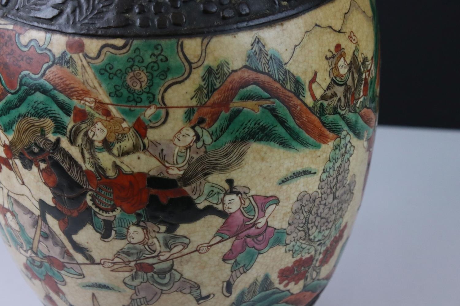 Chinese Crackle Glazed Nankin style Vase (converted to a lamp) decorated with a battle scene, 46cms high