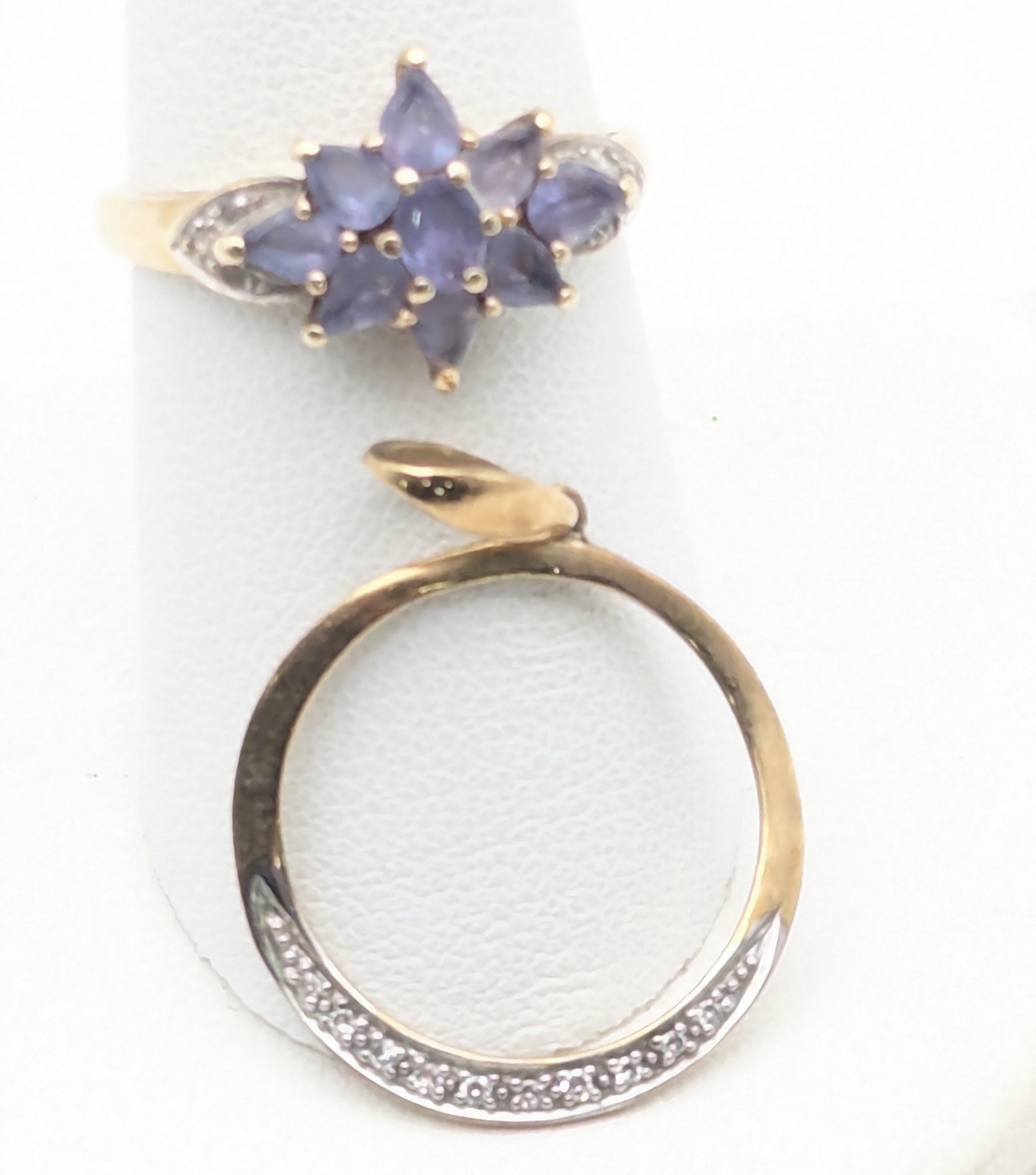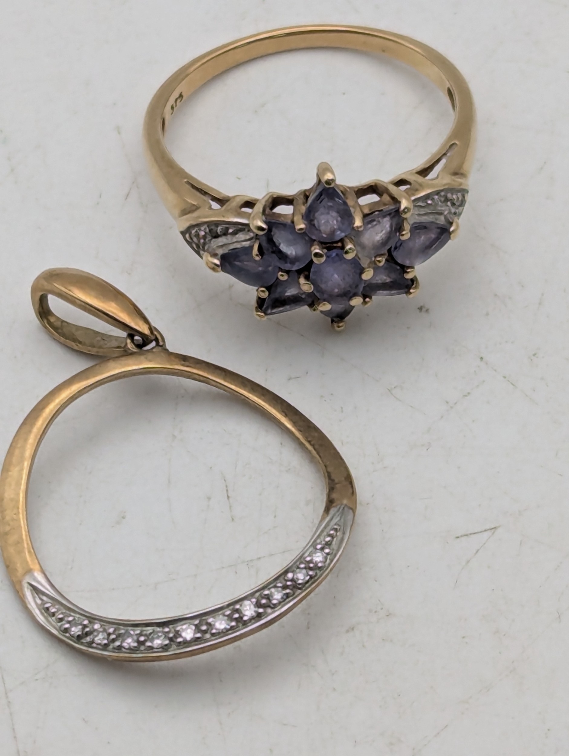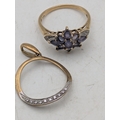 A 9ct gold tanzanite and diamond chip cluster ring, together with a diamond chip pendant, total weight 3.7g