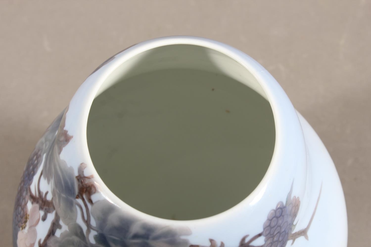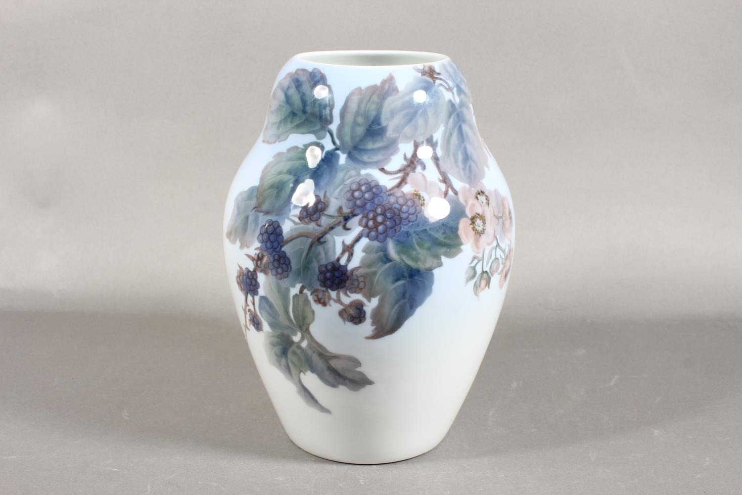 Bing & Grondahl of Denmark porcelain baluster vase with fruiting vine decoration, signed to base #185/182, 25cm high.
