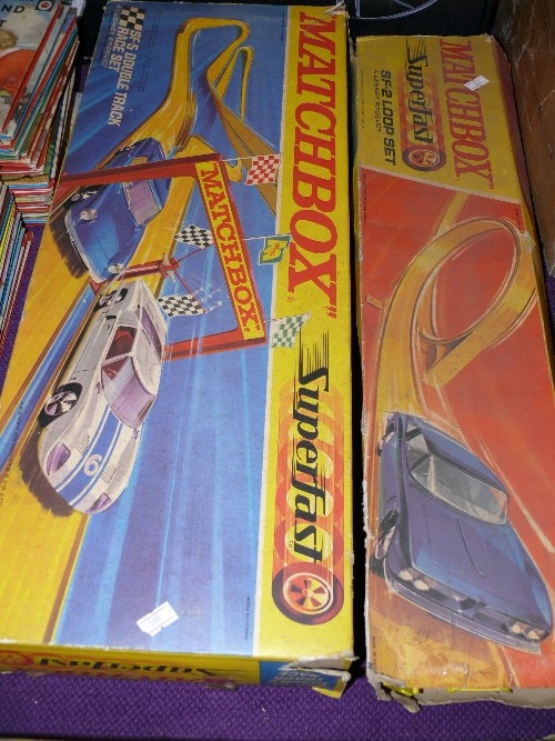 TWO VINTAGE BOXED MATCHBOX SUPERFAST CAR TRACK SETS.