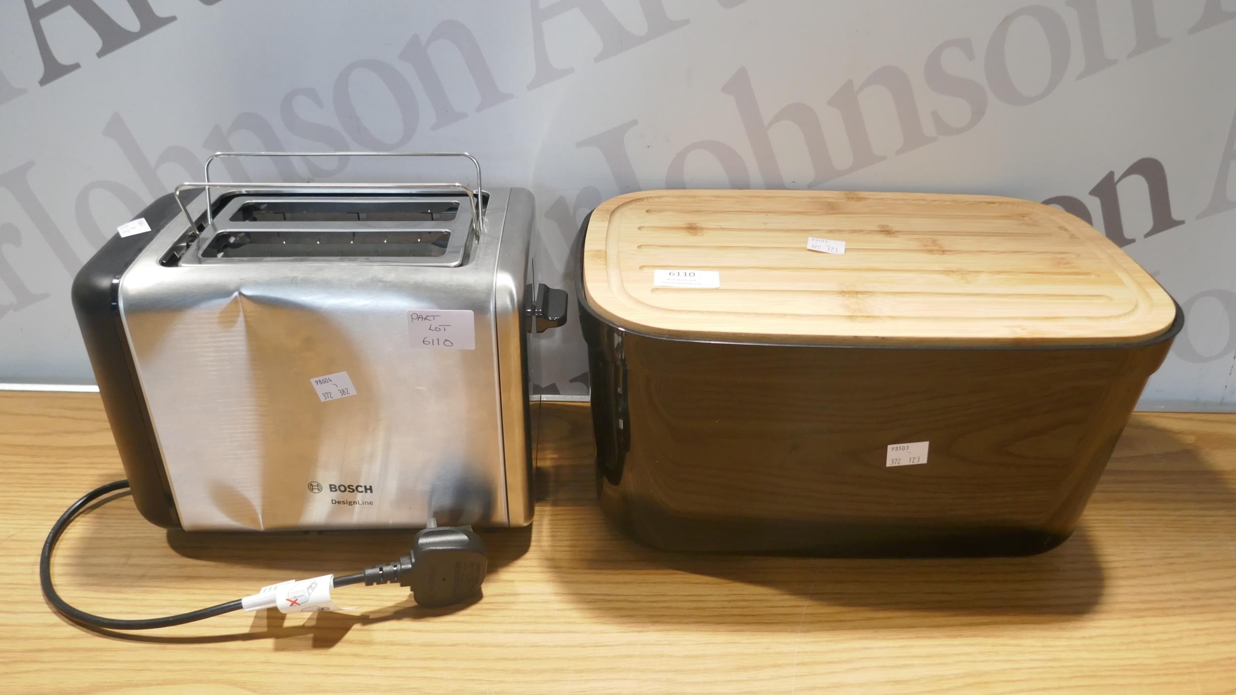 Joseph Joseph black bread bin and a Bosch Design Line 2 slot toaster (dent) (372-123,382) *This lot is subject to VAT