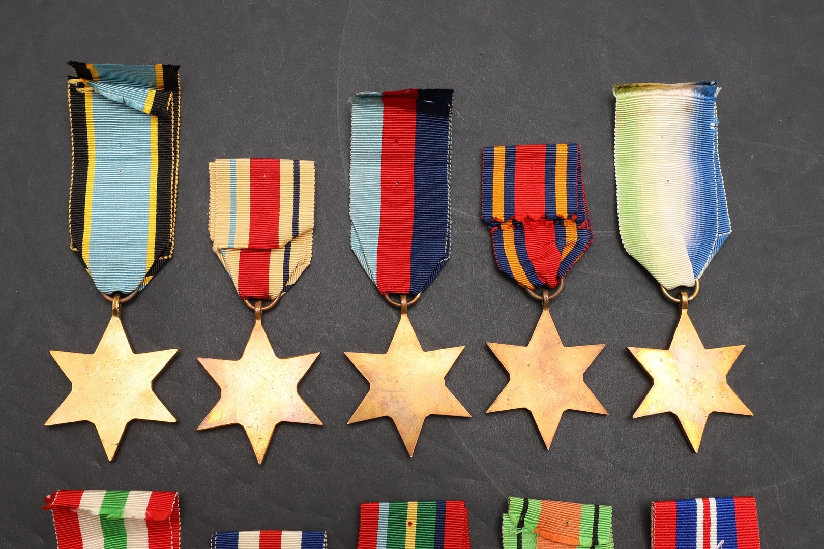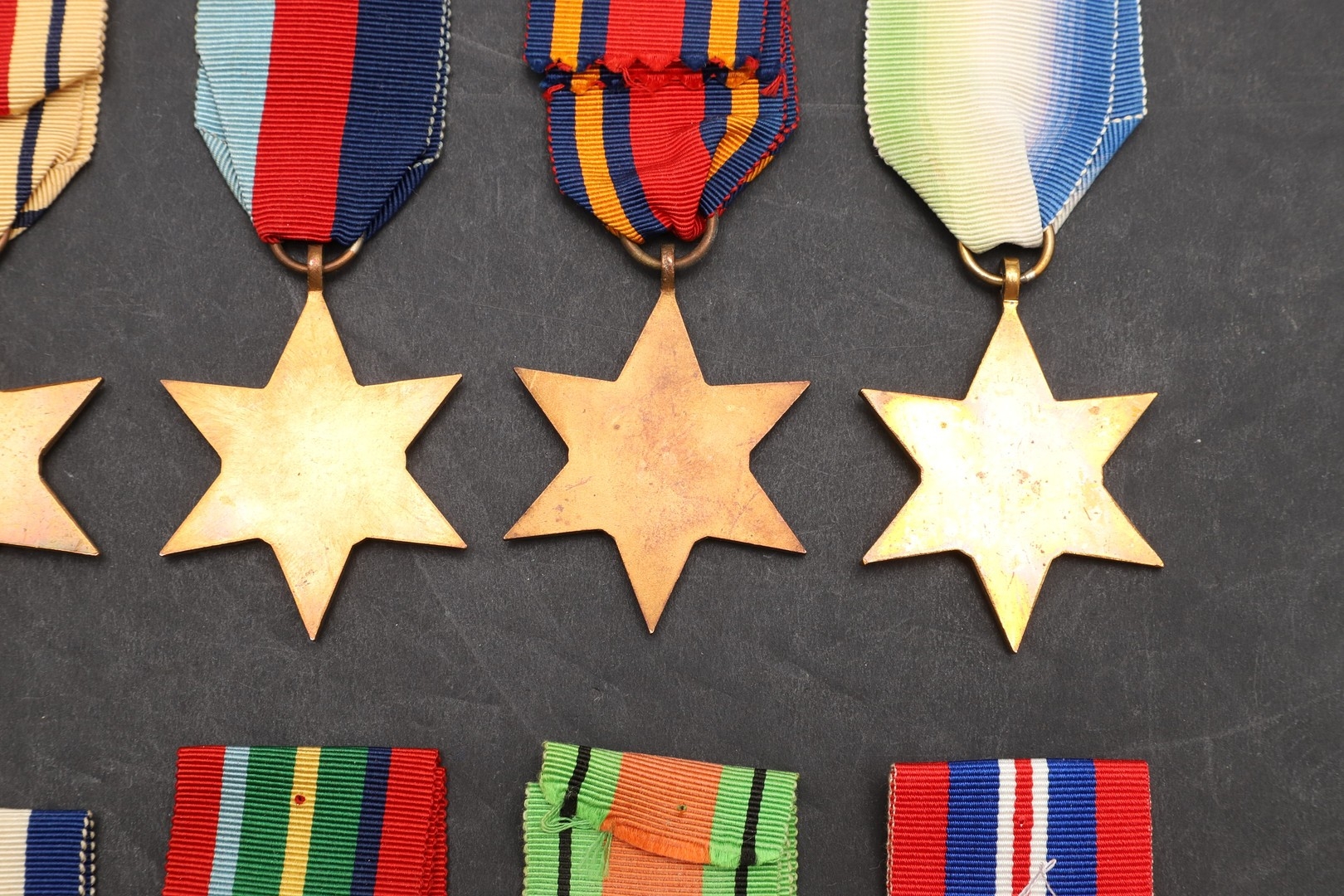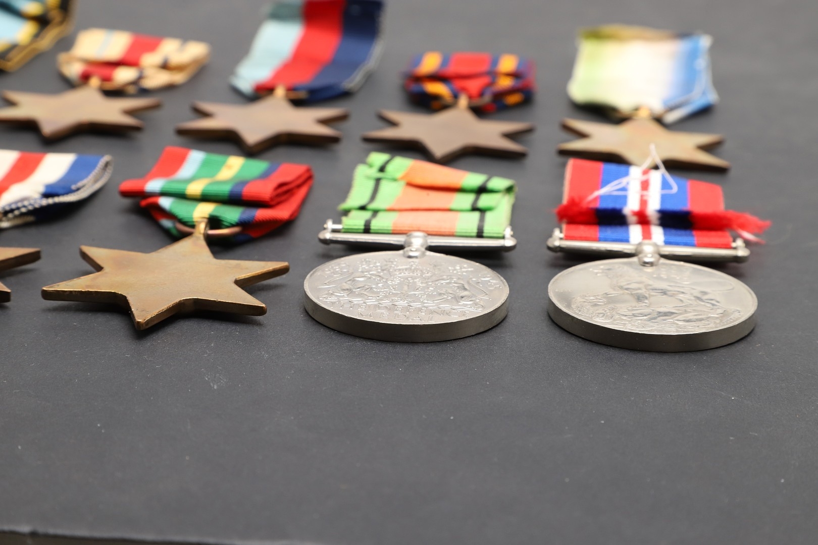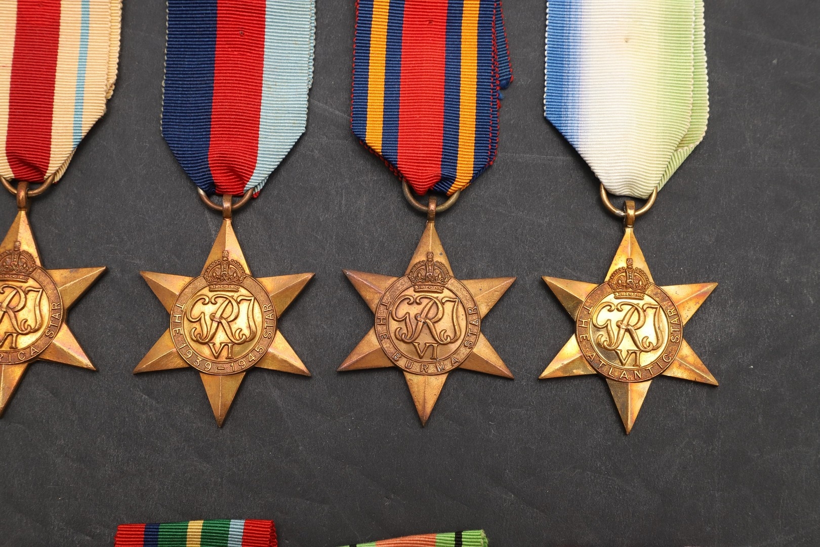 A COMPLETE COLLECTION OF EIGHT SECOND WORLD WAR STARS AND TWO OTHERS. A collection of Second World War Stars comprising 1939-45, France and Germany, Atlantic, Africa, Italy, Burma, Pacific and Air Crew Europe Star (Copy), and a Defence Medal and War Medal. All unnamed as issued.