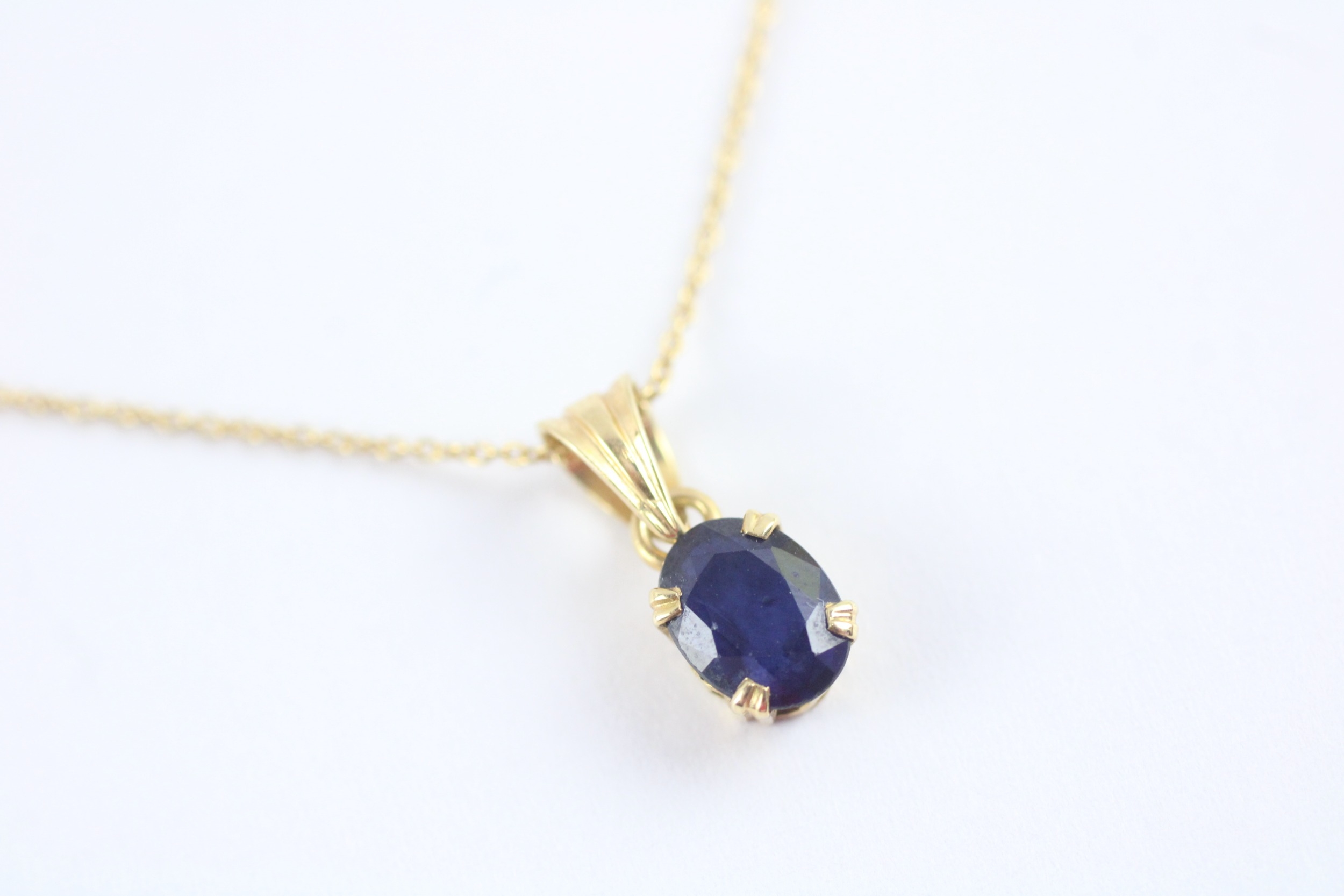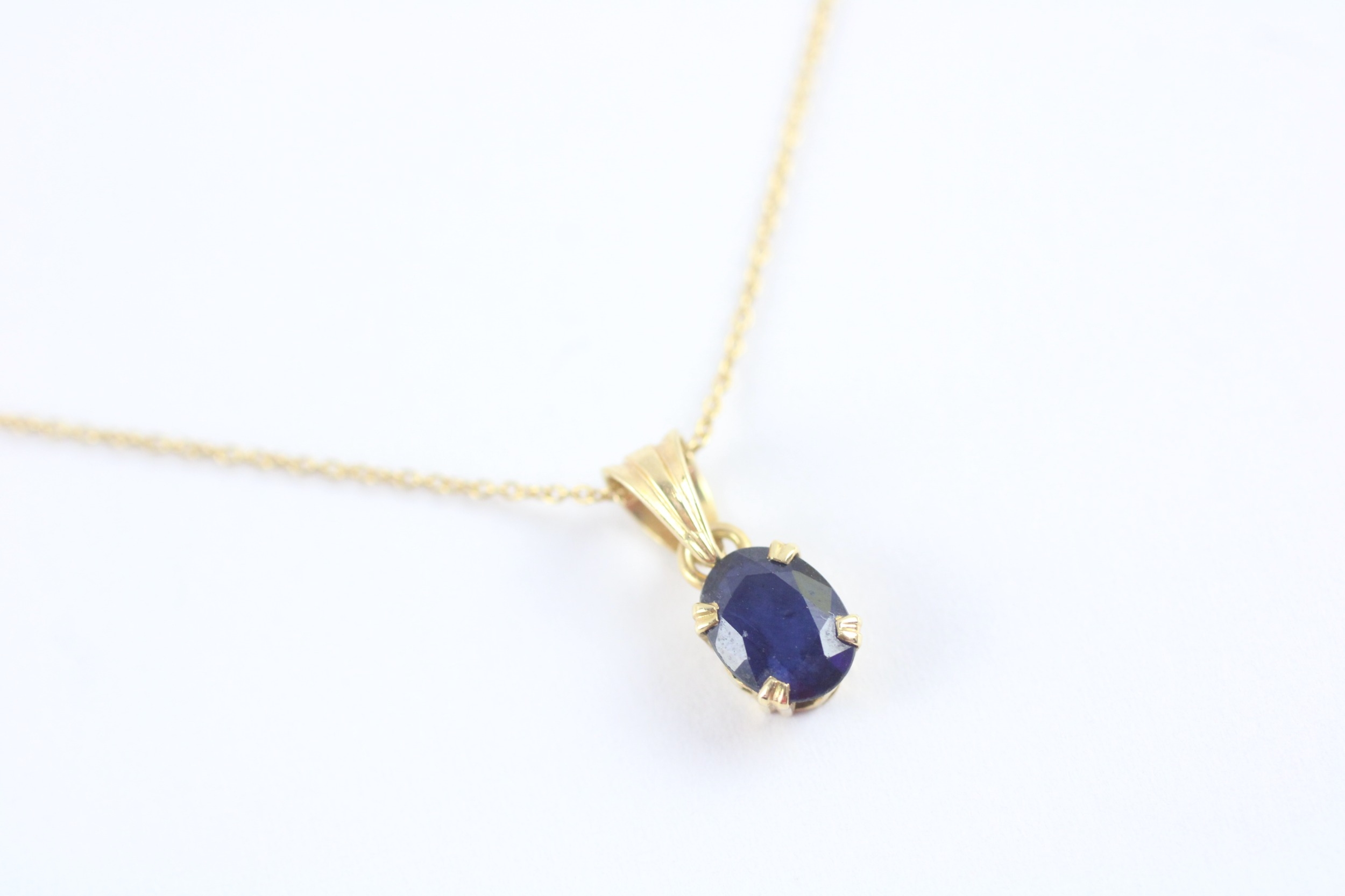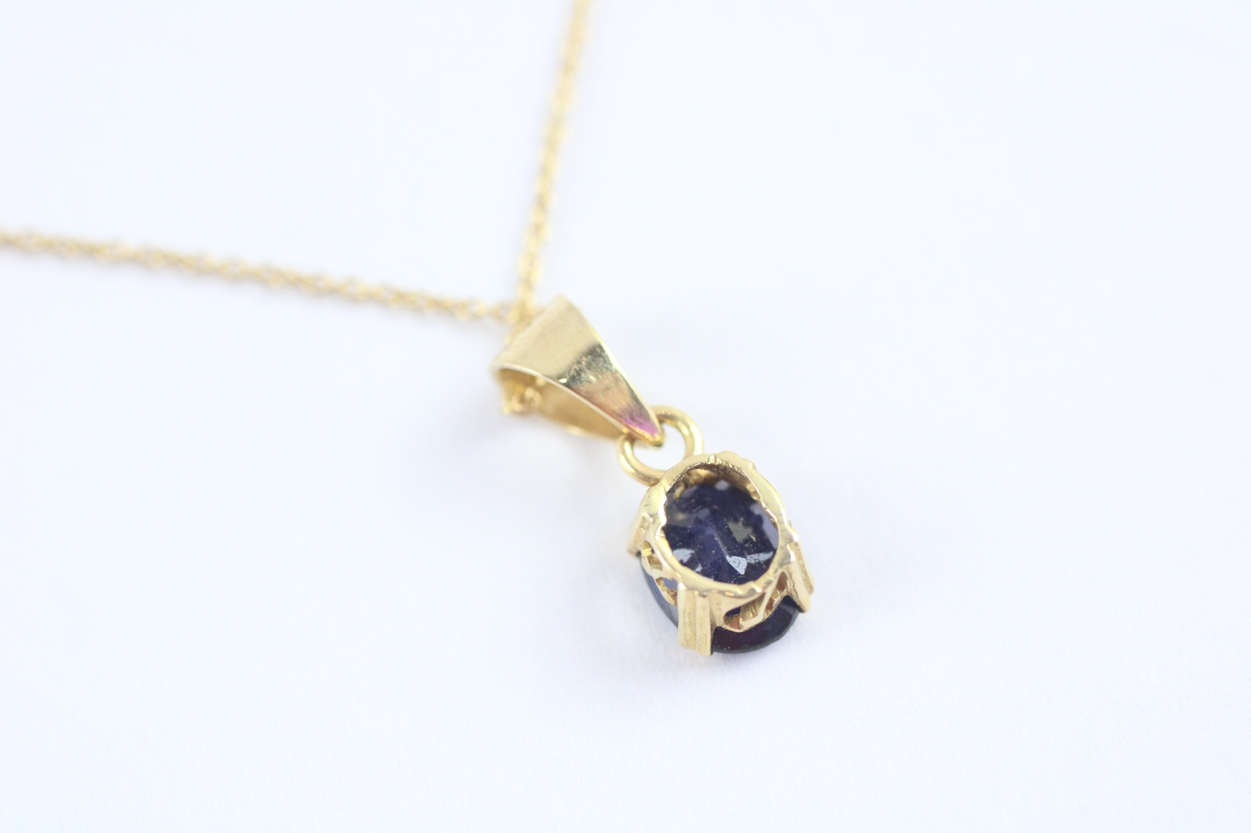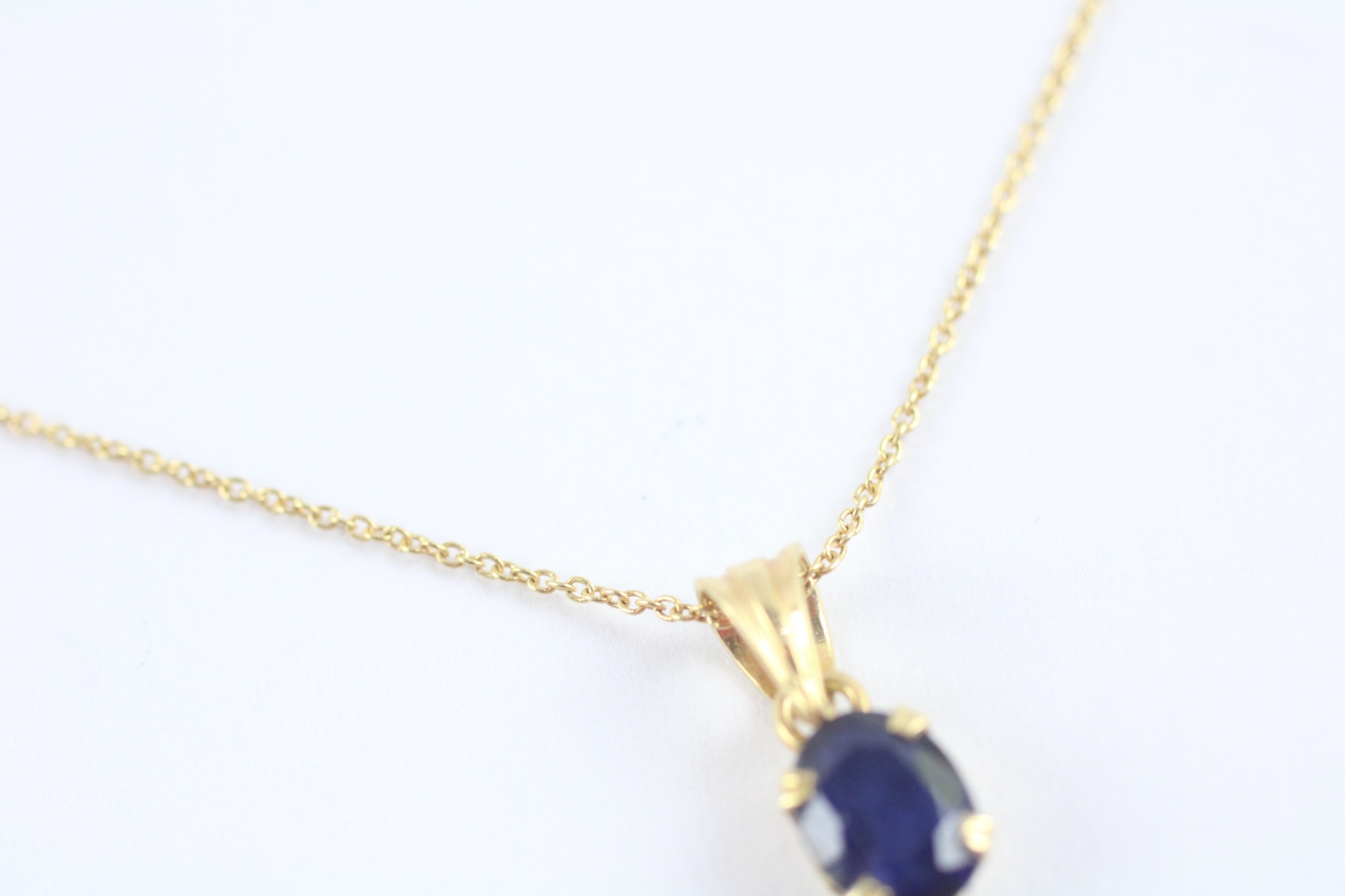 18ct gold sapphire pendant necklace (1.9g) Size N