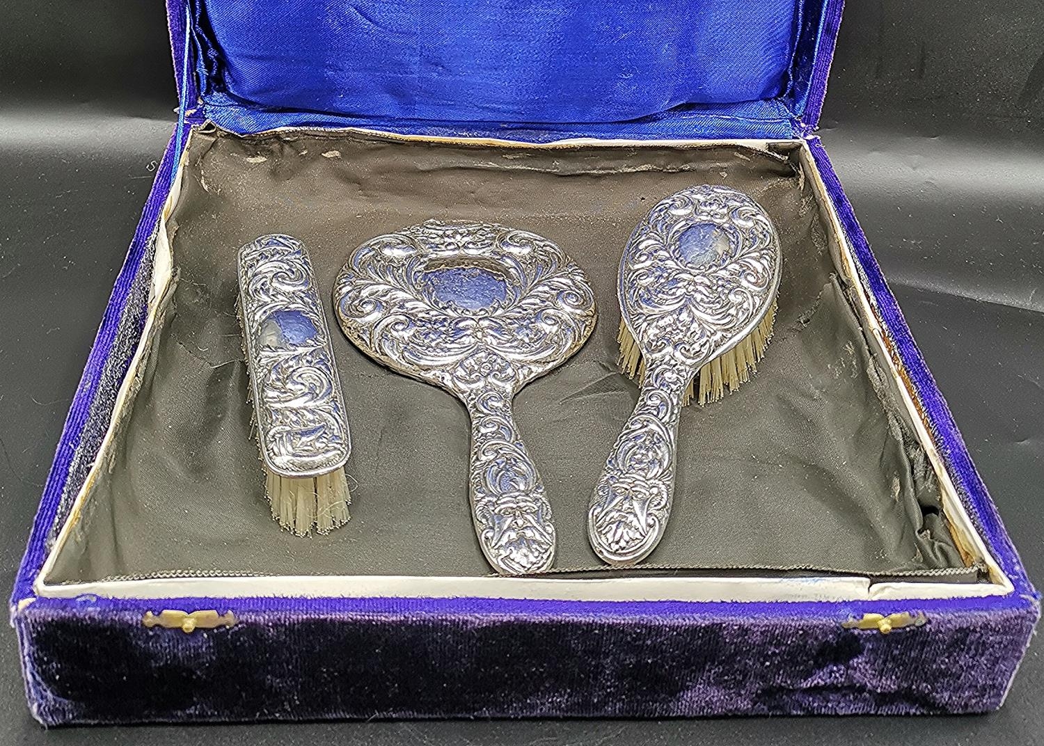 PRESENTED AS A SOLID SILVER (Hallmarked For Birmingham , By Broadway & Co) DRESSING TABLE SET