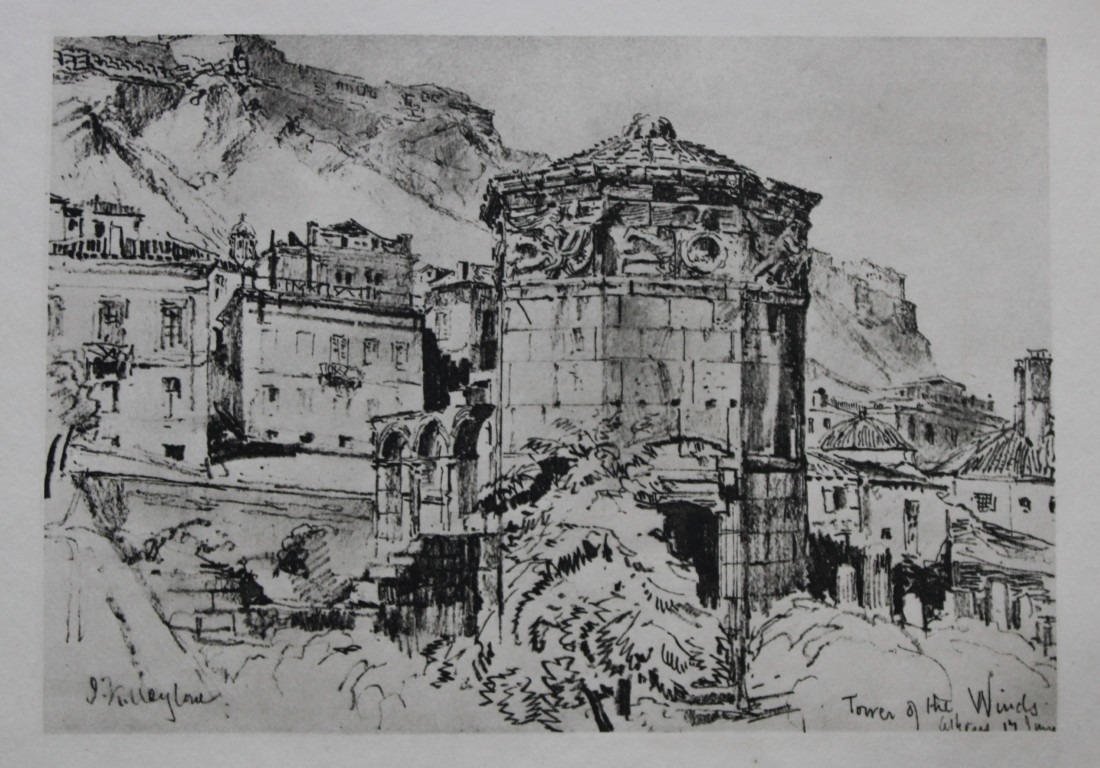John Fulleylove 1897 - Etching of Temple of the Winds. This superb etching is from Pictures of Classic Greek Landscapes and Architecture by John Fulleylove RI. Published by JM Dent & Co, London 1897.
