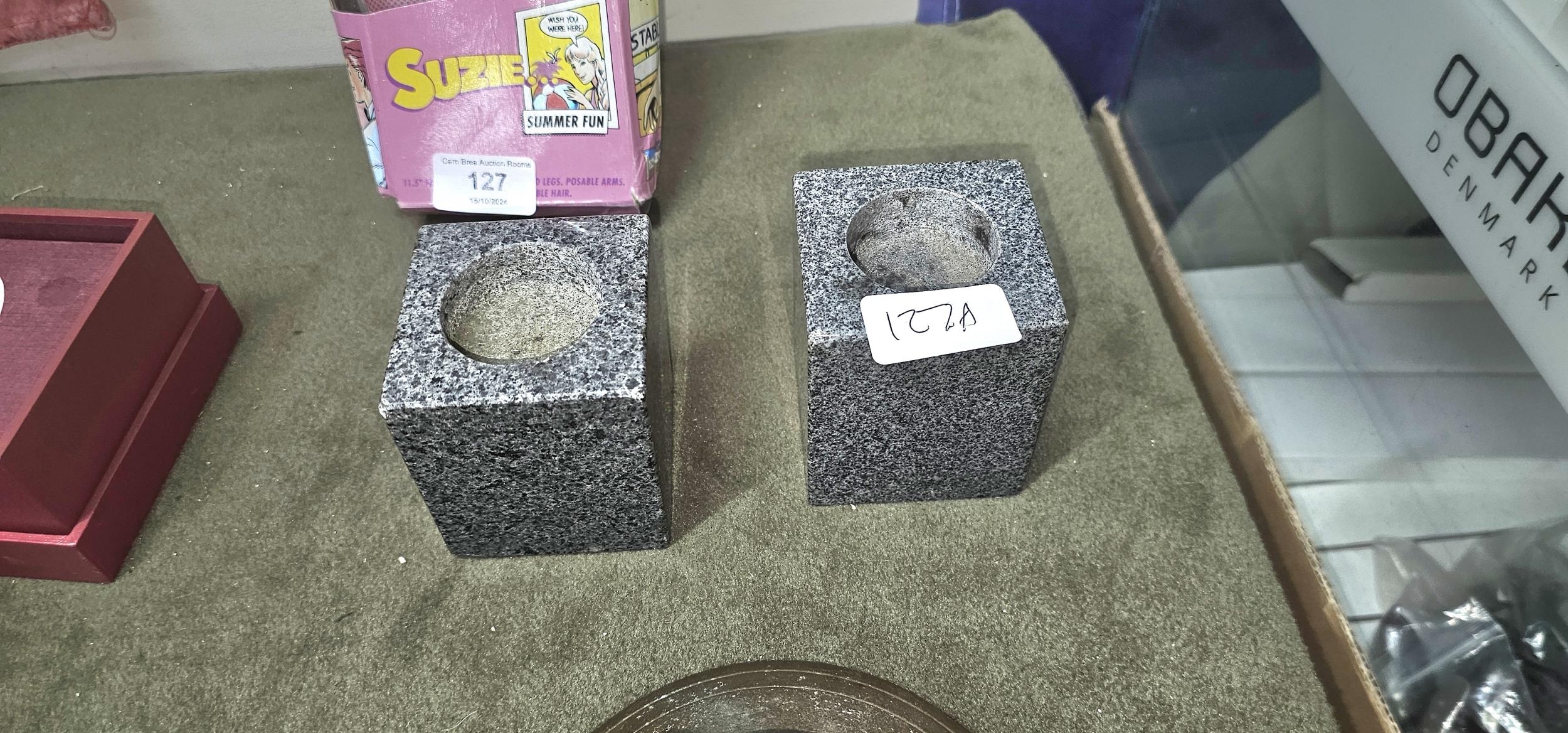 2 MARBLE CANDLE HOLDERS