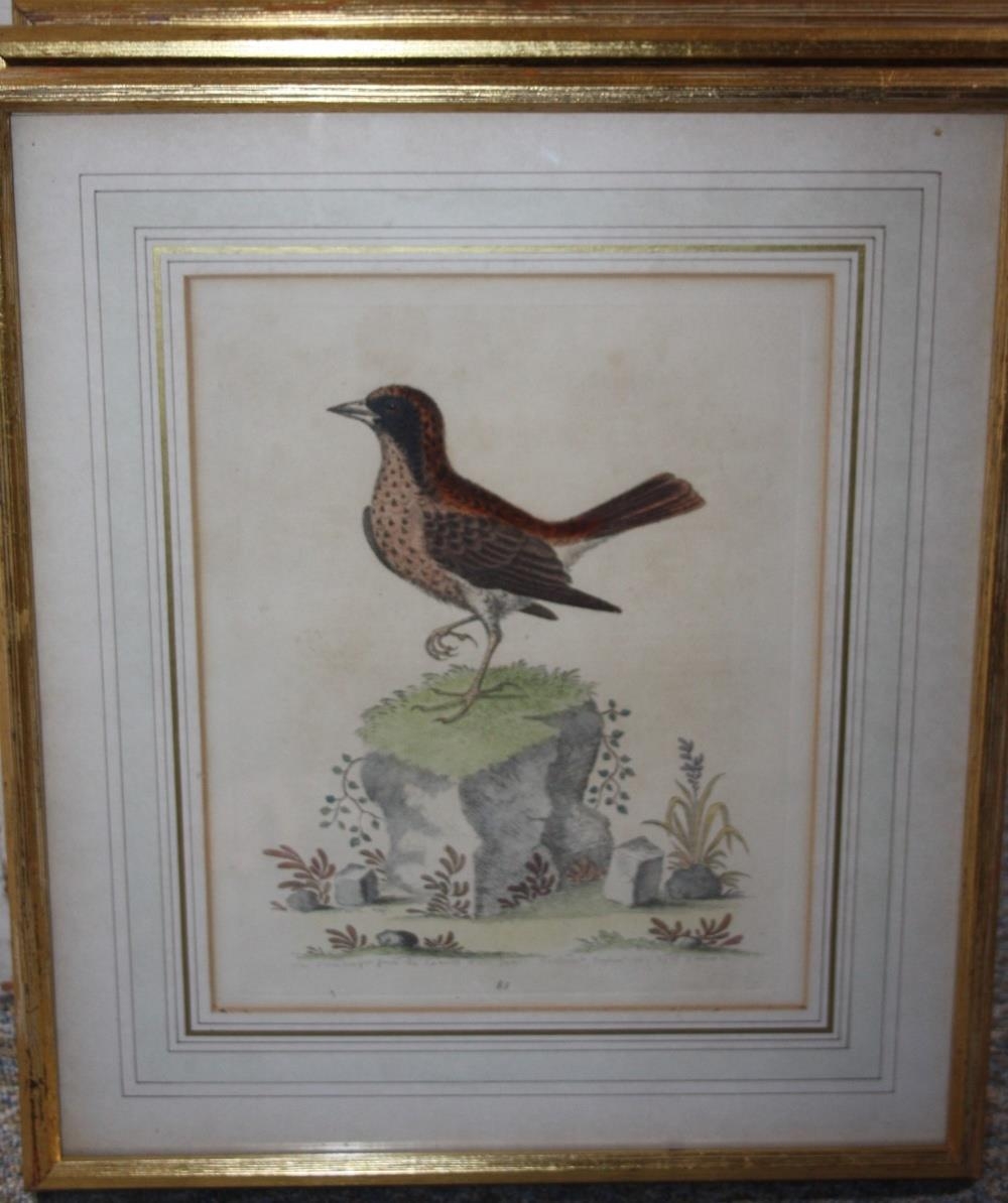 A SET OF FOUR COLOURED ORNITHOLOGICAL ENGRAVINGS, gilt framed and glazed, 25.5 x 20.5 cm