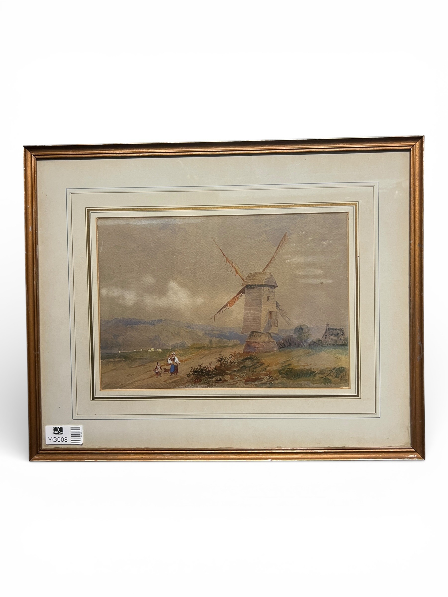 Thomas Cooper 1908 Watercolour of Mountain and Windmill – 41cm x 51cm