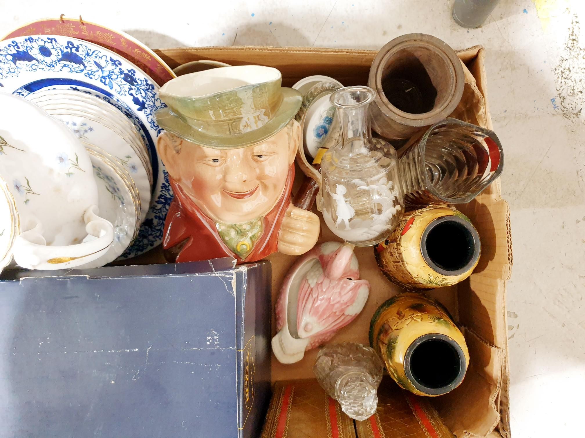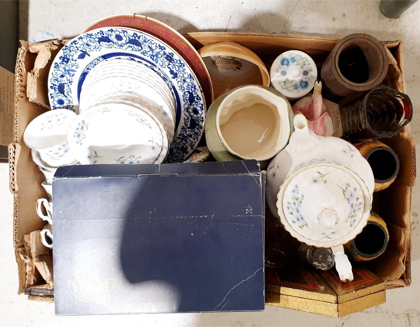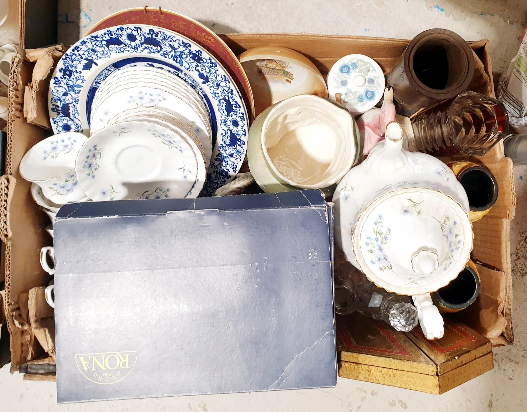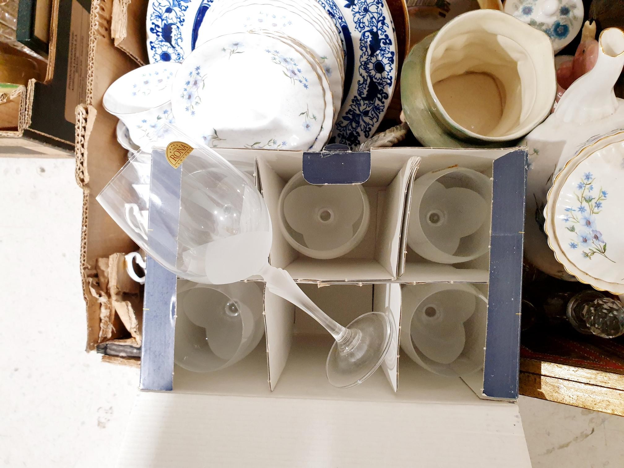 Two boxes of glass, china and assorted. No Shipping. Arrange collection or your own packer and shipper, please. Electricals are sold as scrap.