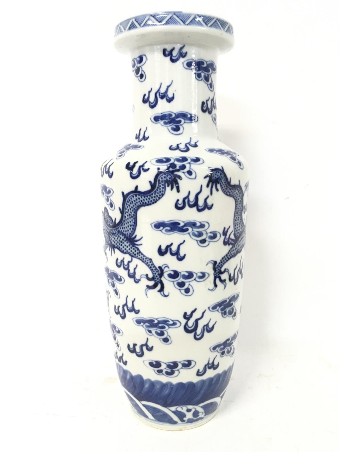A 19th century blue and white Chinese dragon vase, approximately 30cm high.