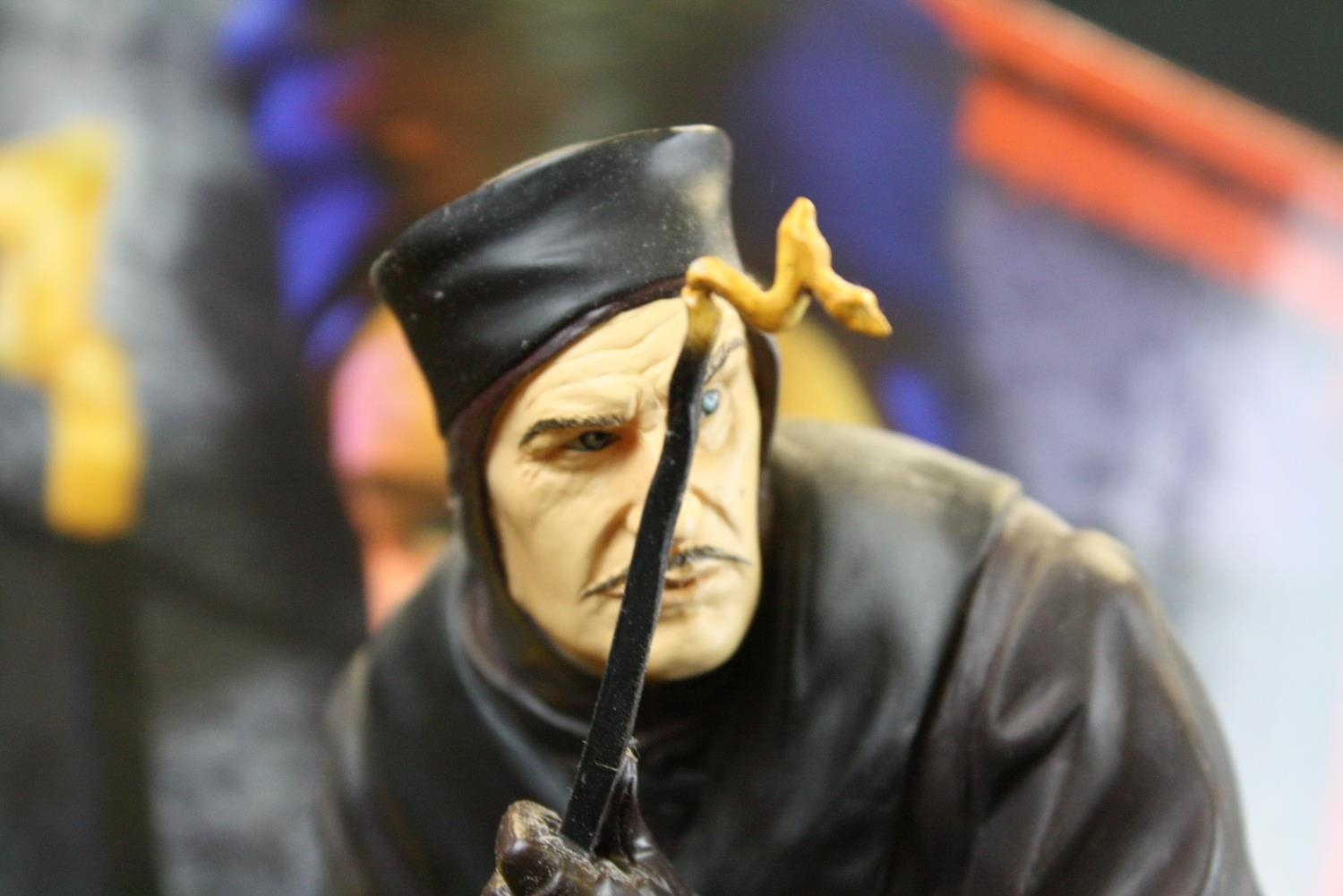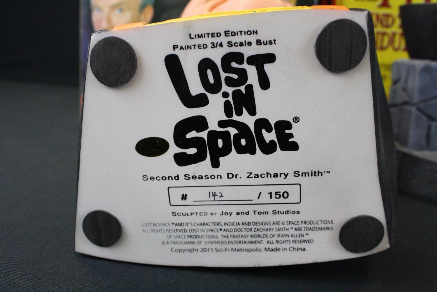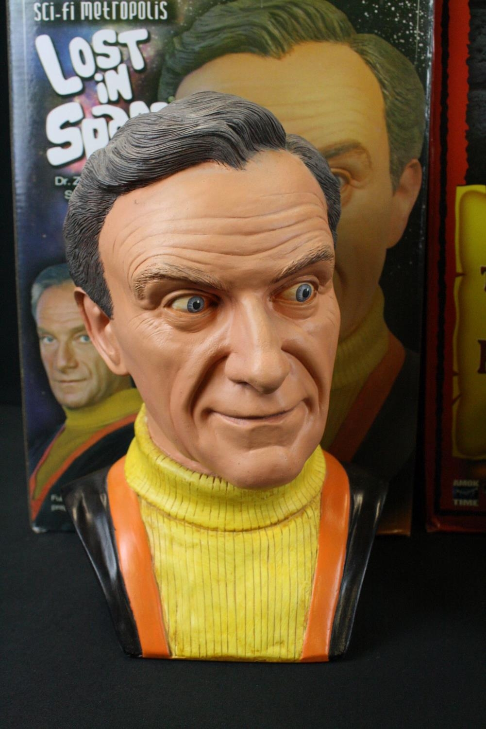 Three boxed Sci Fi collectibles to include DC Direct ltd edn The Bottle City Of Kandor, Root Factory Inc Lost In Space 3/4 ltd edn Dr Zachary Smith (142/150) & Amok Time Edgar Allan Poe's The Pit And The Pendulum Collectors Statue, boxes poor, figures gd overall, boxes poor