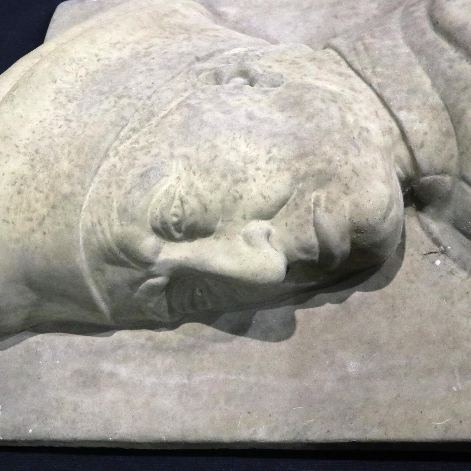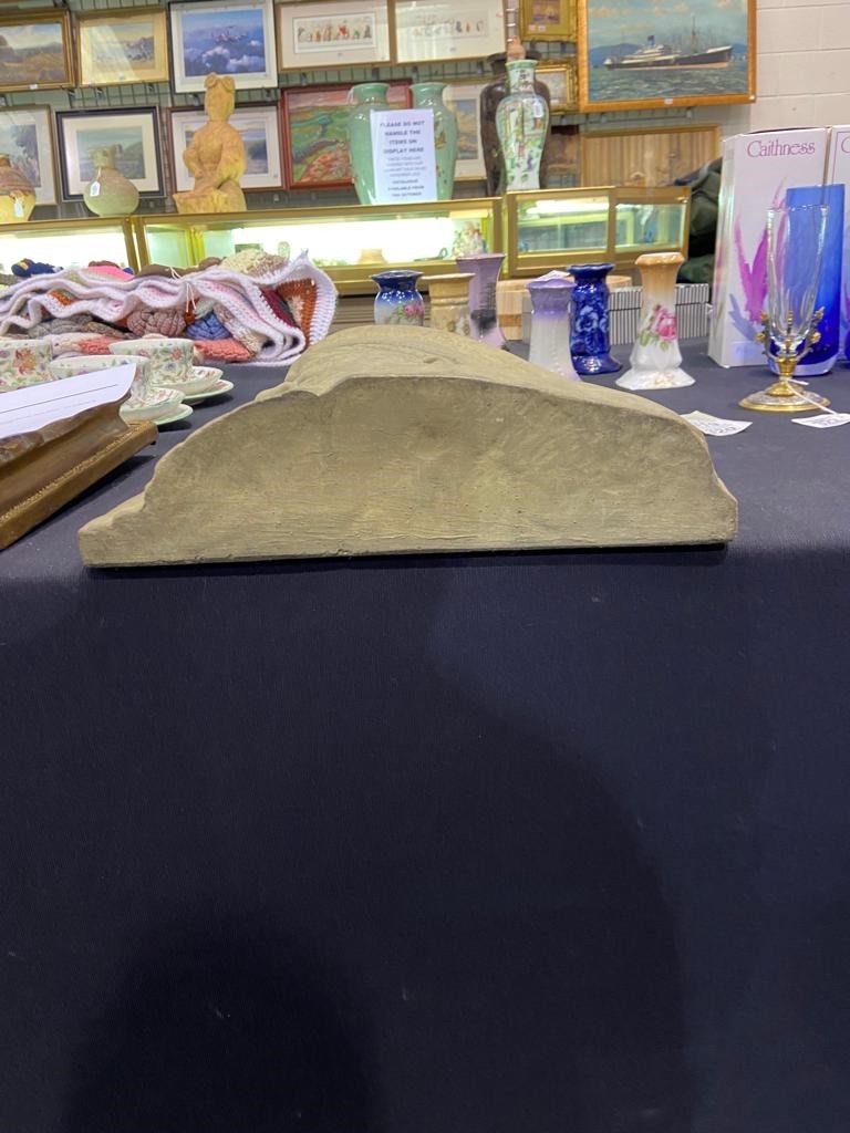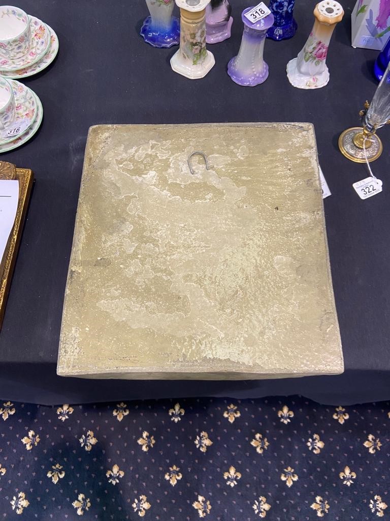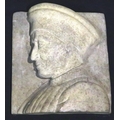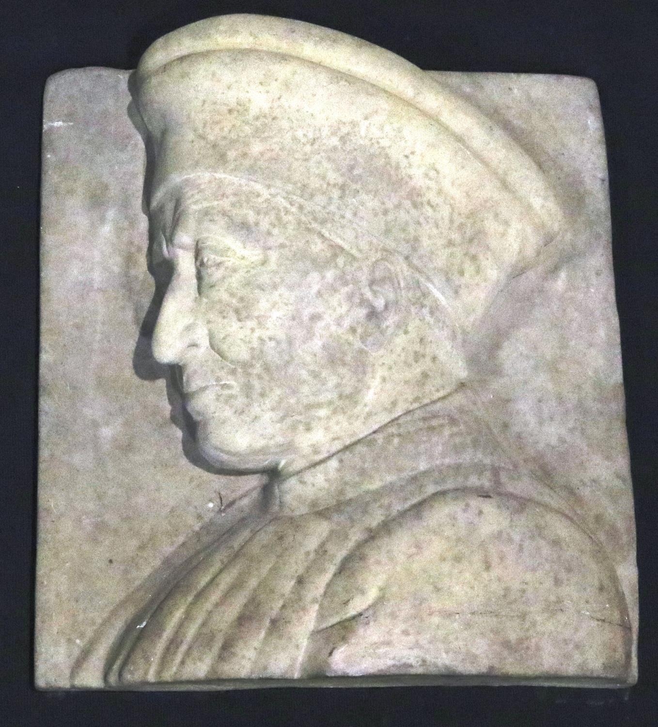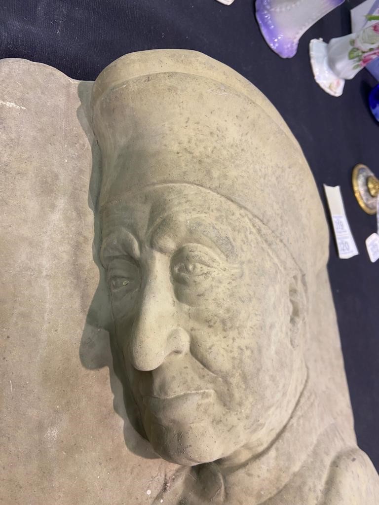 A large early carved relief of a pope or religious figure, side profile, overall 37 x 35 cm. Made from stone. P&P Group 3 (£25+VAT for the first lot and £5+VAT for subsequent lots)