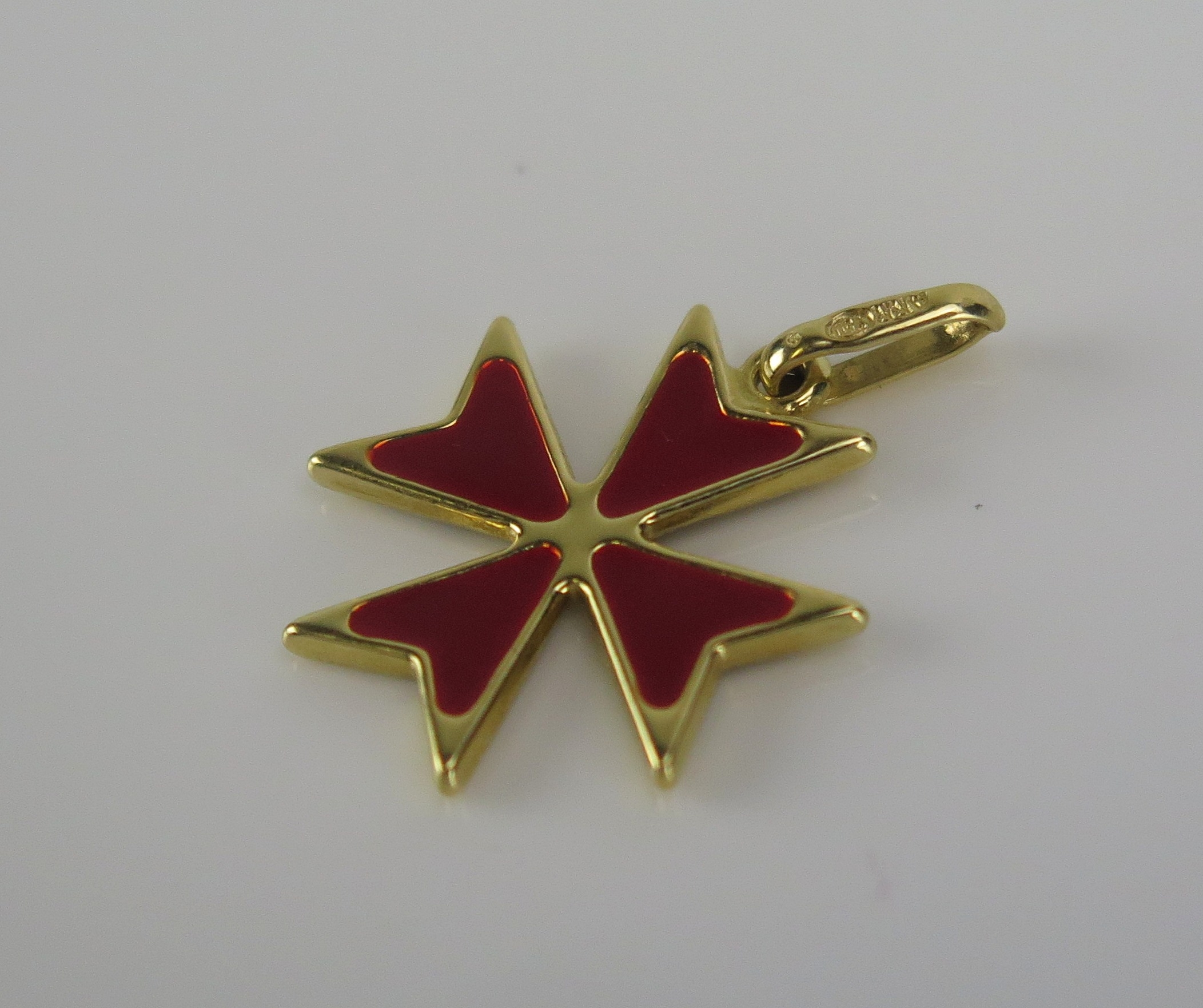 An 18ct yellow gold and enamel Maltese cross pendant, c. 25mm drop, stamped 750, 1.19g