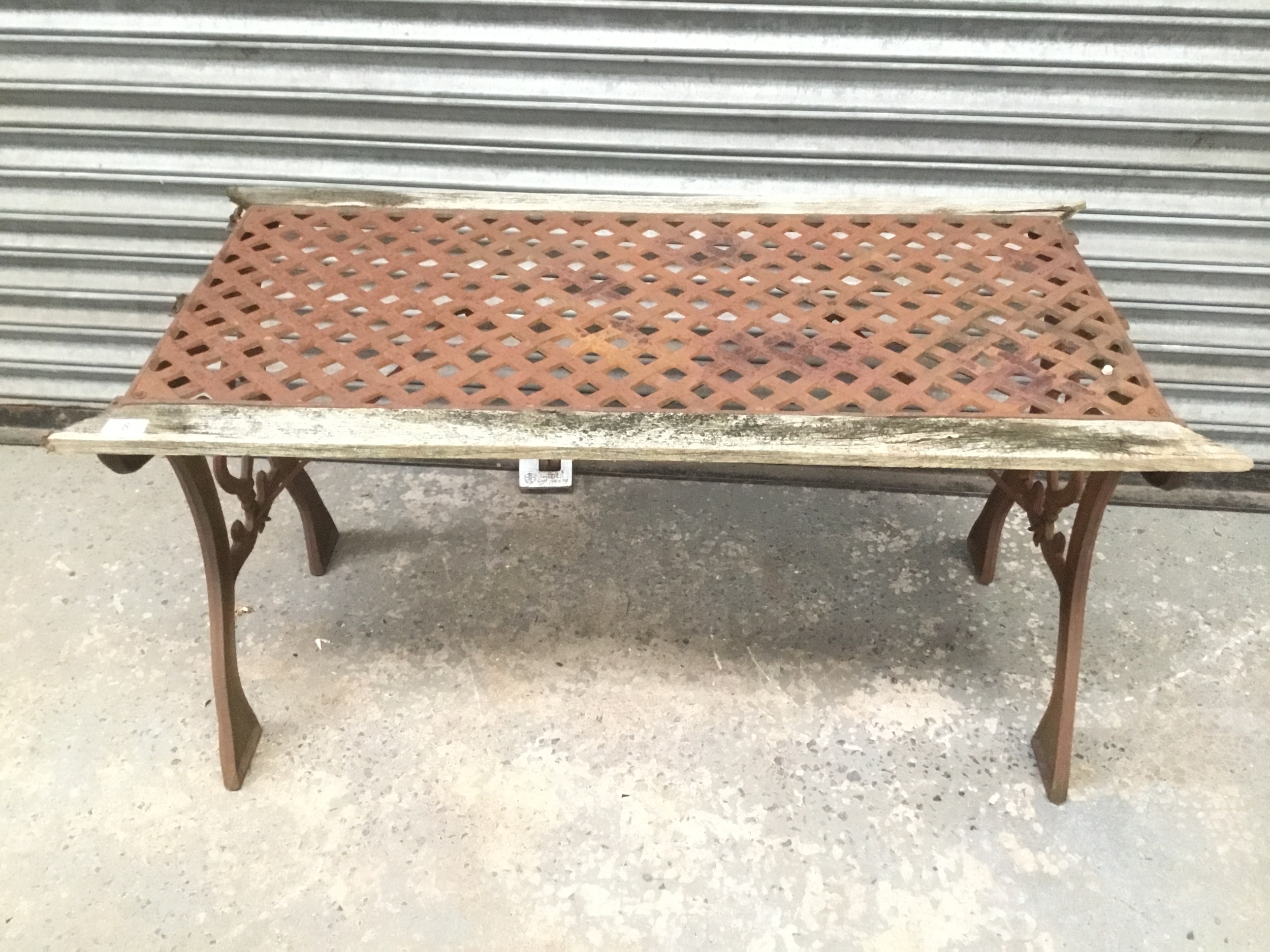 Cast iron table with metal latticework top A/F 108cm x 57cm