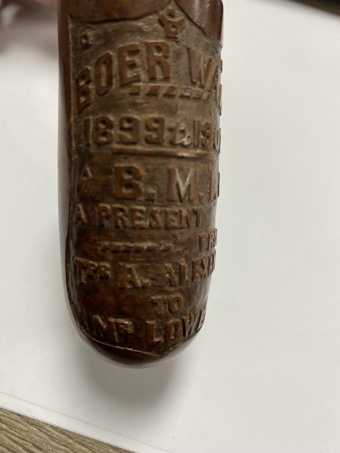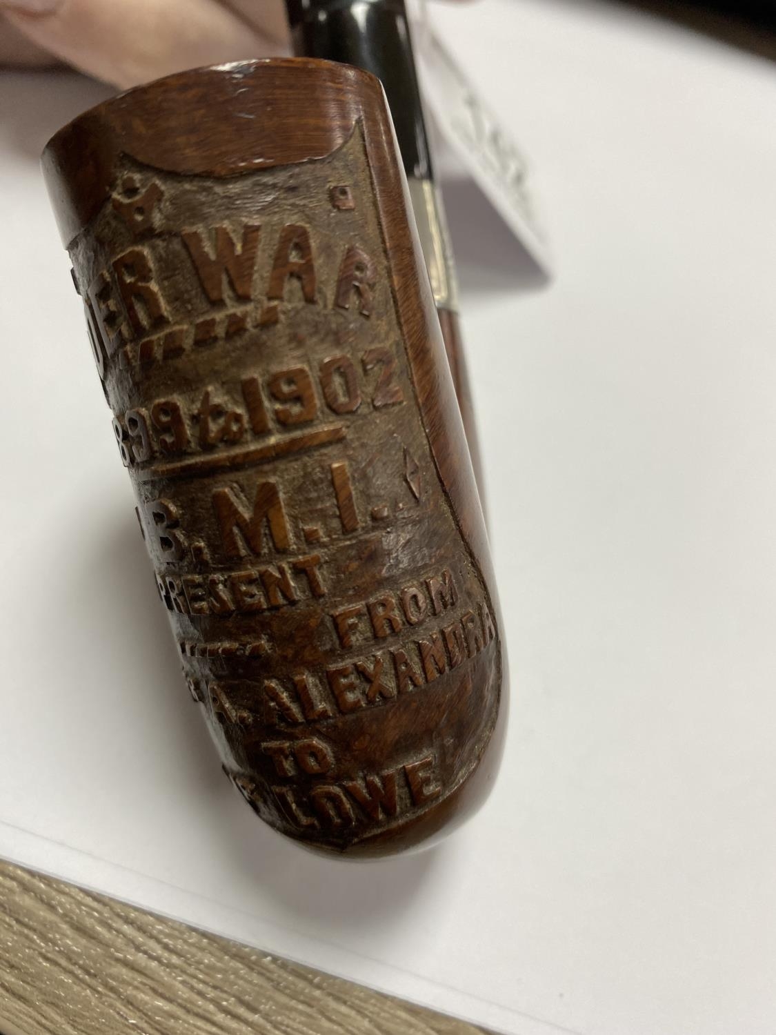 BOER WAR PIPE SILVER COLLAR COVERED PIPE BOER WAR 1899-1902 BMI PRESENT FROM THE TPA ALEXANDRA TO MR LOWE BMI=BRITISH MEDICAL INSPECTRATE