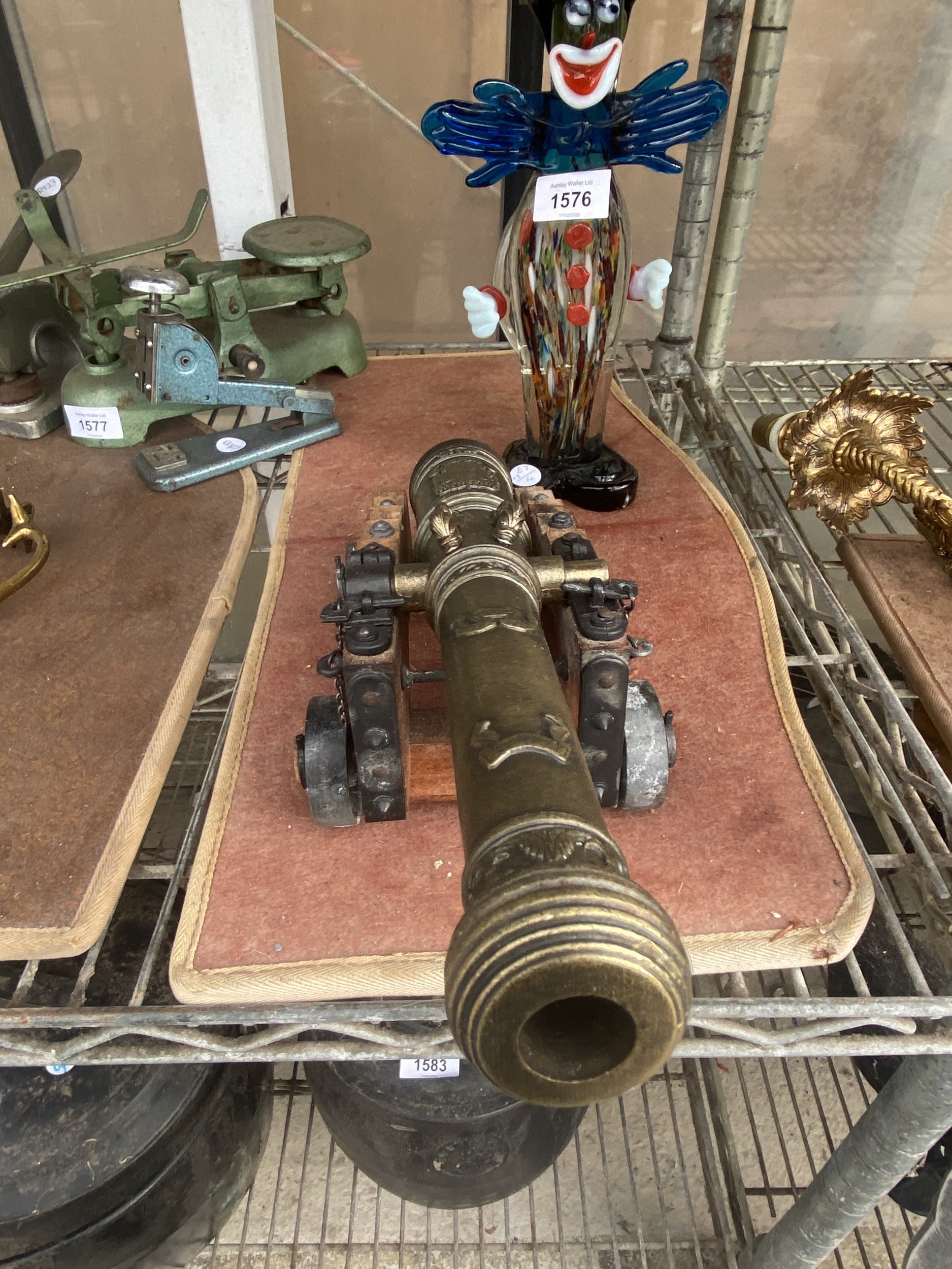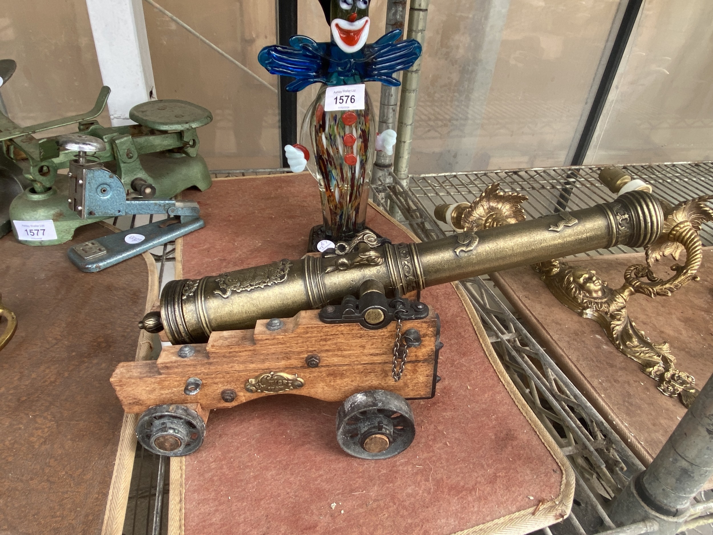 A MODEL OF A CANON WITH WOODEN BASE
