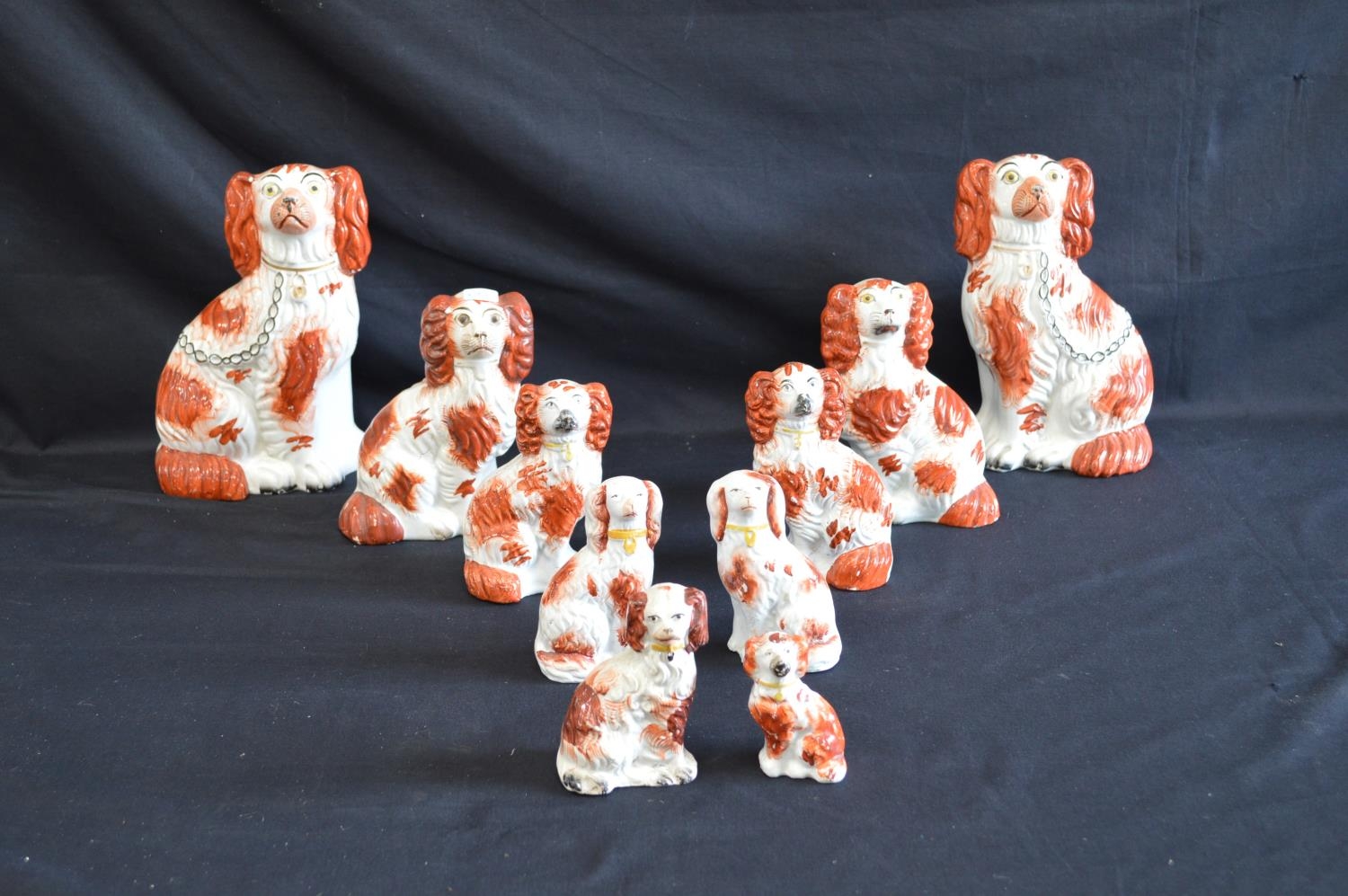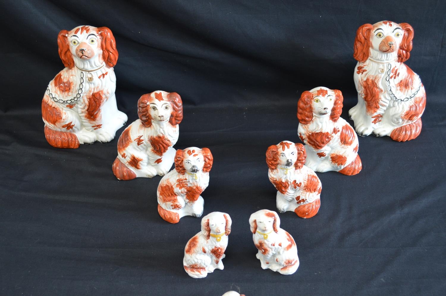 Four pairs of Staffordshire figures of Spaniels together with two other Staffordshire Spaniels - tallest 22.5cm