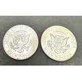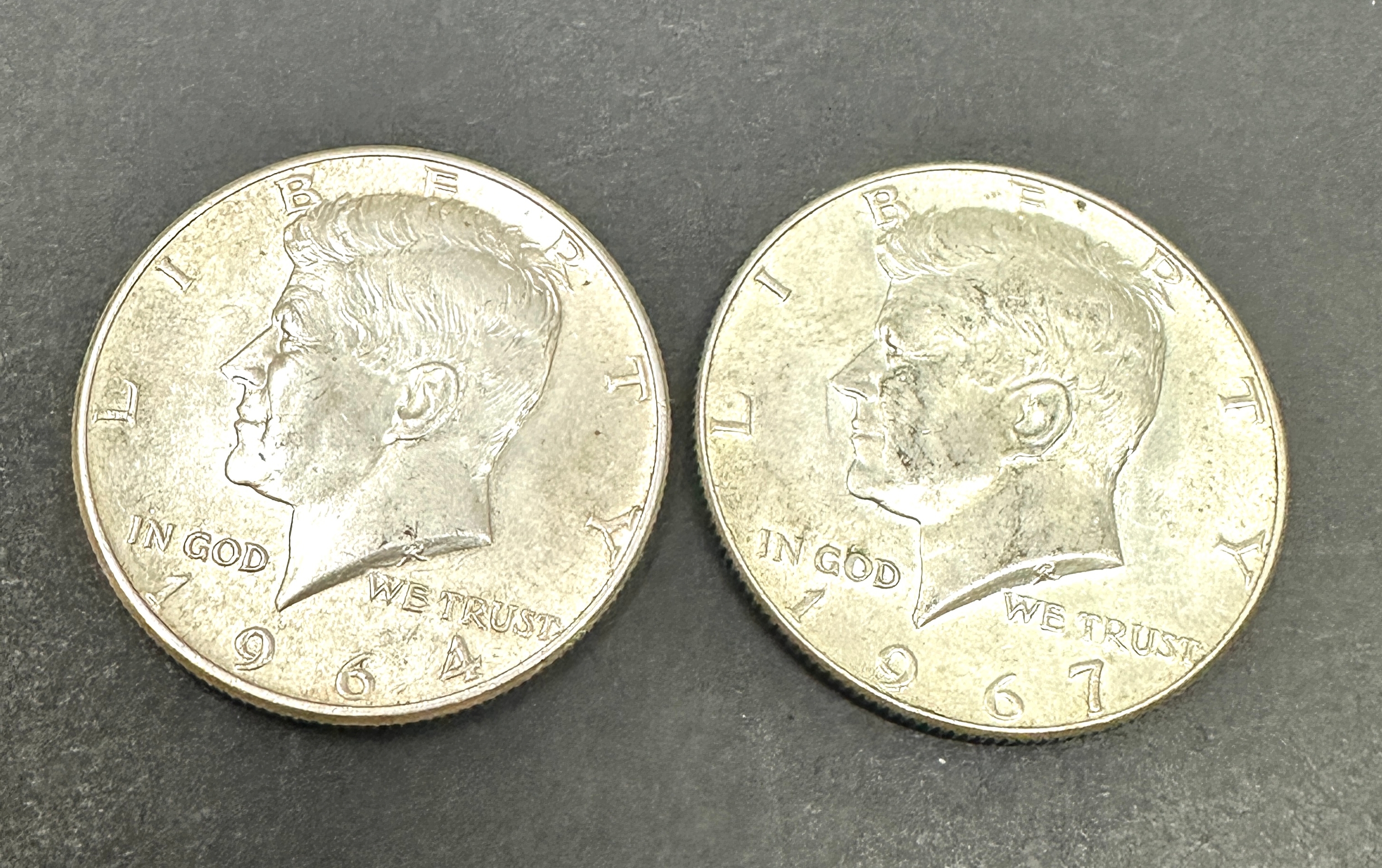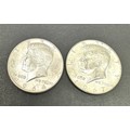 2 x Kennedy Silver Half Dollars 1964 & 67
