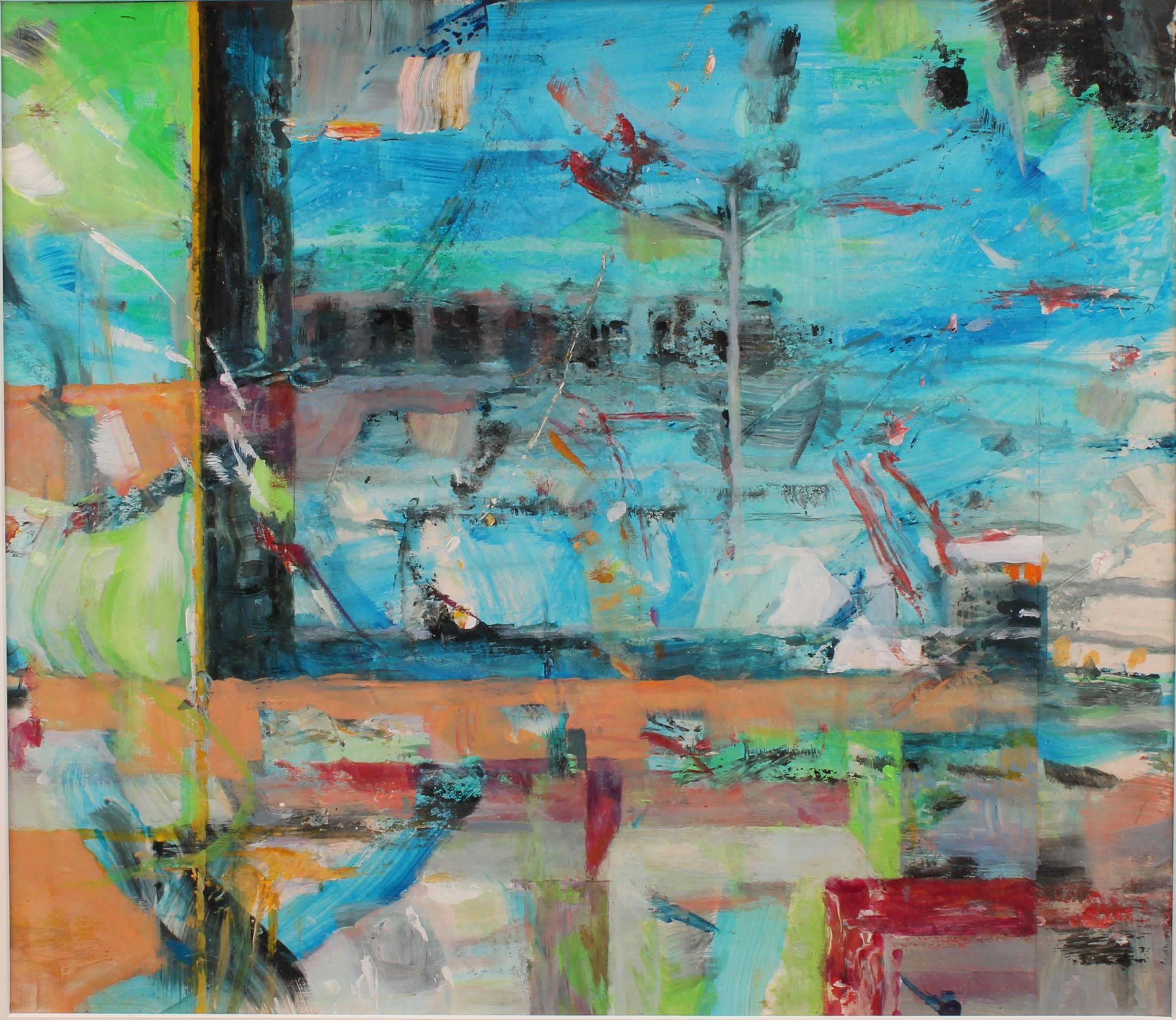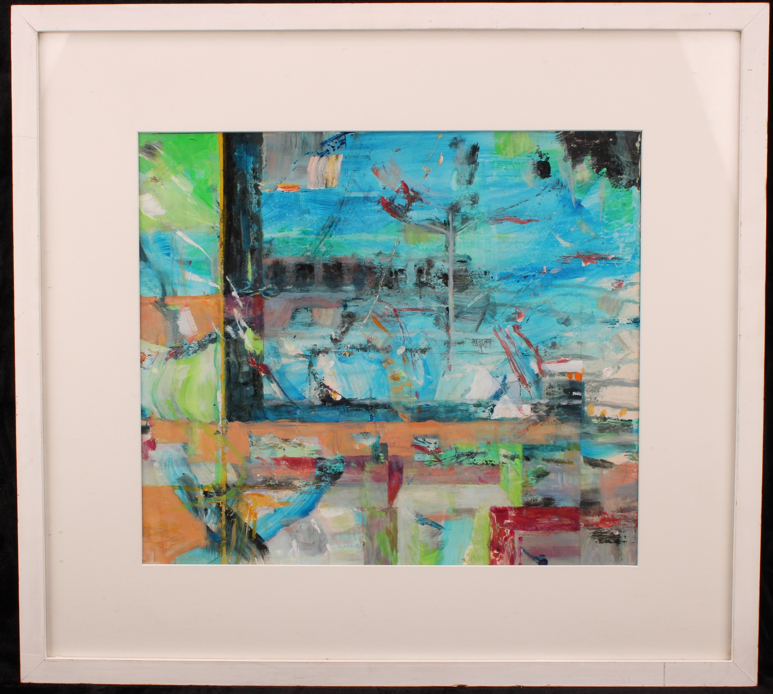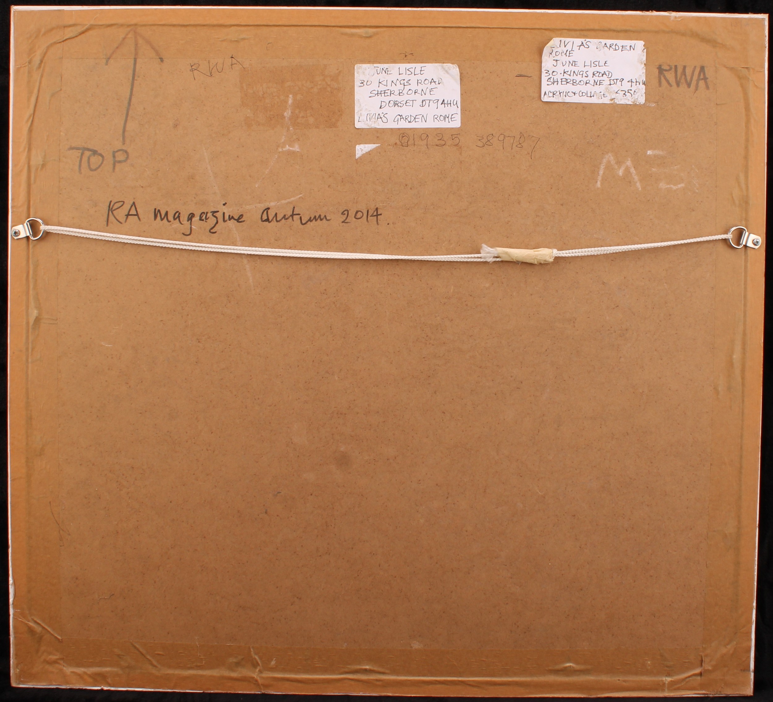 unsigned, label to verso, mixed media, 34cm x 39cm