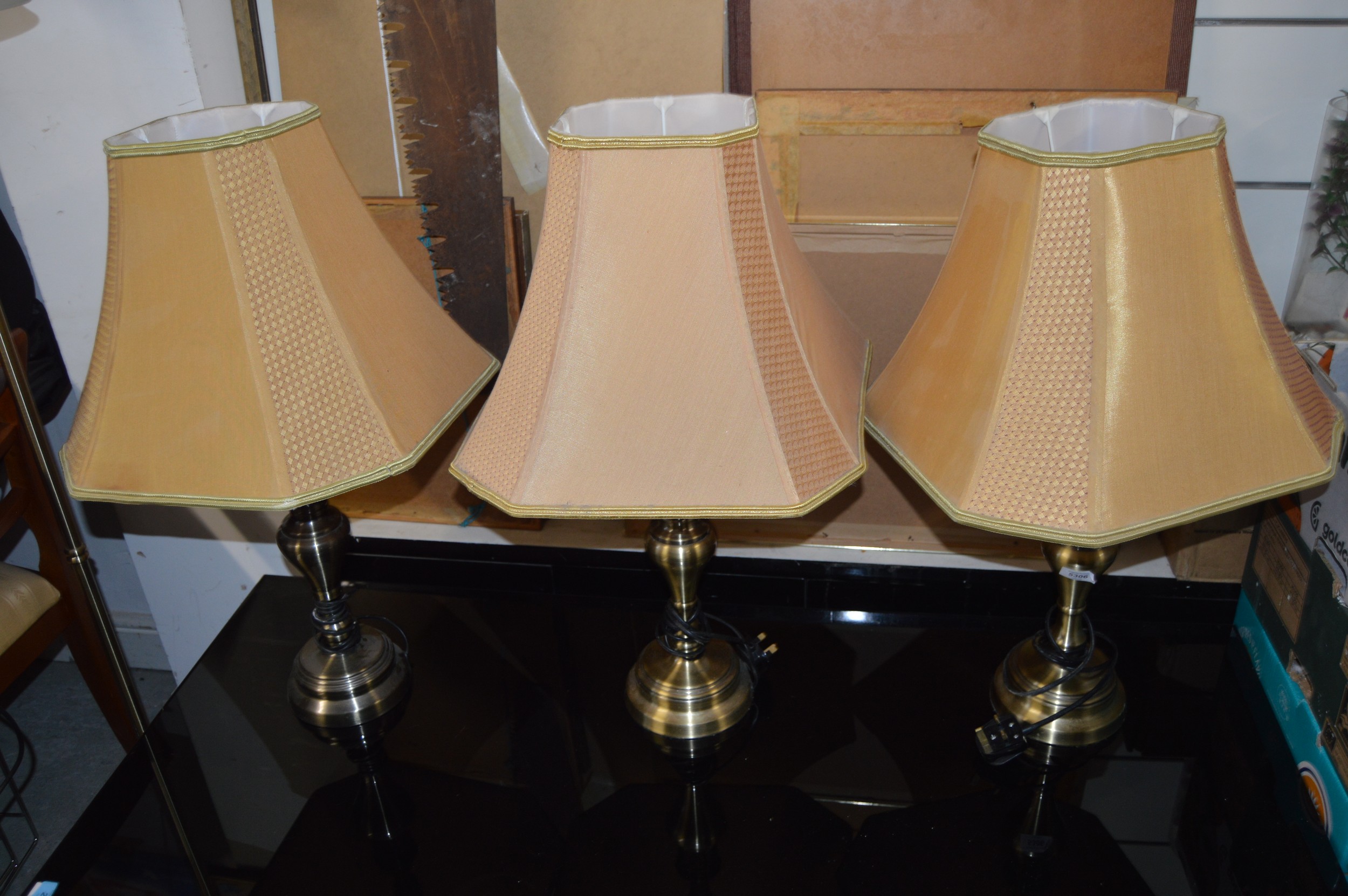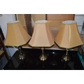 10 x Three Brass Table Lamps on Bulbous Base With Shades