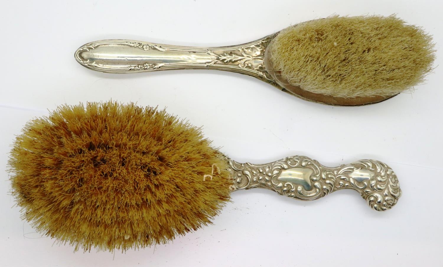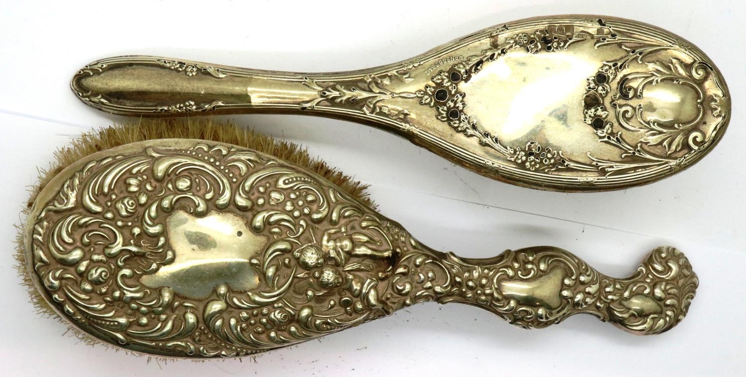 Two ornate silver handheld brushes. P&P Group 1 (£14+VAT for the first lot and £1+VAT for subsequent lots)