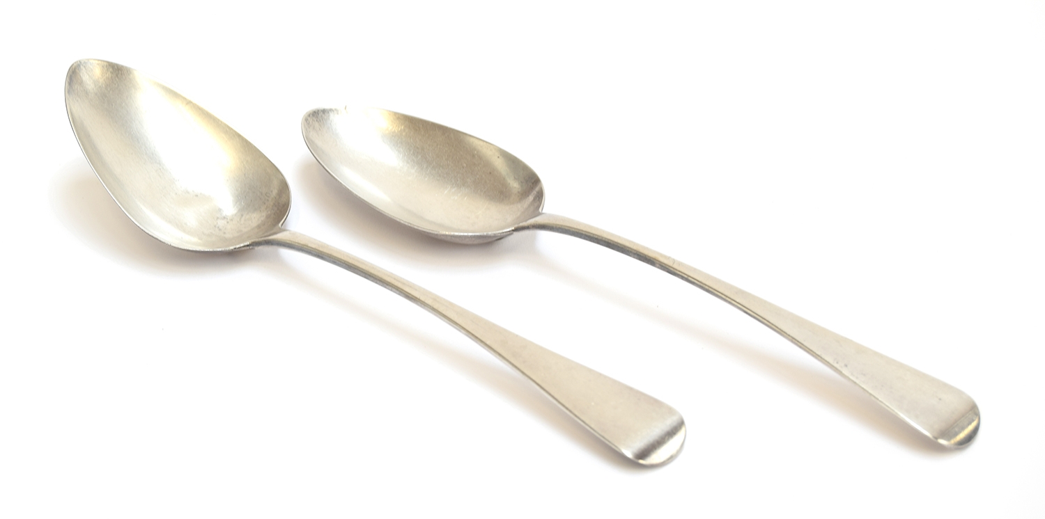 A pair of George IV Old English pattern silver tablespoons by John & Henry Lias, London 1821, 22cm long, 3.8ozt