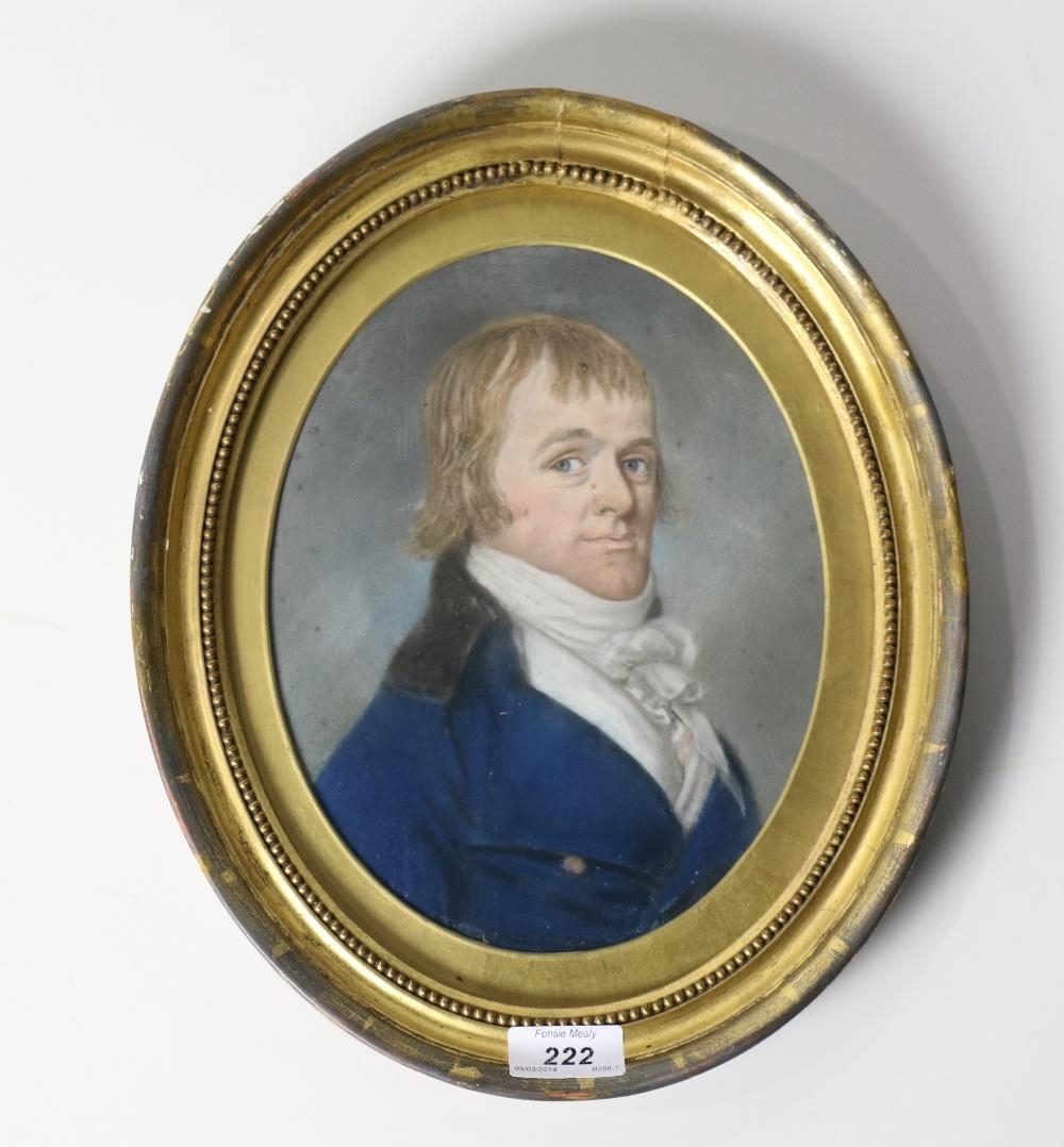 Attributed Hugh Douglas Hamilton (1740 - 1808) Pastel: Oval Portrait, "Head and Shoulders of Vincent Shortland," born 1724, in blue coat with fur collar," 25cms x 20cms (10" x 8") in contemporary gilt frame. (1) * Inscribed on note on reverse.