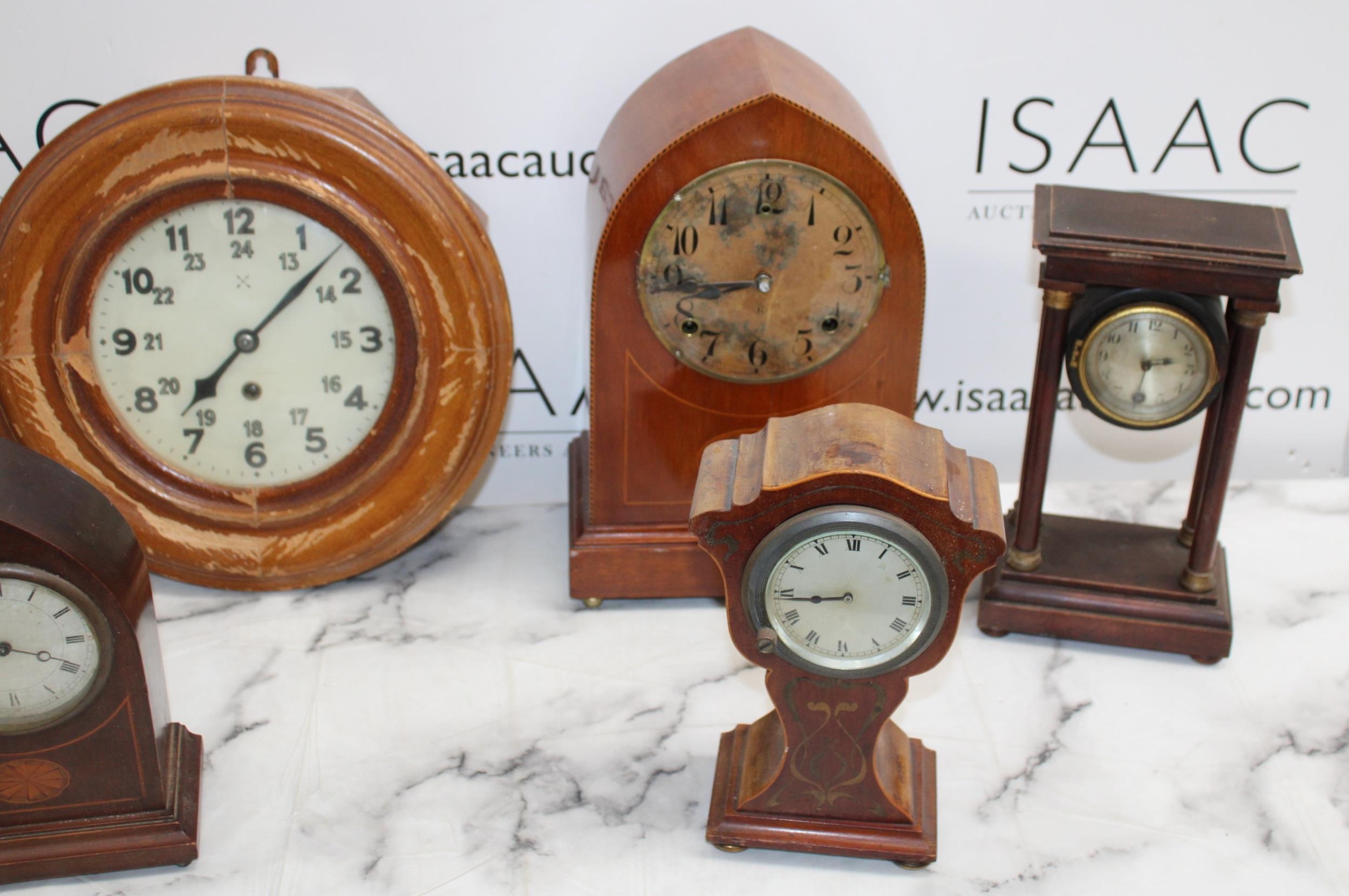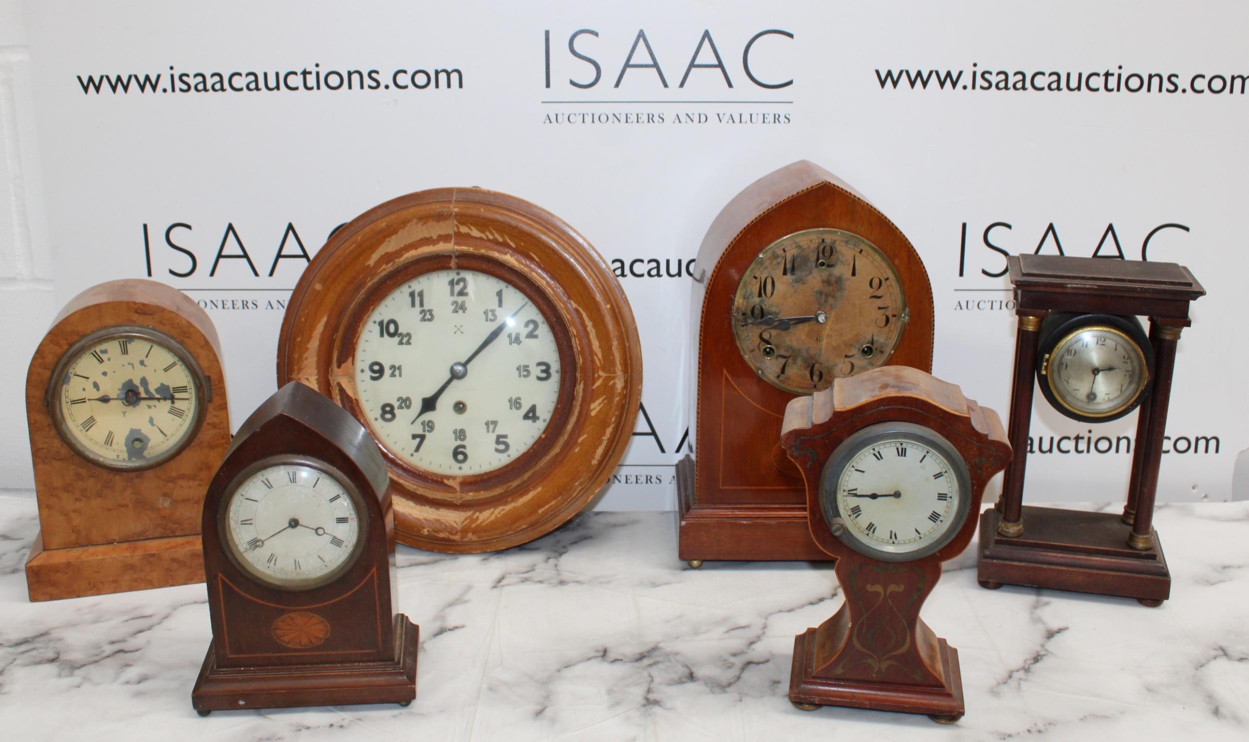 Collection Of Six Wooden Clocks Various Conditions All UntestedTallest Clock 33cmCOLLECTION ONLY