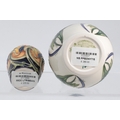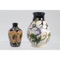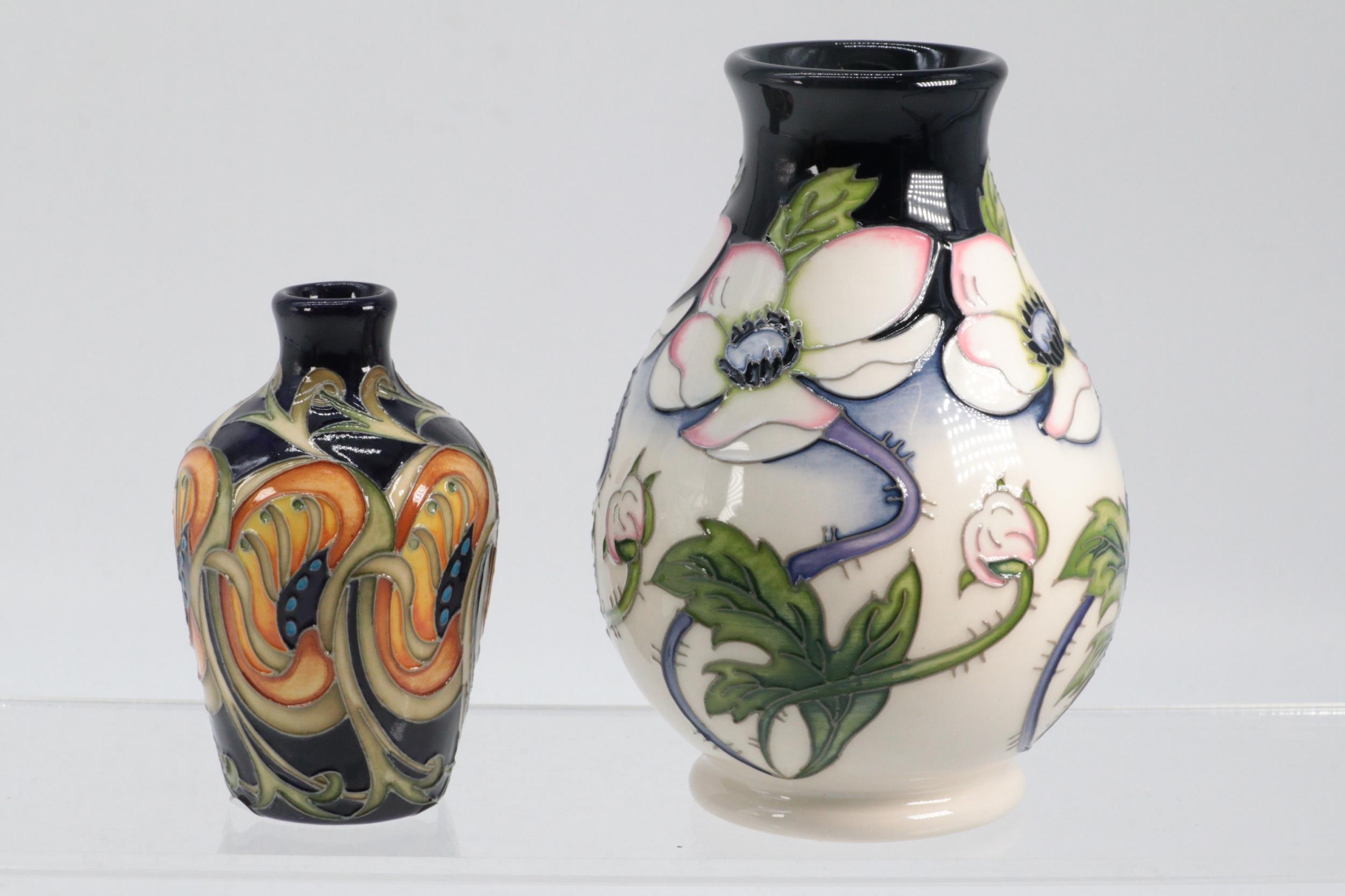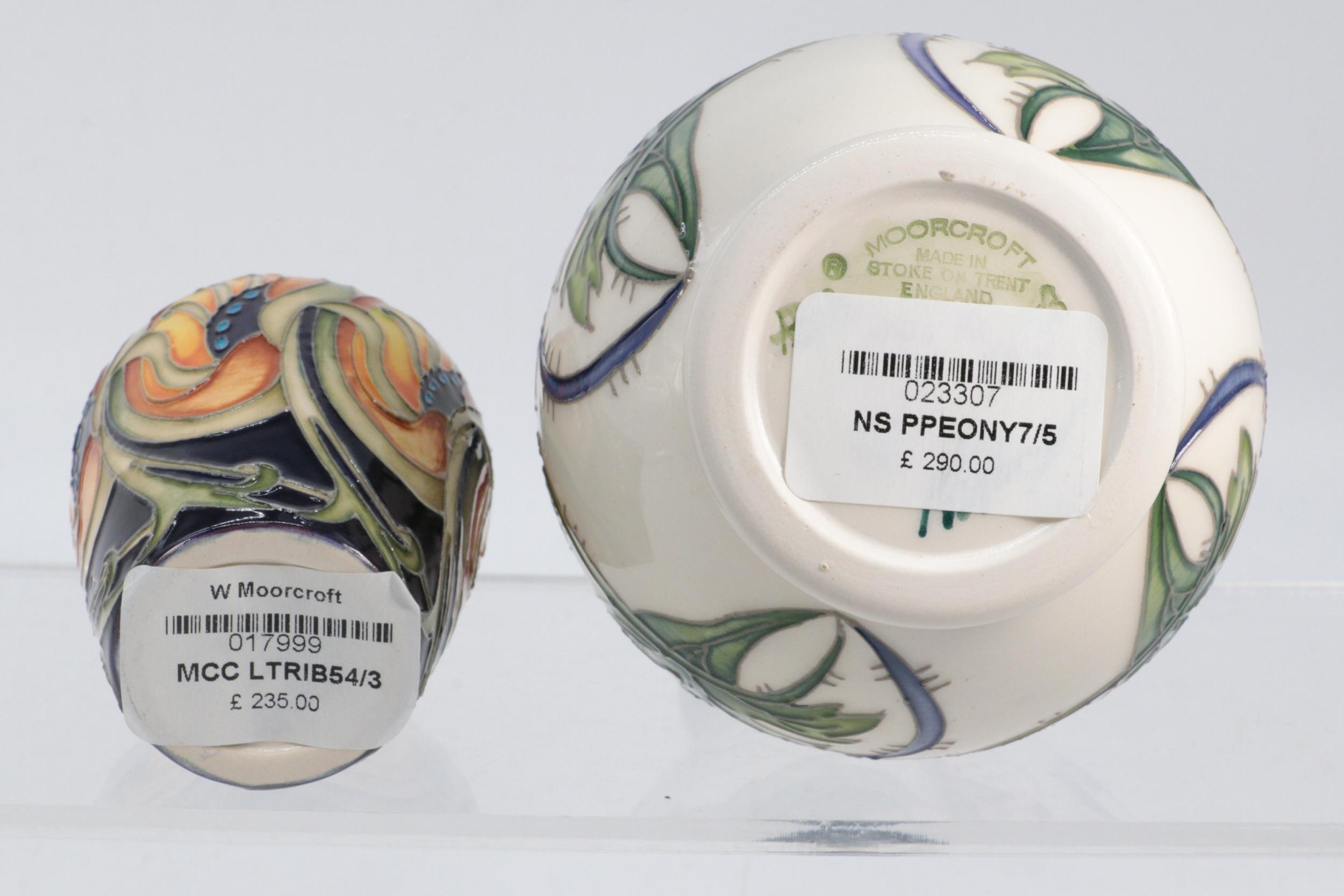 Moorcroft vase in Peony design (approx. 12cm tall) together with a members club vase (approx. 9cm tall) all marked to base