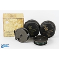 Hardy Bros "The Uniqua" 3.5" alloy fly reel, 2 screw latch, black handle, fixed check, chrome line guide, in MZC with spare spool, again in MZC with cog cover, runs well, light use with instructions and Hardy card box