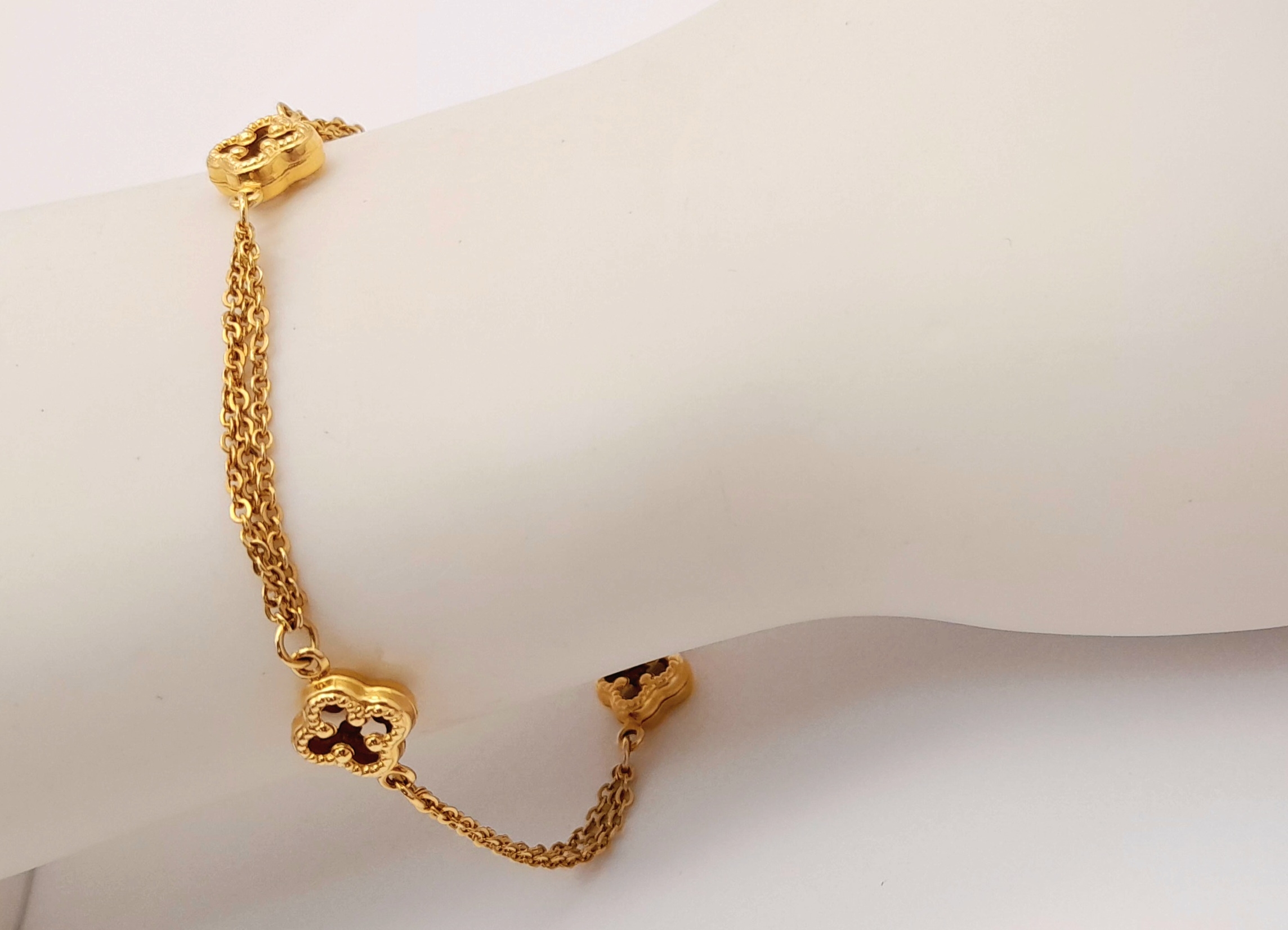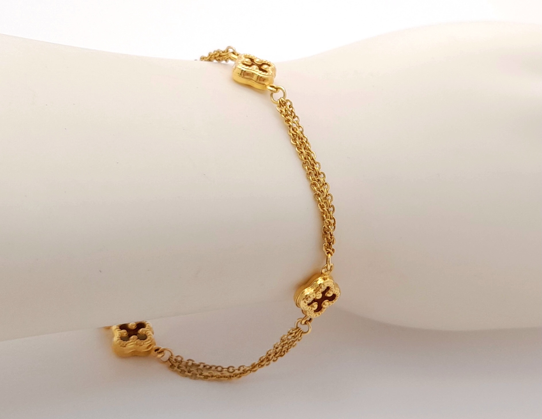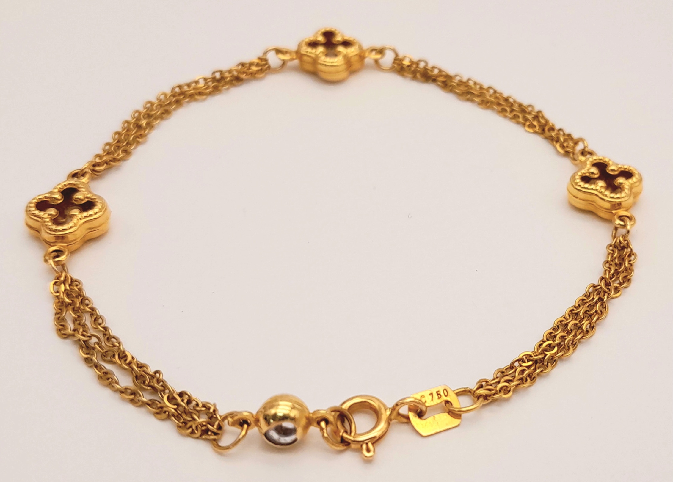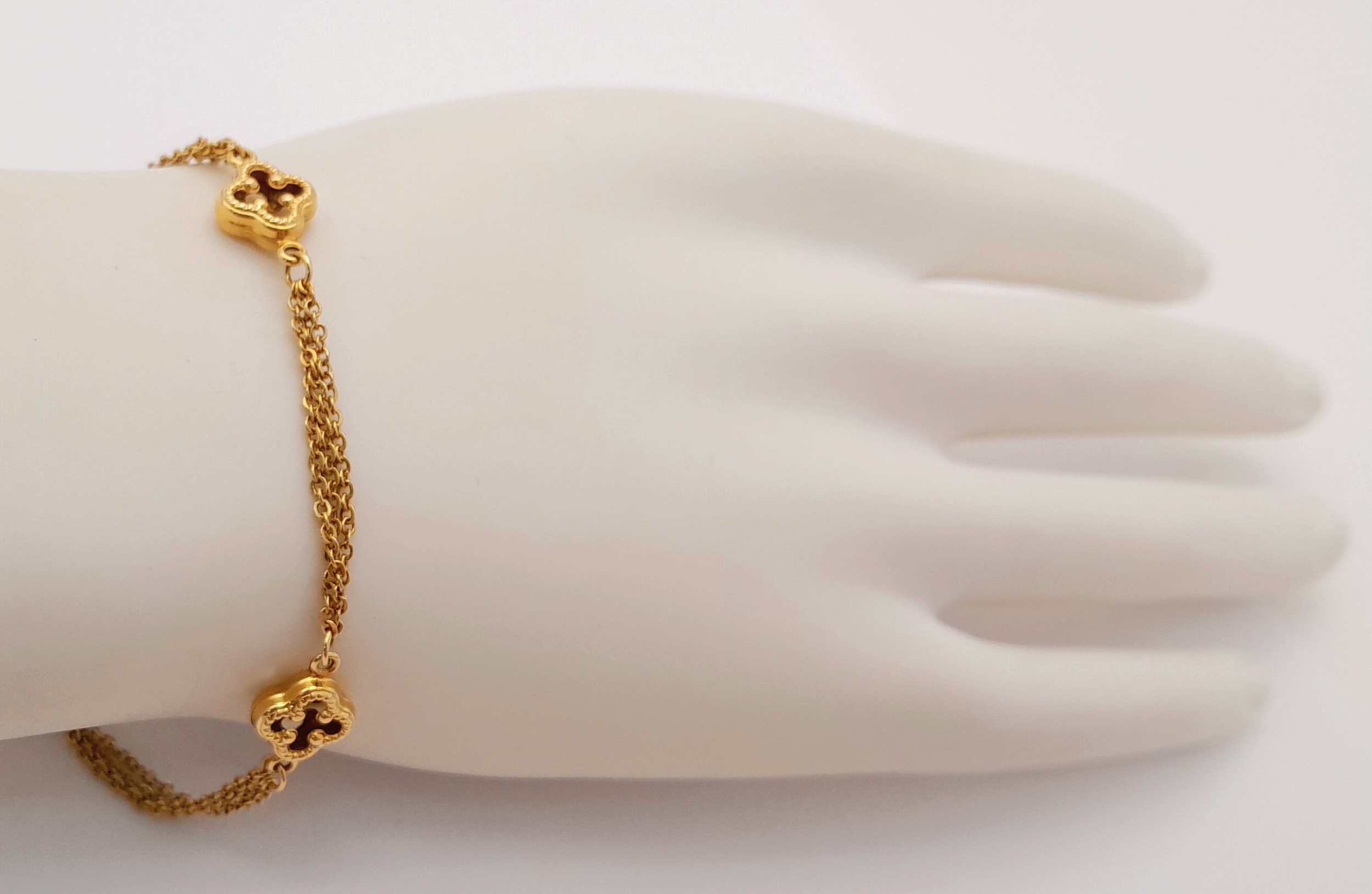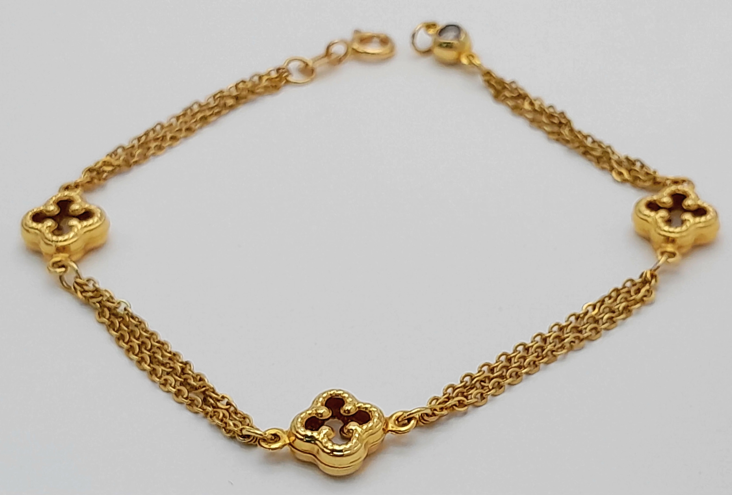 18K YELLOW GOLD 2 STRAND CLOVER DESIGN BRACELET 4.2G. REF: TAN 6020