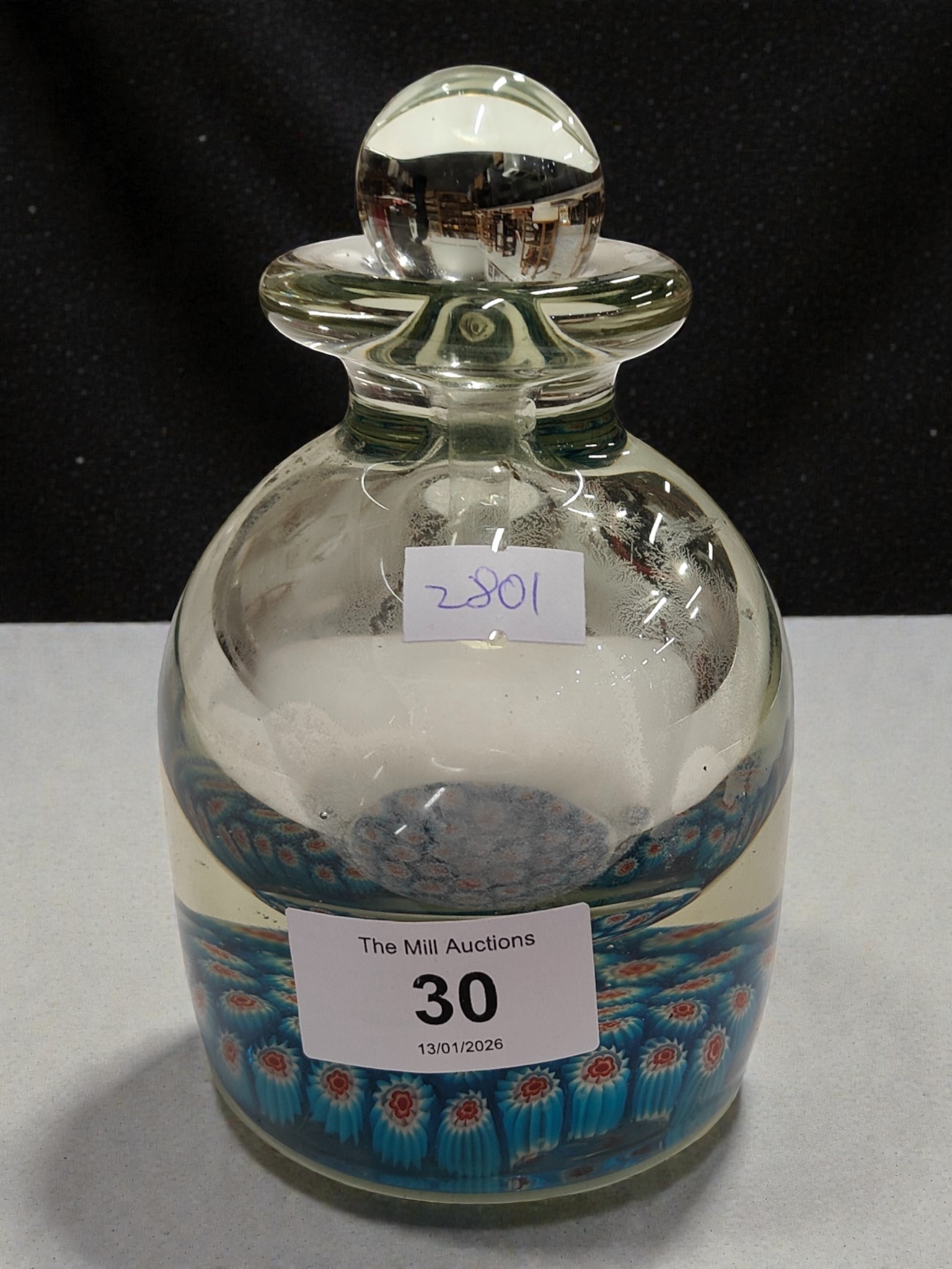 ANTIQUE ART GLASS PERFUME BOTTLE WITH MILLEFIORI DETAIL